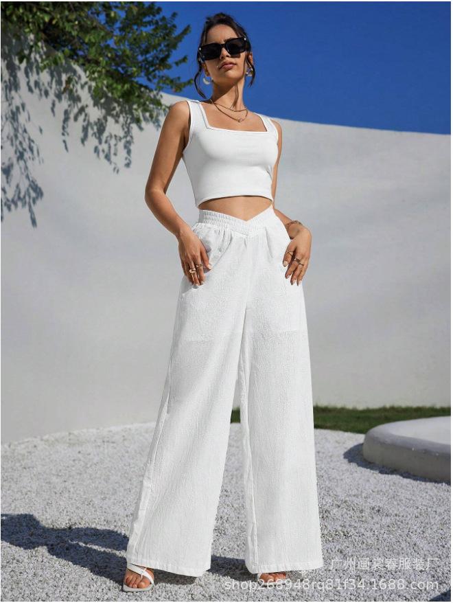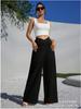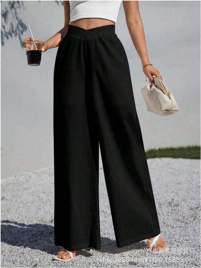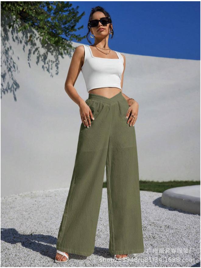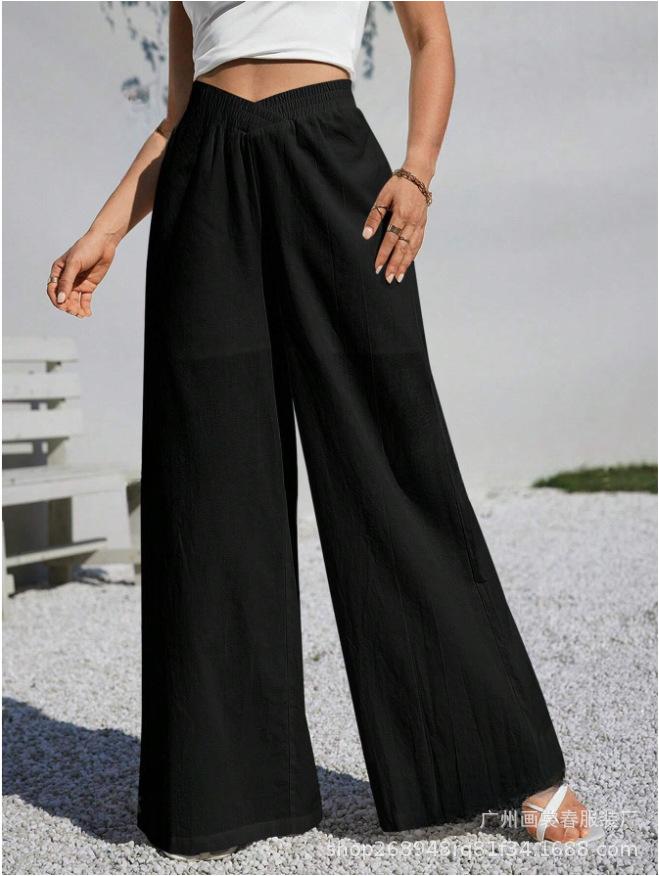 Amazon comercio exterior transfronterizo nuevo europeo y americano color sólido cruz cintura plisado pierna ancha explosión damas pantalones casuales