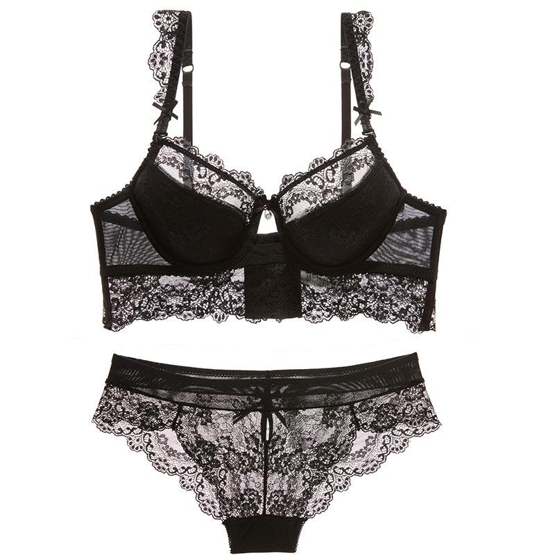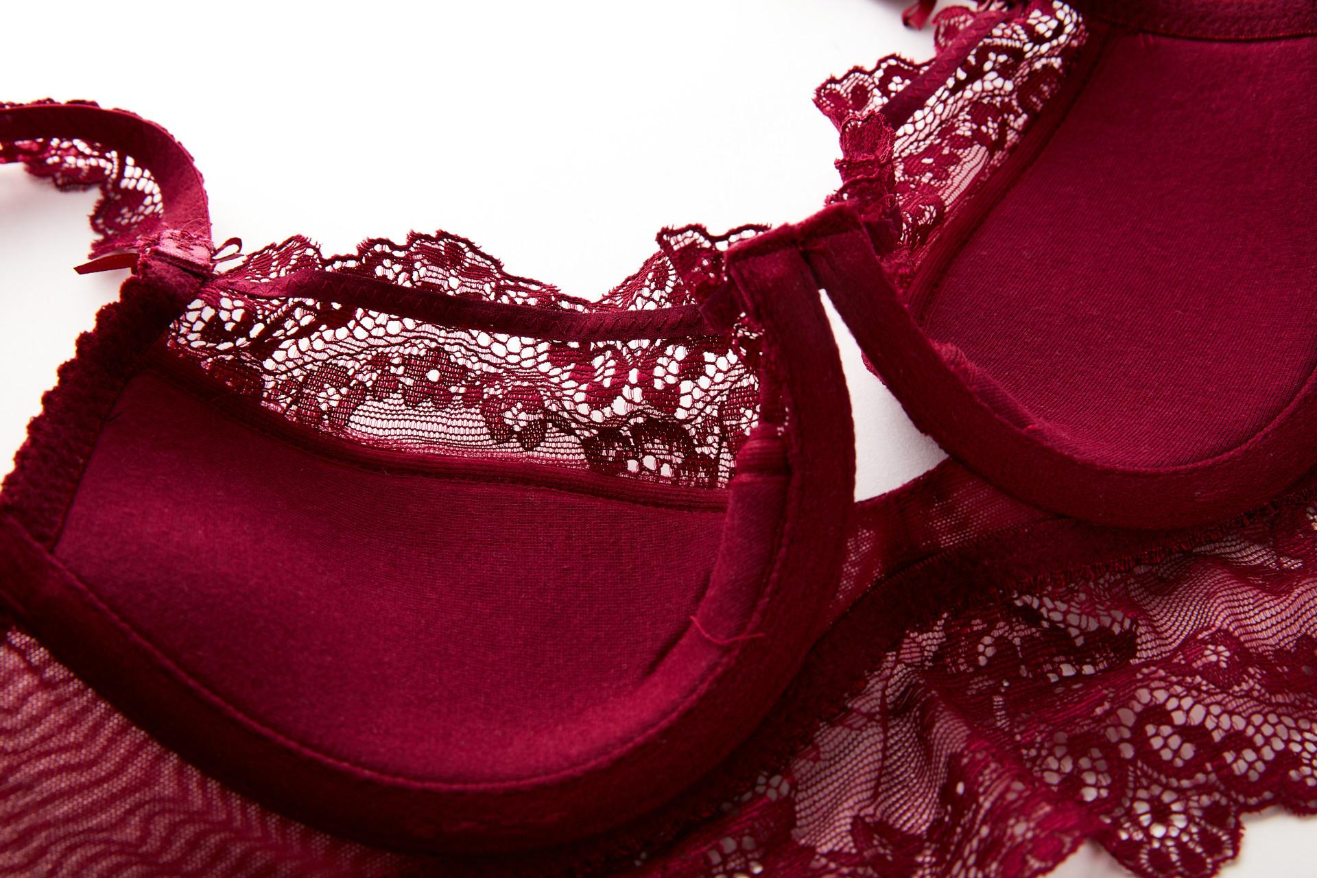 Encaje Copa Fina de Algodón Sujetador Retráctil de Busto Ajuste Lateral Íntimos Sexy para Mujer Set de Sujetador de 5 Broches 9168B