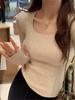 Suéter de manga larga con cuello cuadrado para mujer, camisa interior ajustada, estilo puro de alta calidad, para primavera y otoño.
