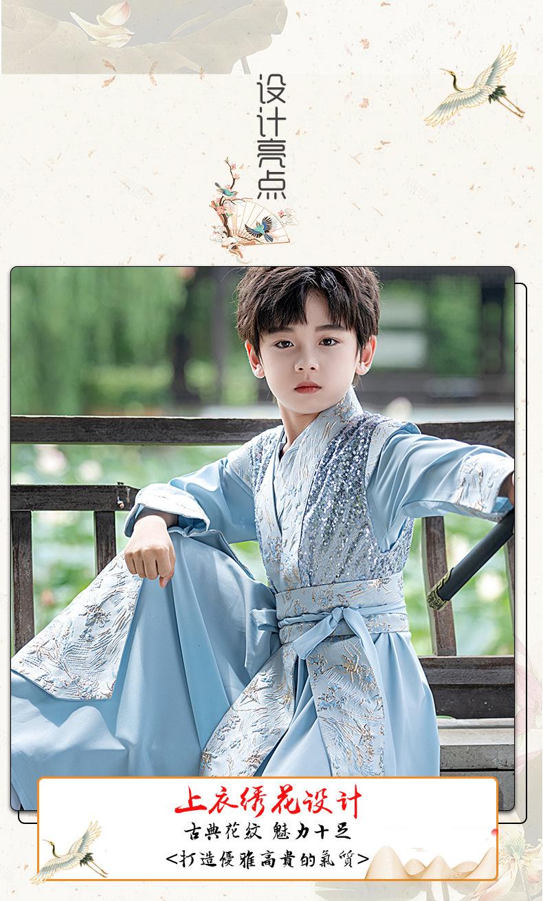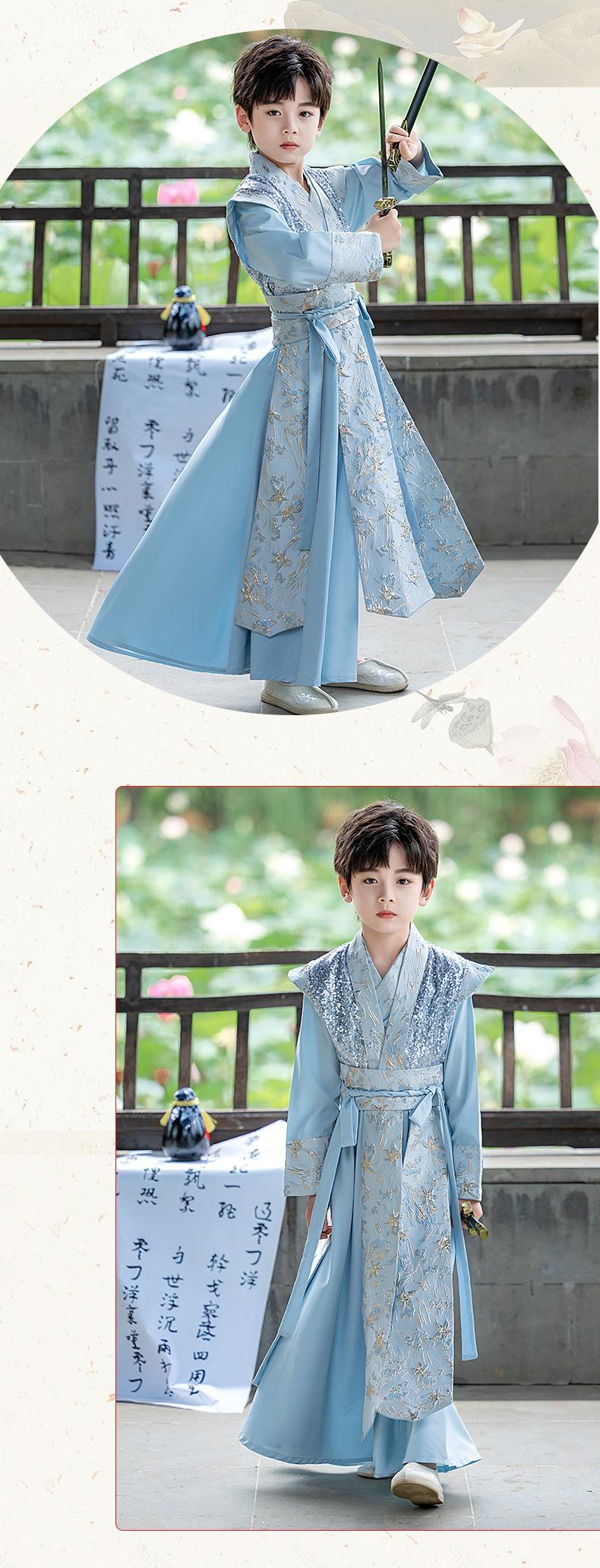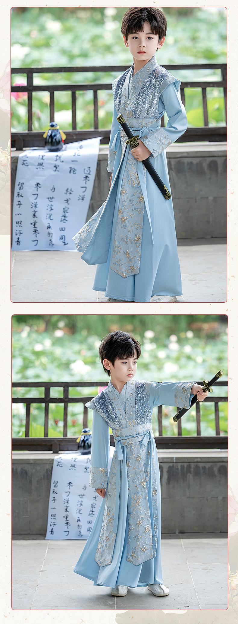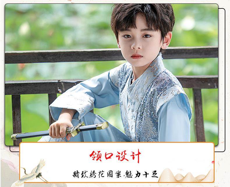 Hanfu de Verano para Niño Nuevo Estilo Chino Traje Antiguo Infantil Artes Marciales Caballero Niño Guapo Traje Tang de Una Pieza Dropshipping