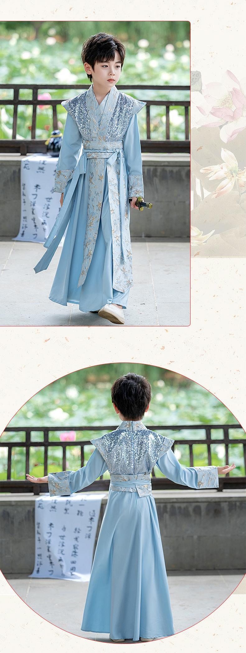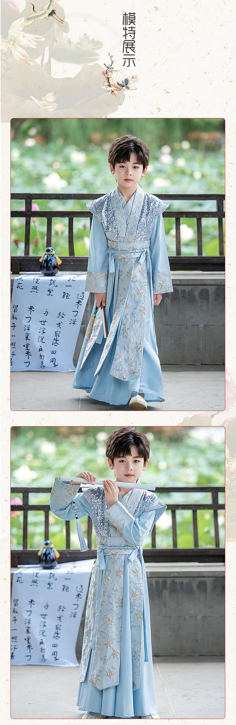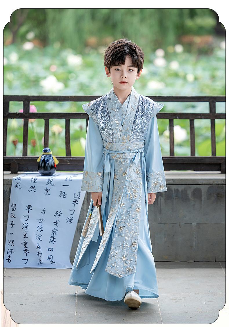 Hanfu de Verano para Niño Nuevo Estilo Chino Traje Antiguo Infantil Artes Marciales Caballero Niño Guapo Traje Tang de Una Pieza Dropshipping