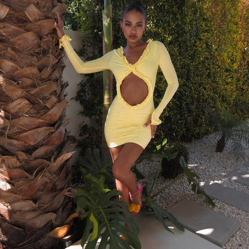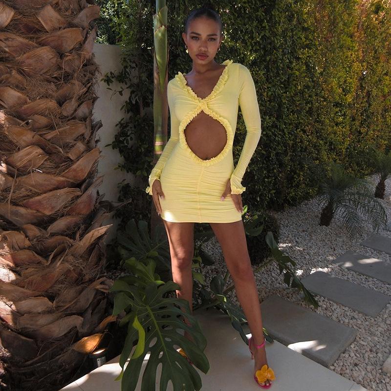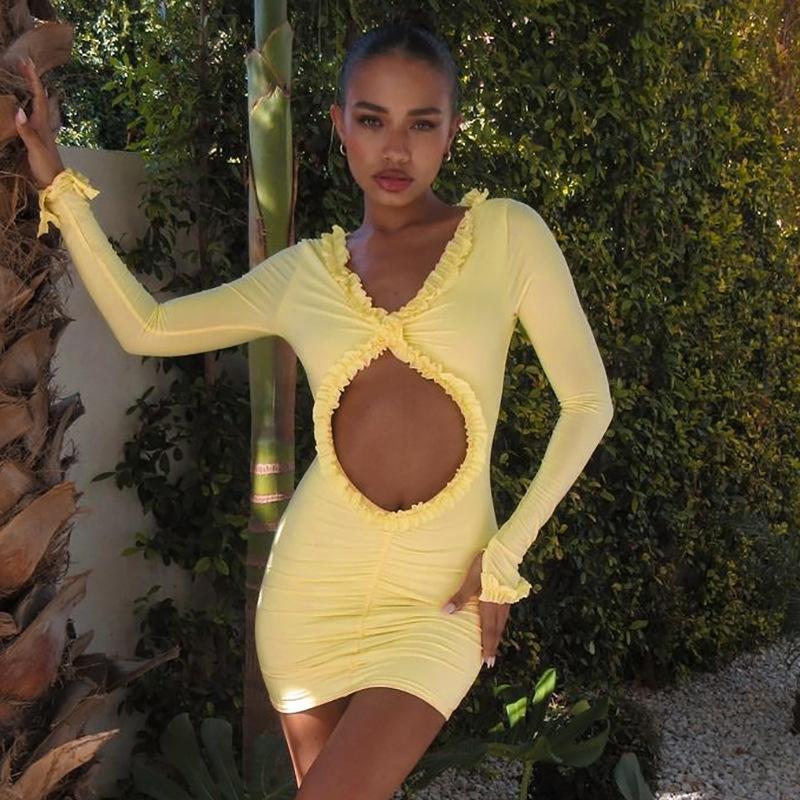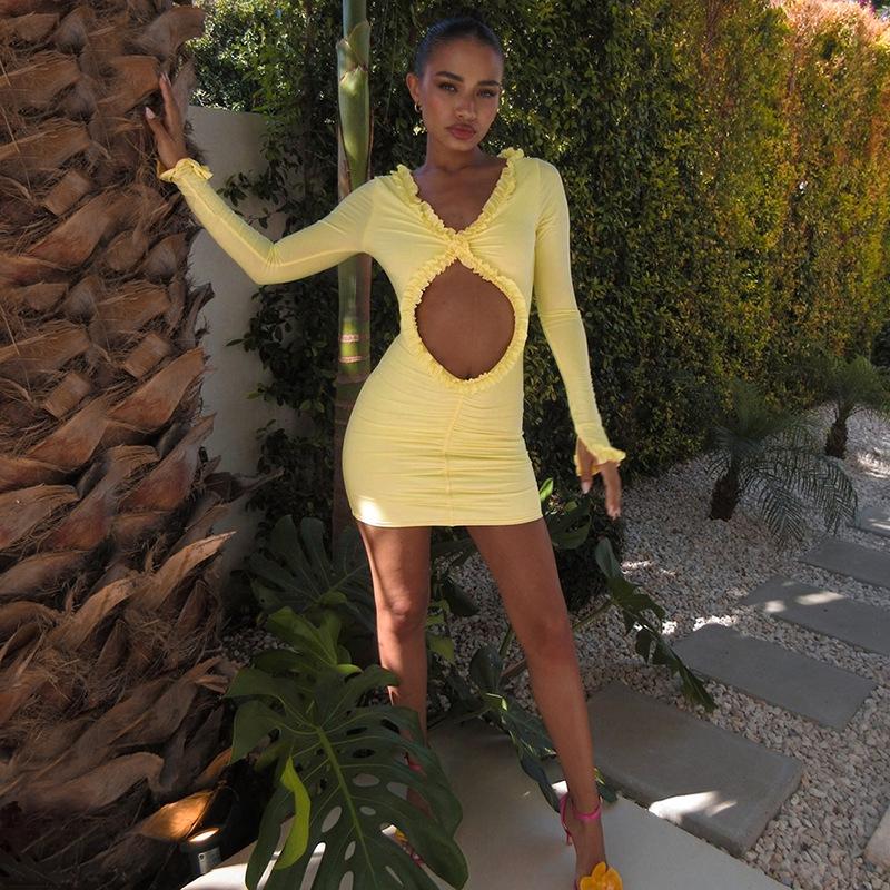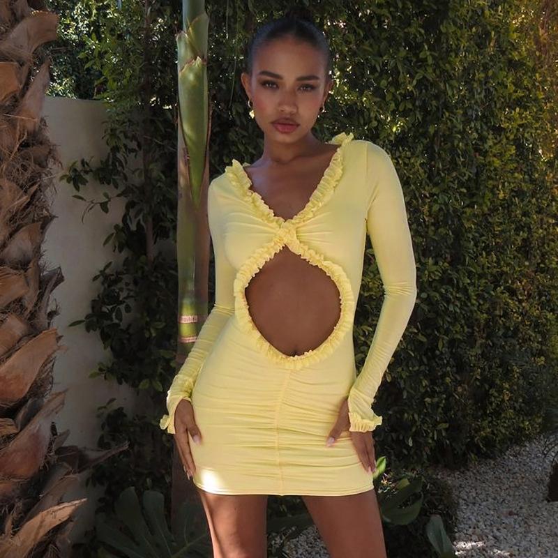 Ropa Europea y Americana 2024 Otoño Nuevo Color Sólido Cut Out Ombliguera Encaje Vestido Cubre Caderas para Mujer Venta al Por Mayor Comercio Exterior