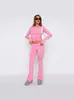 2024 nuevo traje transfronterizo europeo y americano de Amazon de color sólido con cuello redondo y lentejuelas a juego, camisa de murciélago, pantalones de pierna ancha, traje femenino