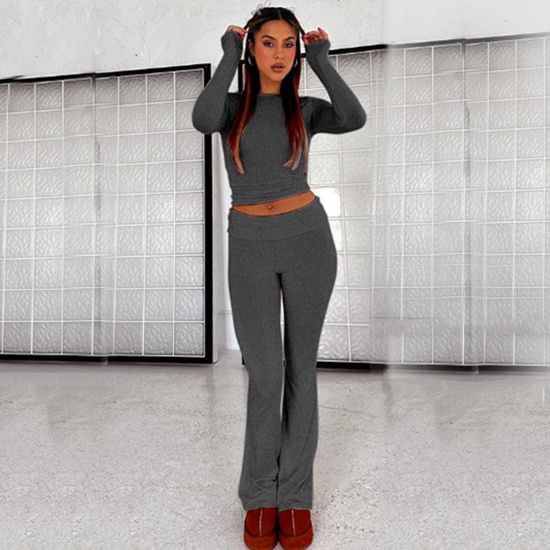 Pantalones acampanados de cintura baja de estilo casual, nuevos, ajustados, de color sólido, para mujer, estilo transfronterizo europeo y americano de Amazon 2024