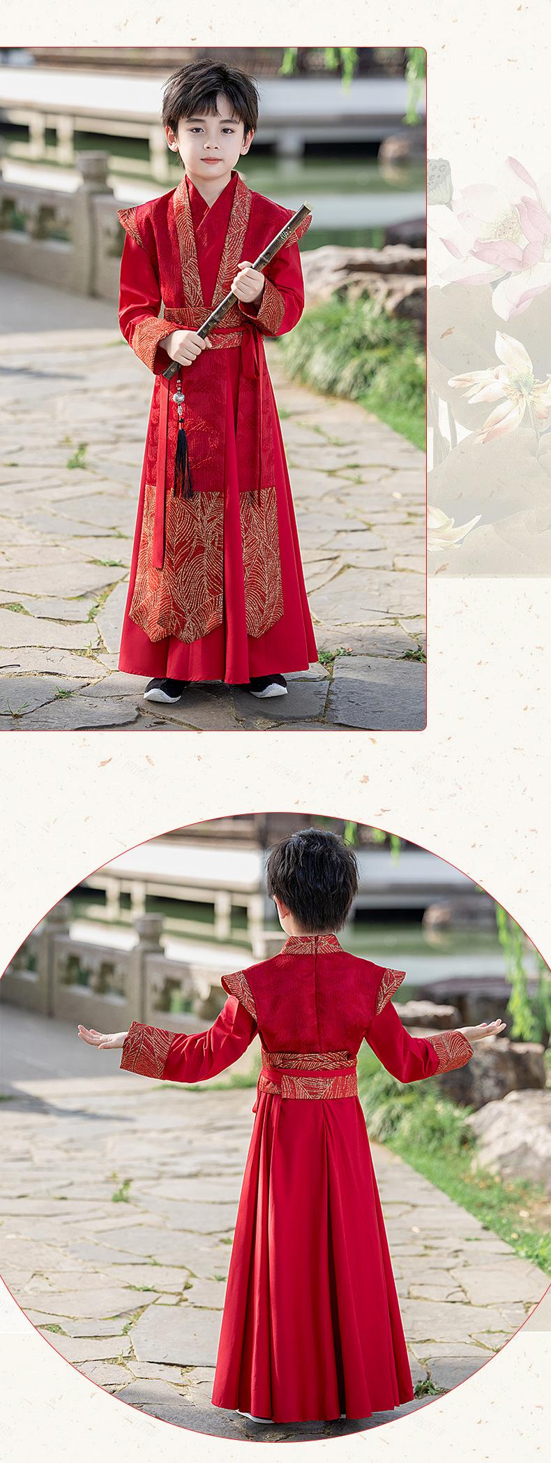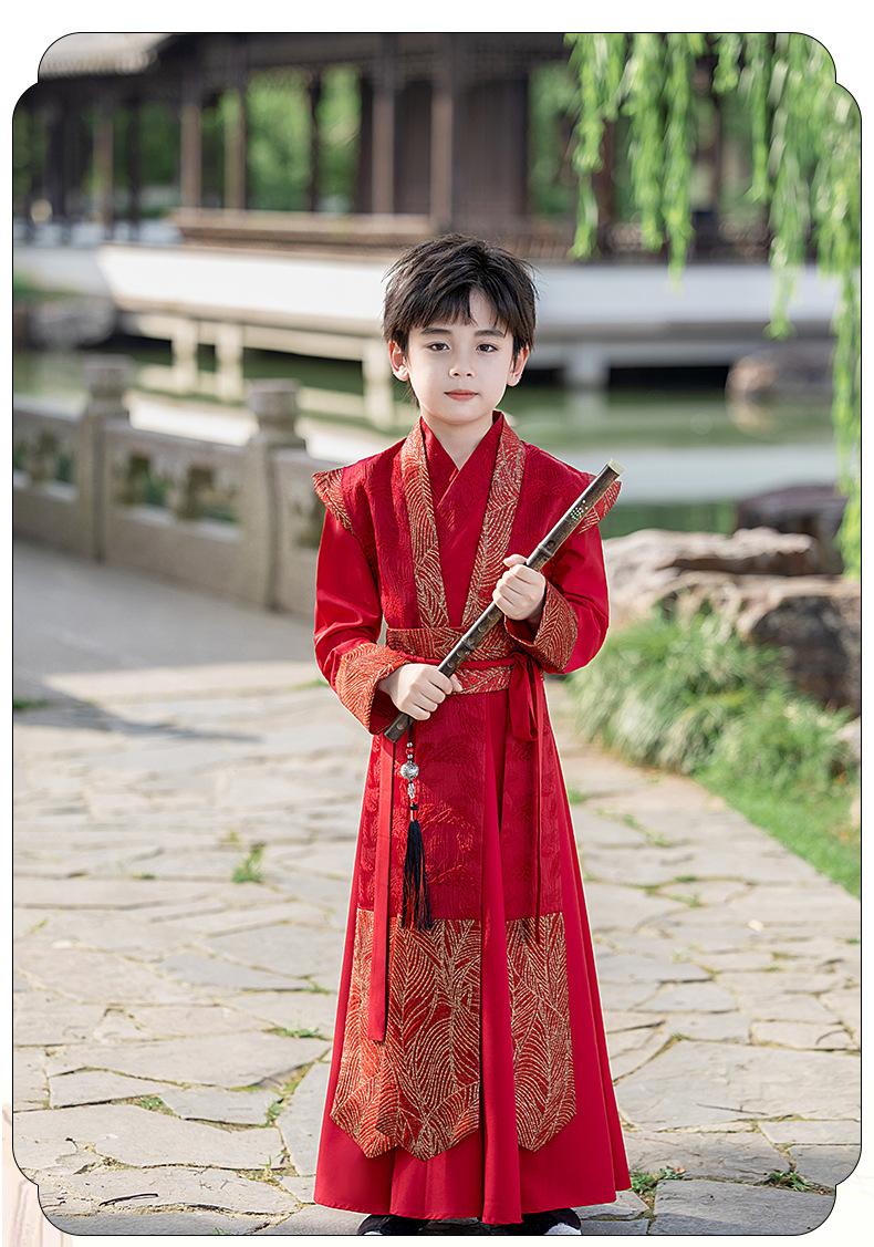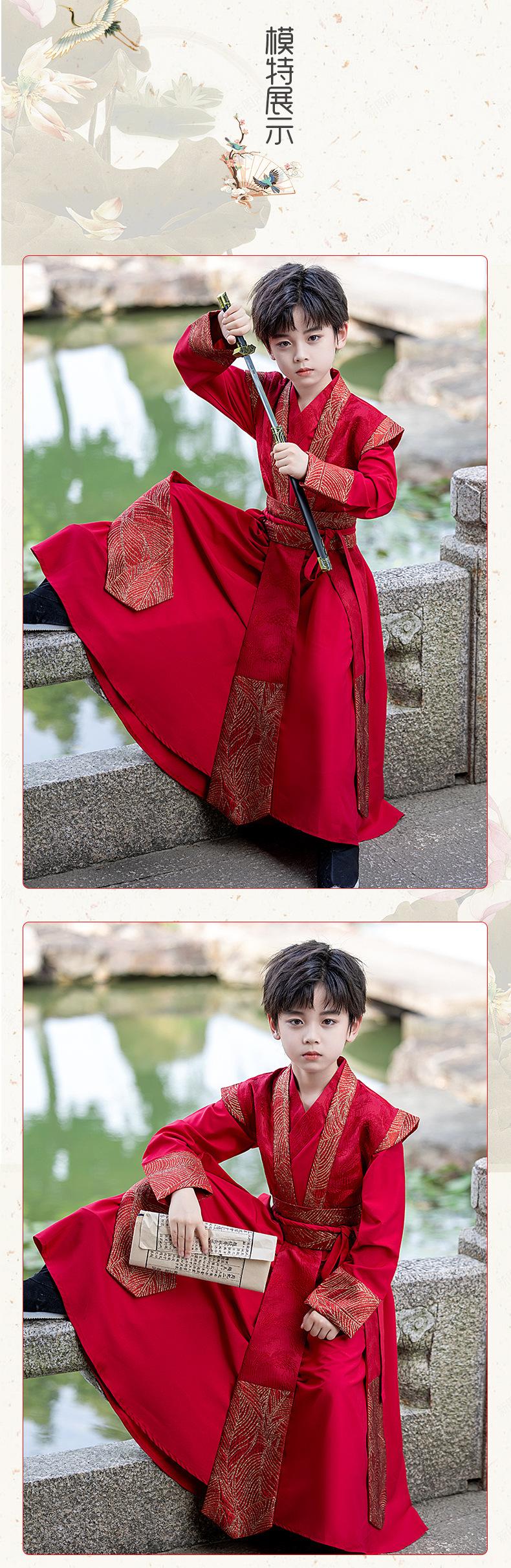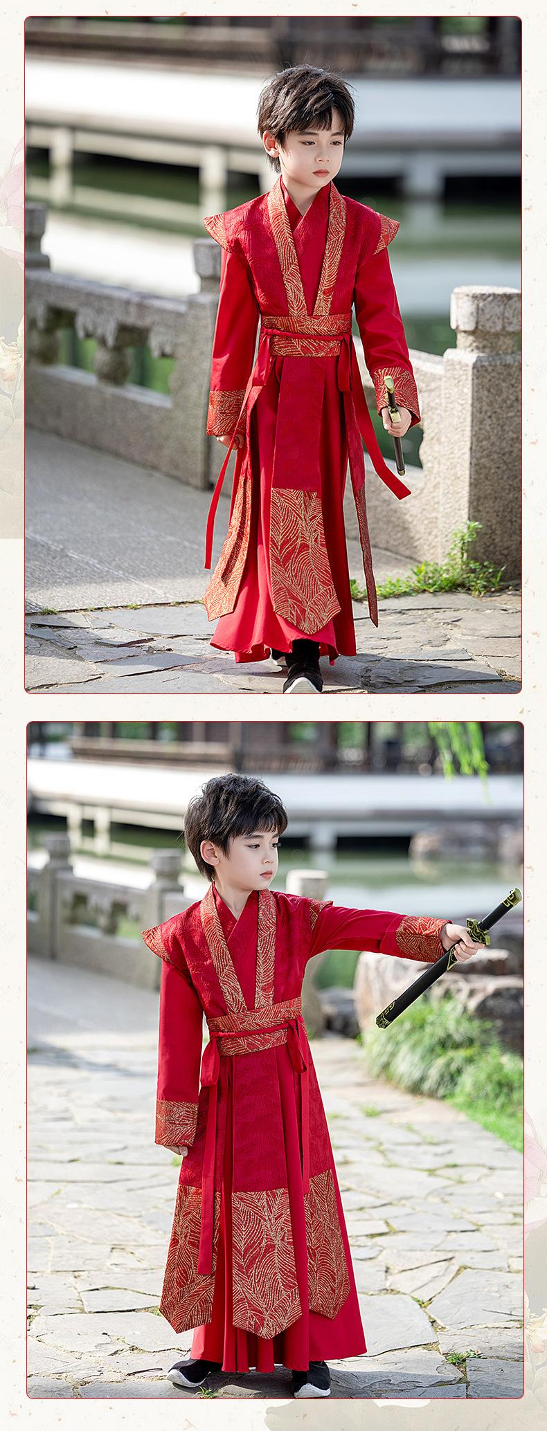 Hanfu para niño 2025 Otoño/Invierno Nuevo Traje Tradicional Infantil Rojo Estilo Antiguo Guapo Caballero Joven Traje de Actuación de Artes Marciales Venta al por Mayor