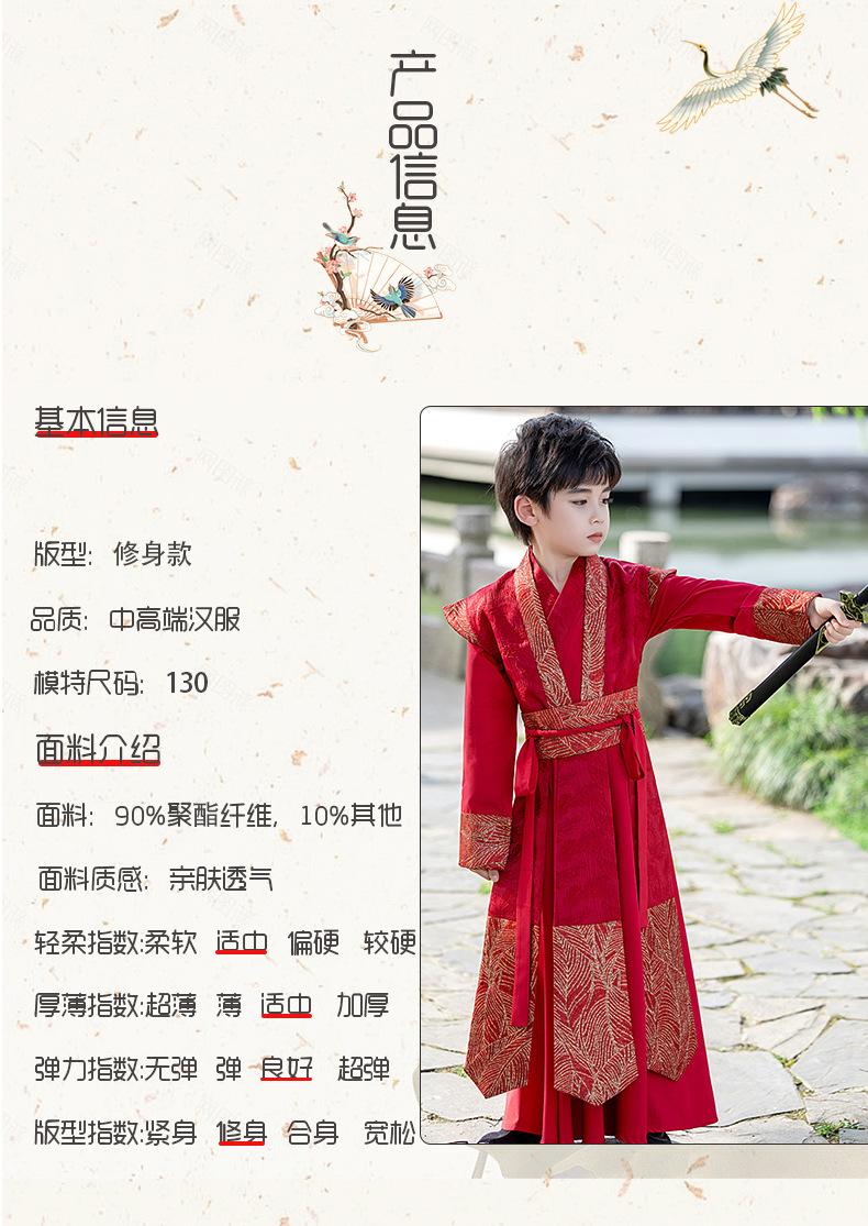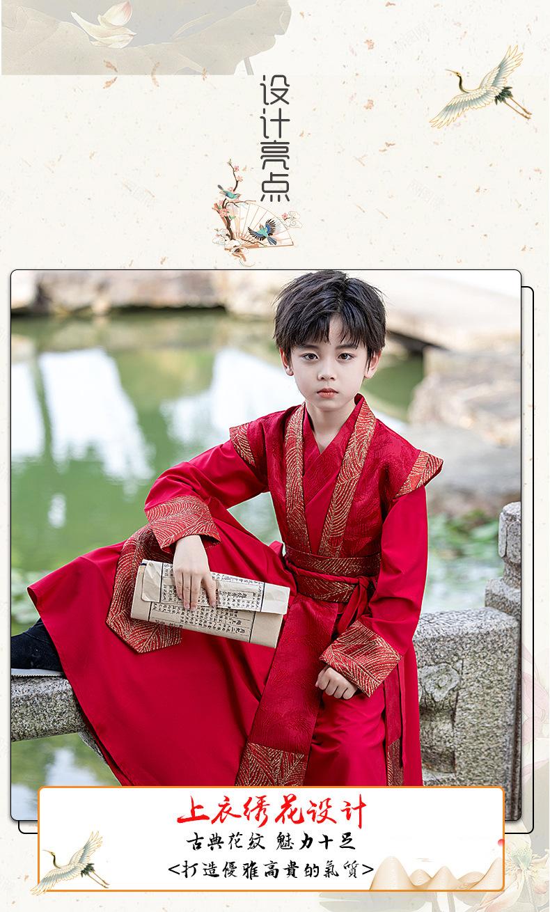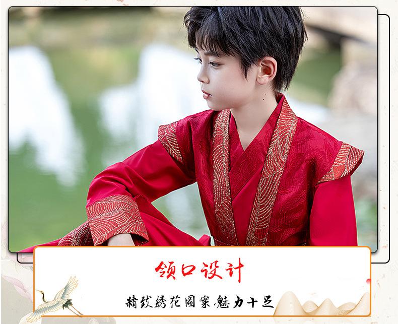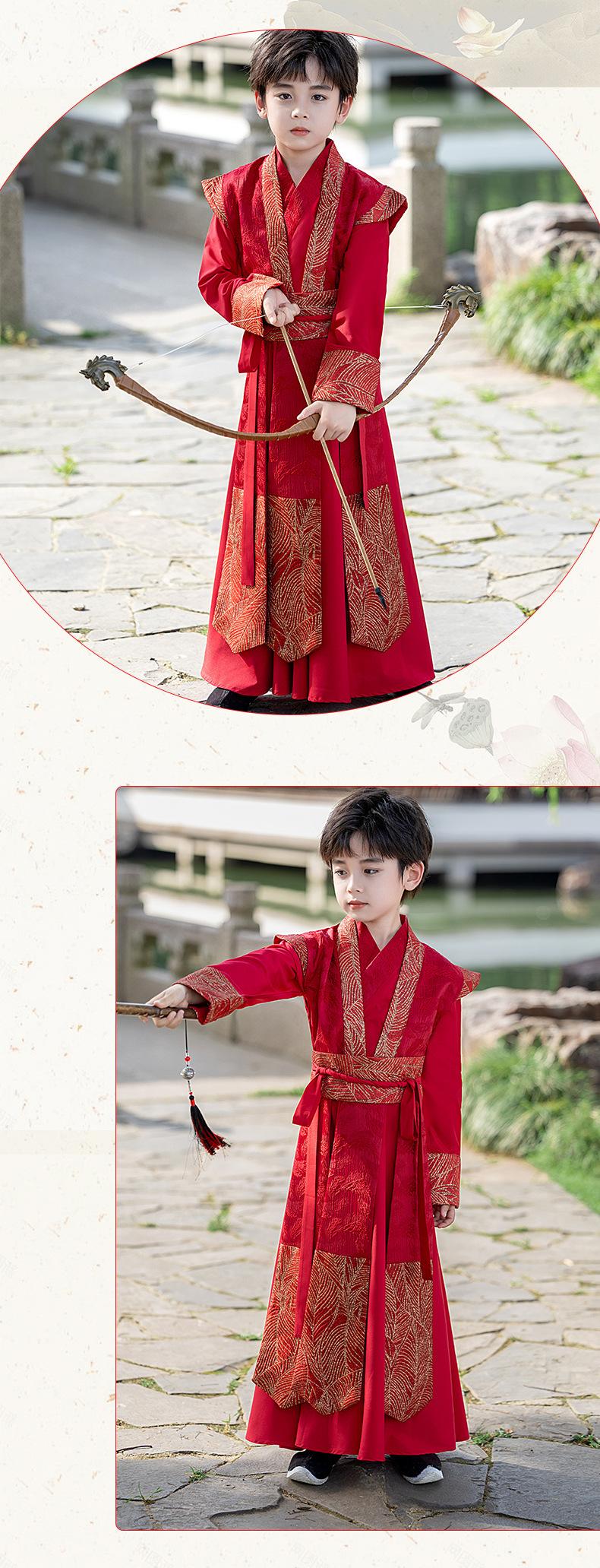 Hanfu para niño 2025 Otoño/Invierno Nuevo Traje Tradicional Infantil Rojo Estilo Antiguo Guapo Caballero Joven Traje de Actuación de Artes Marciales Venta al por Mayor