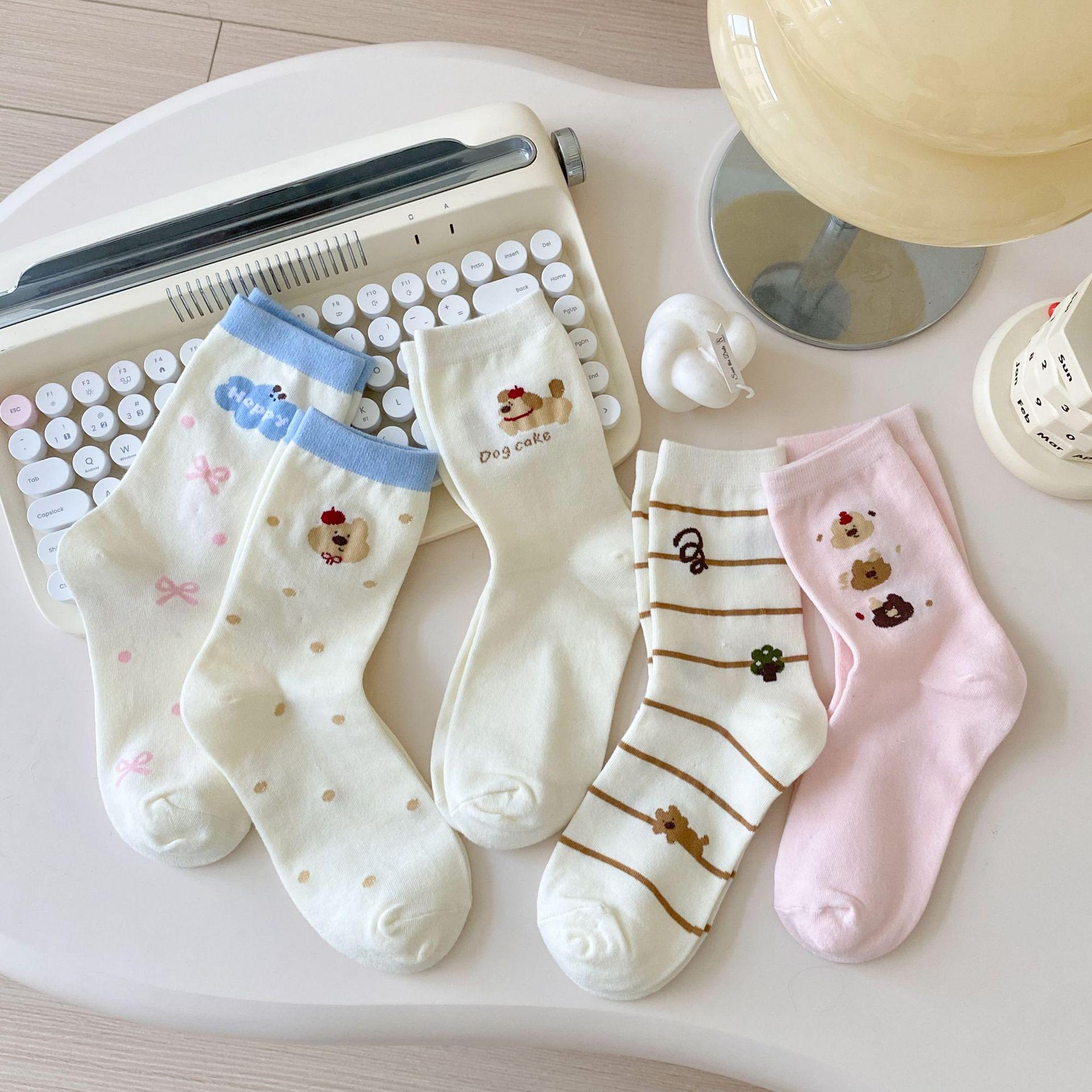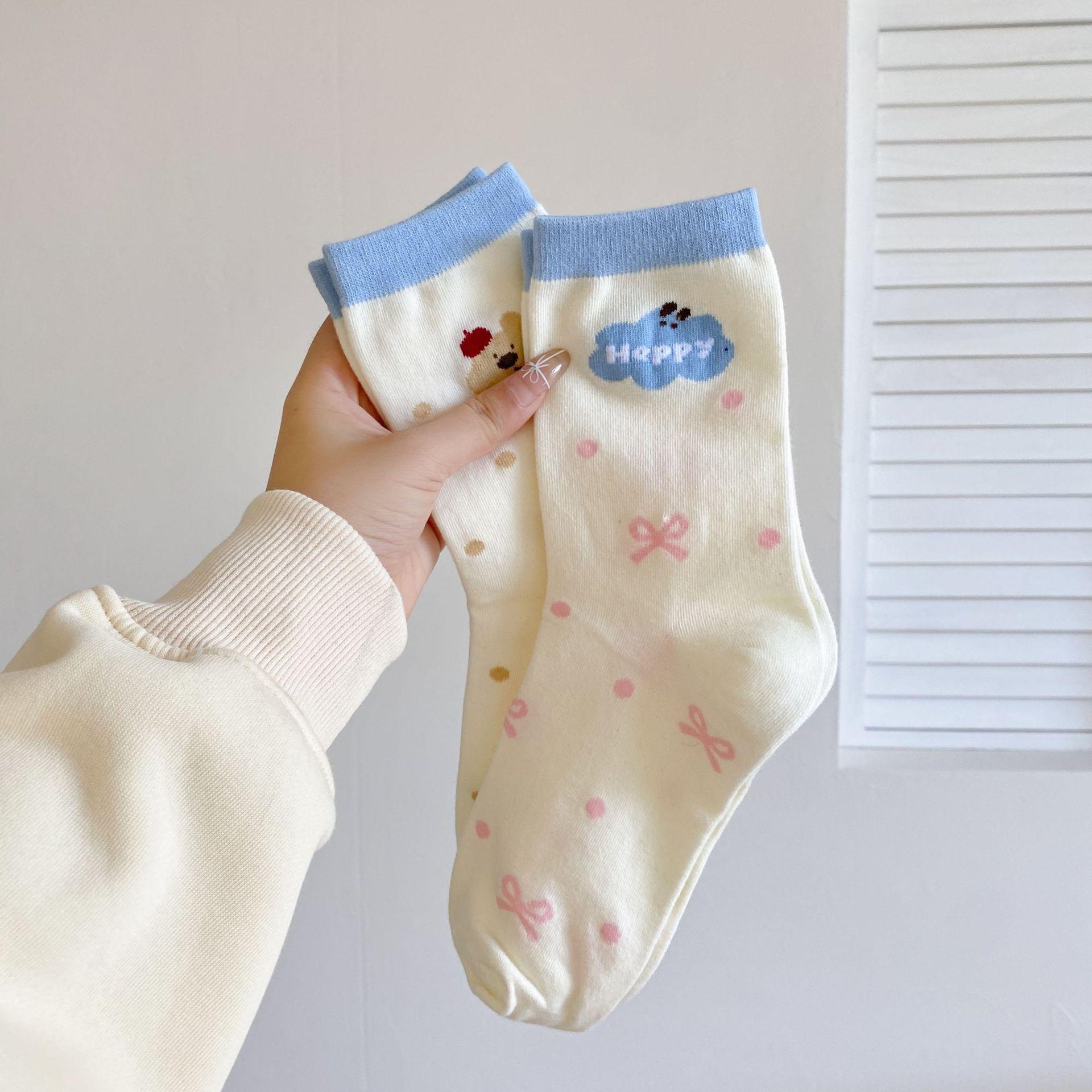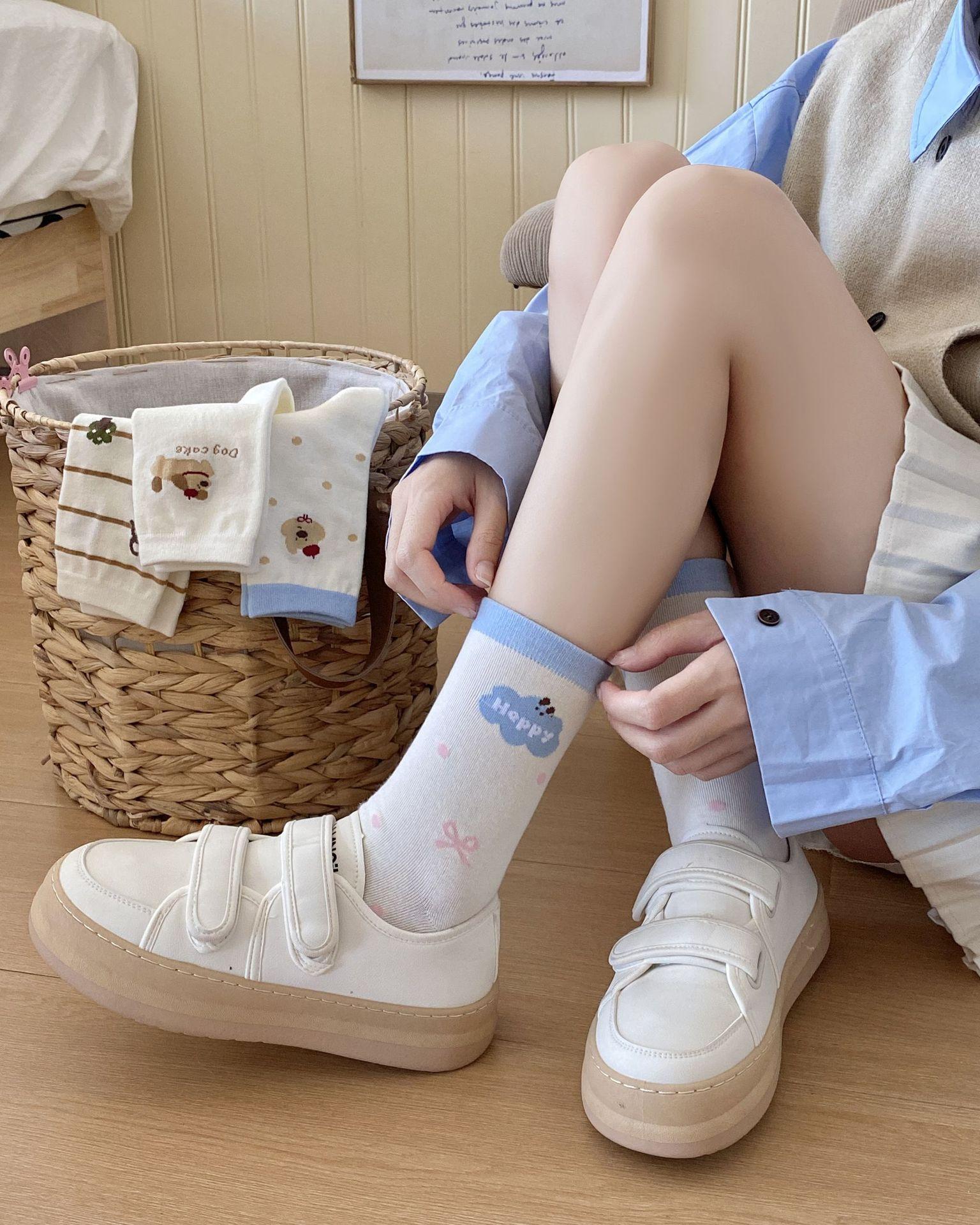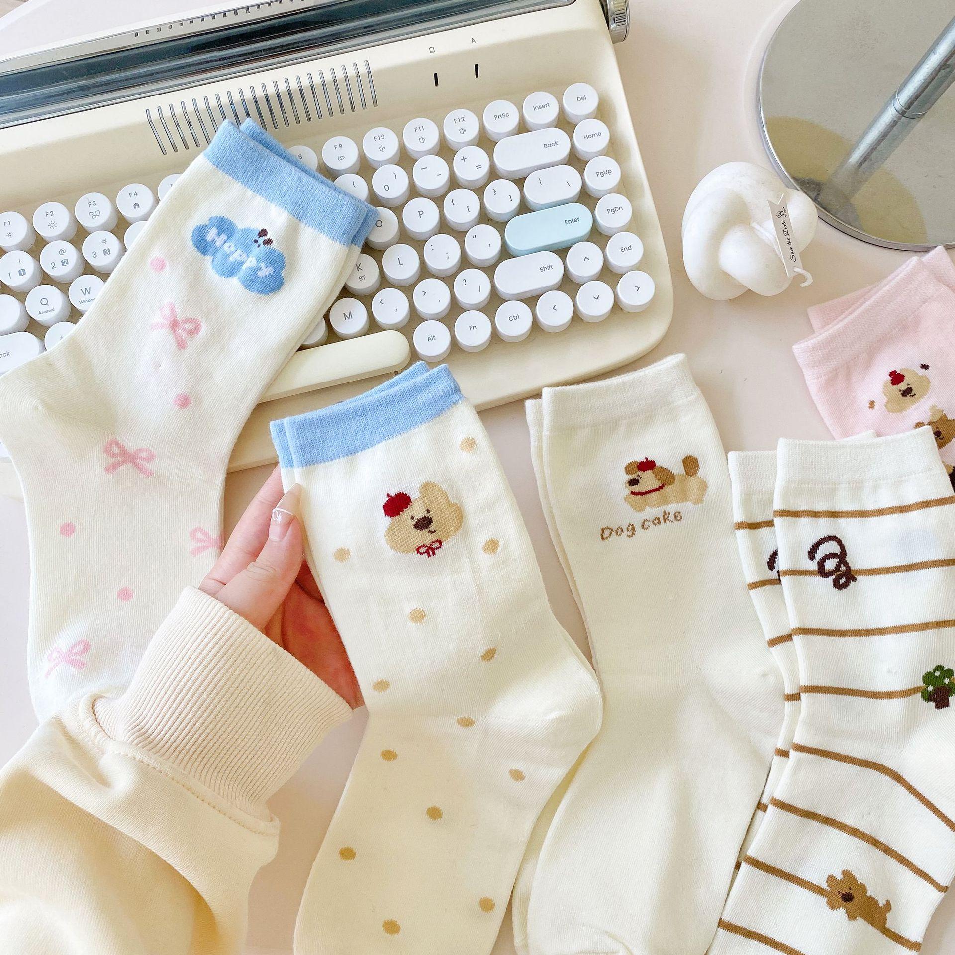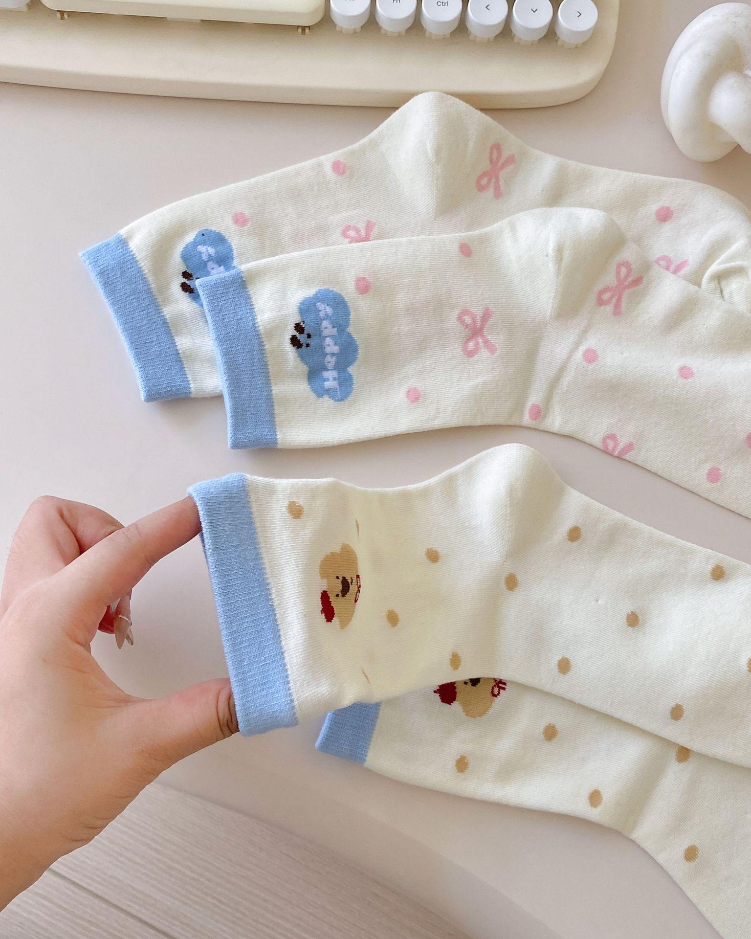 Calcetines de Dibujos Animados Calcetines Medianos para Niños Ins Trendy Primavera y Otoño Estilo Japonés Lindo Estilo Universitario Lazo Lunares Cachorro Rayas