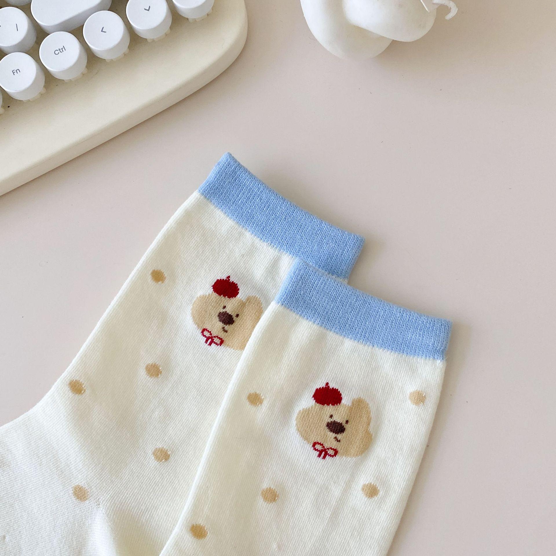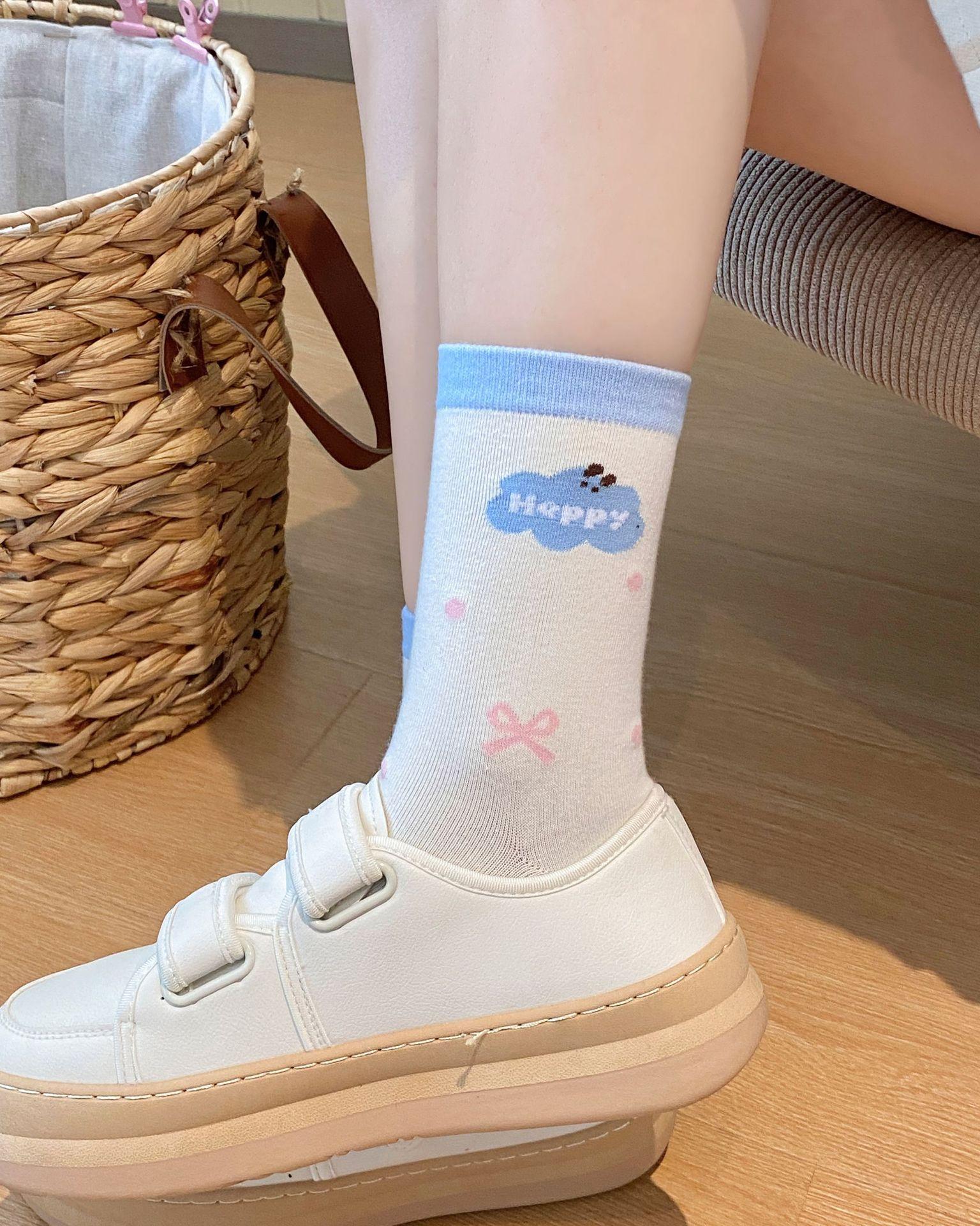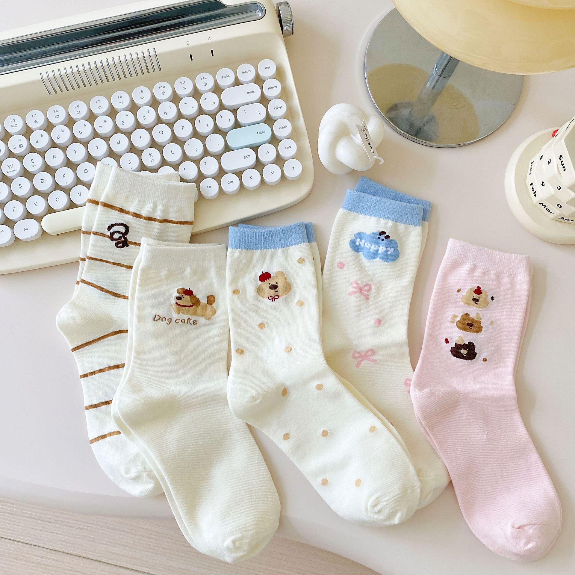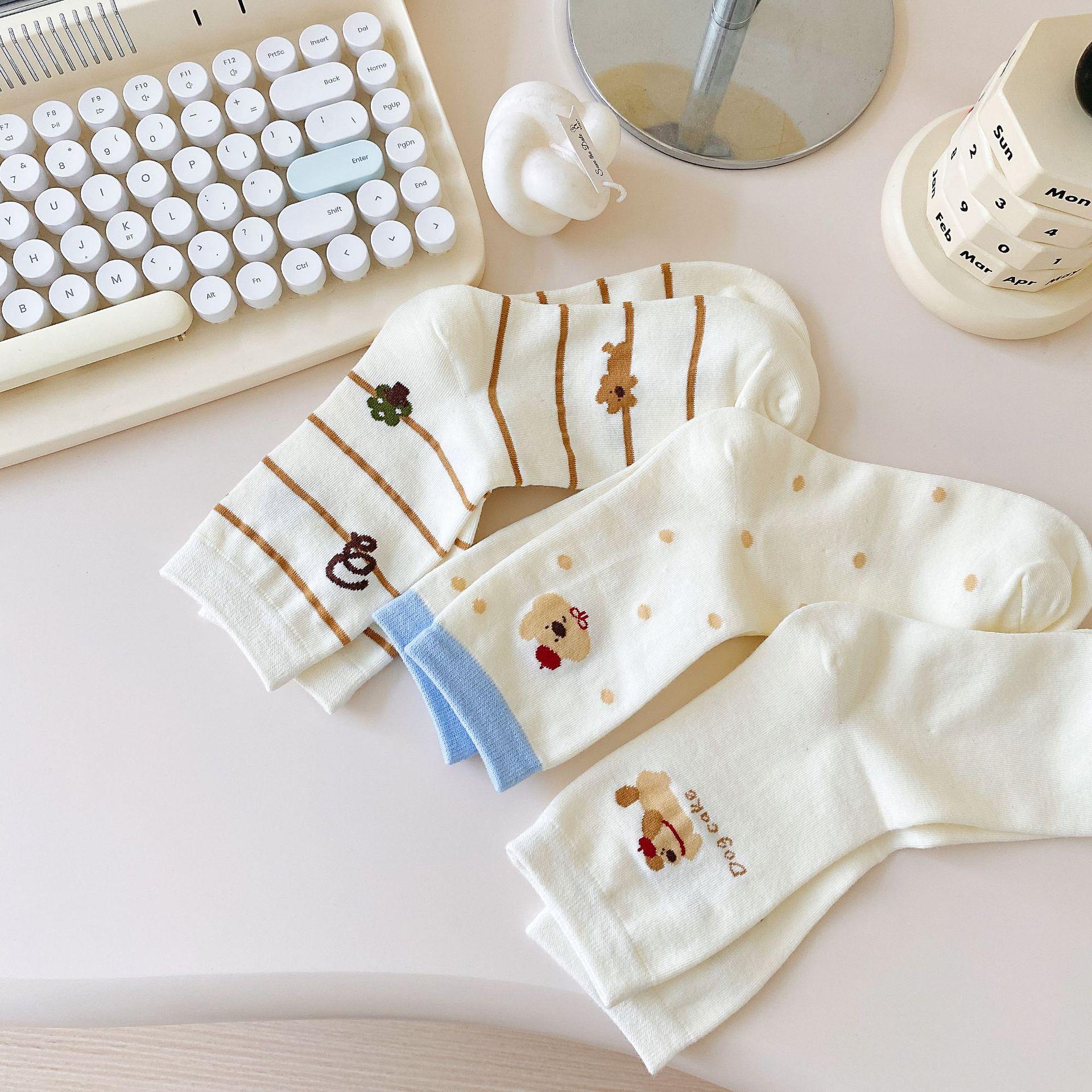 Calcetines de Dibujos Animados Calcetines Medianos para Niños Ins Trendy Primavera y Otoño Estilo Japonés Lindo Estilo Universitario Lazo Lunares Cachorro Rayas