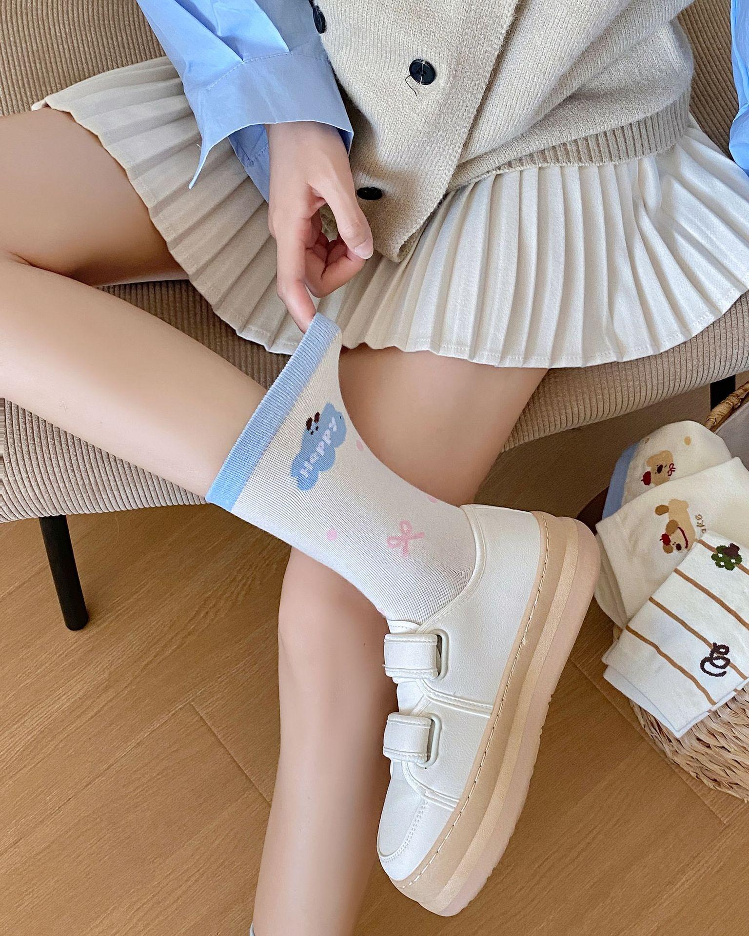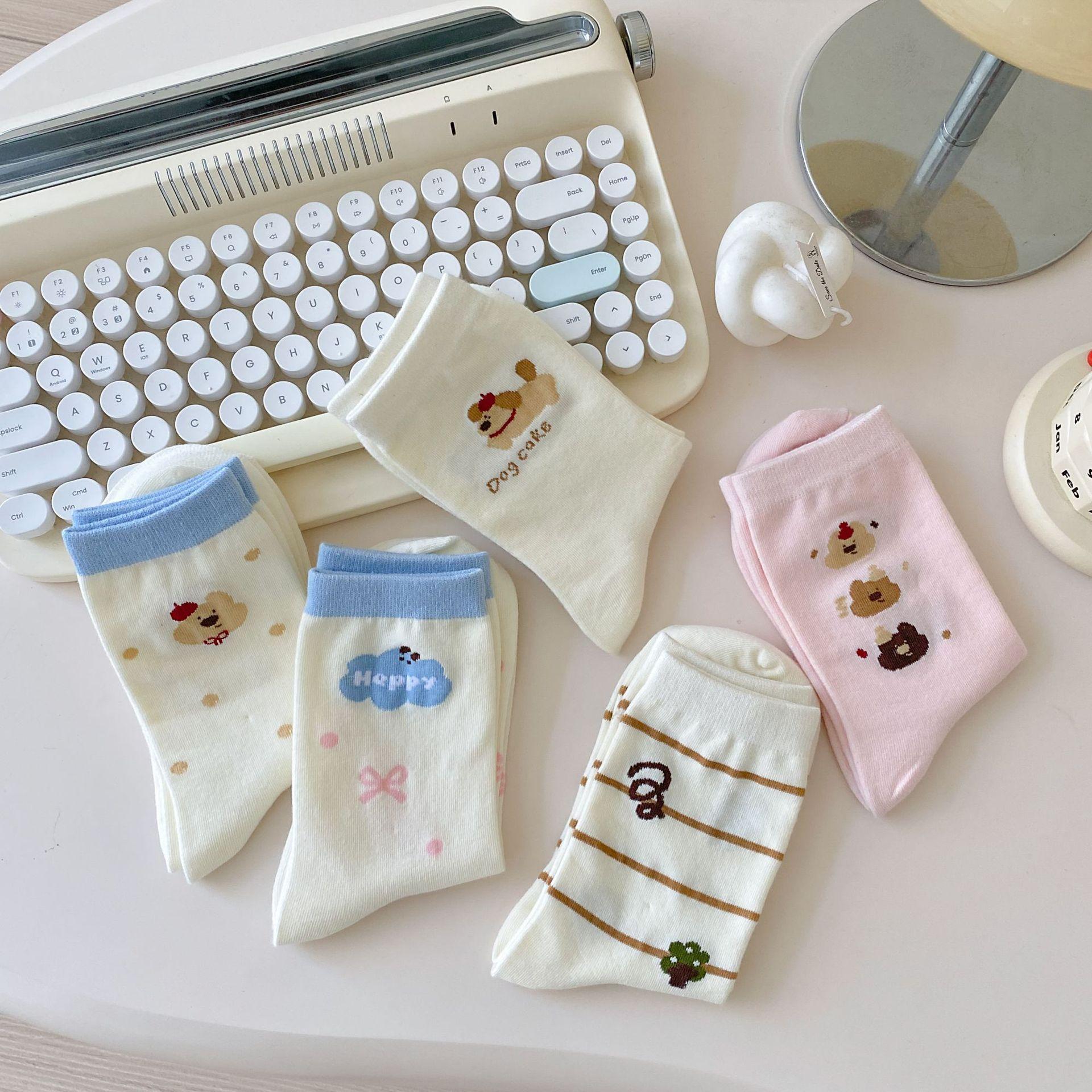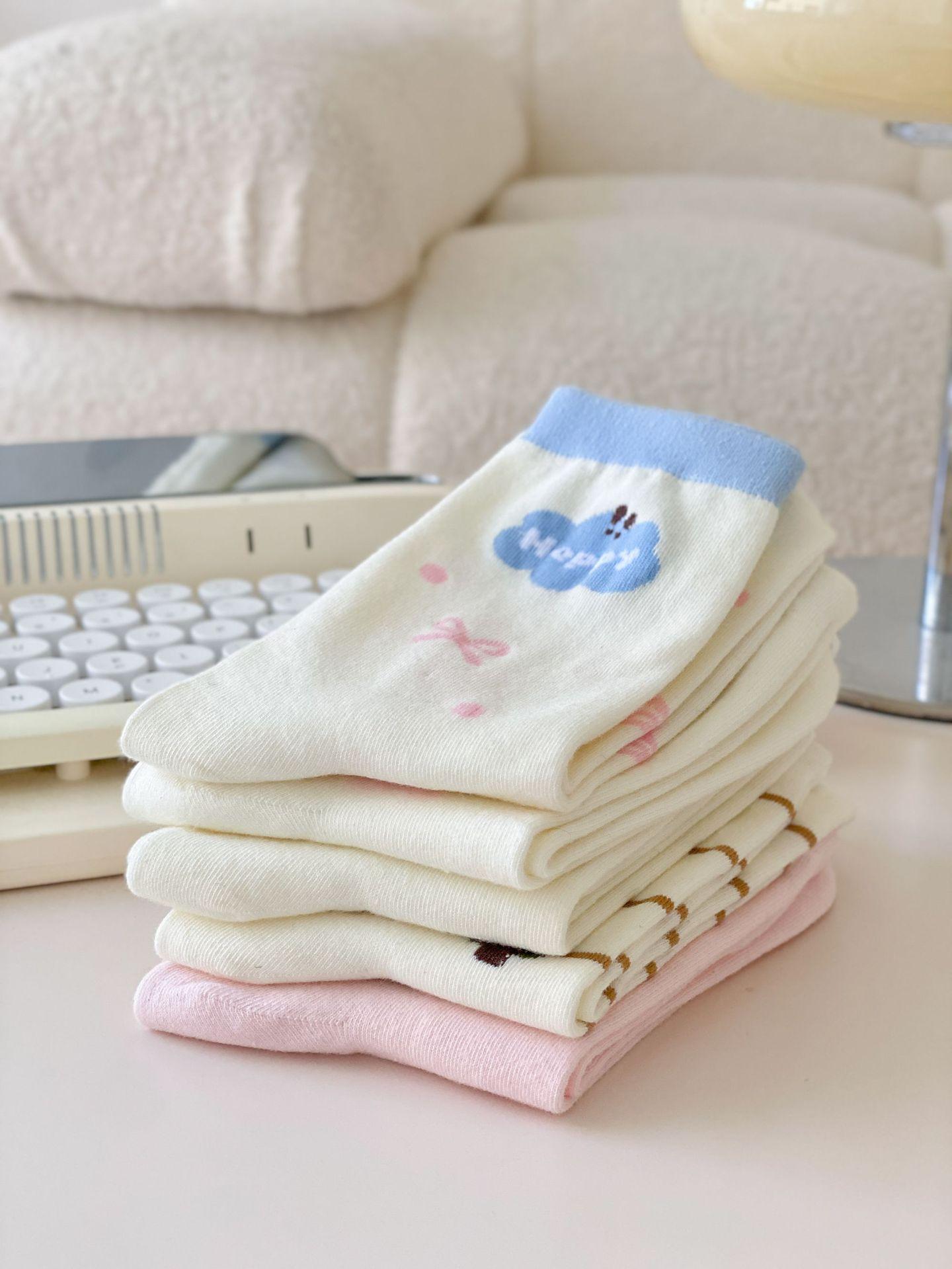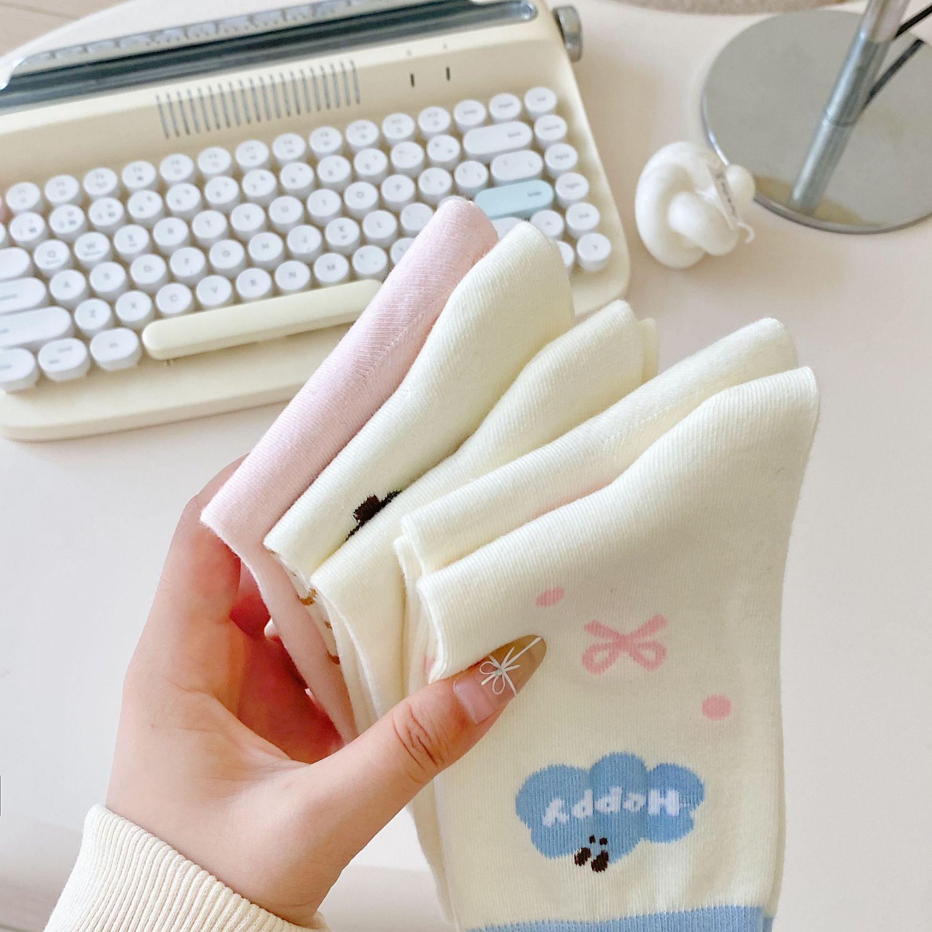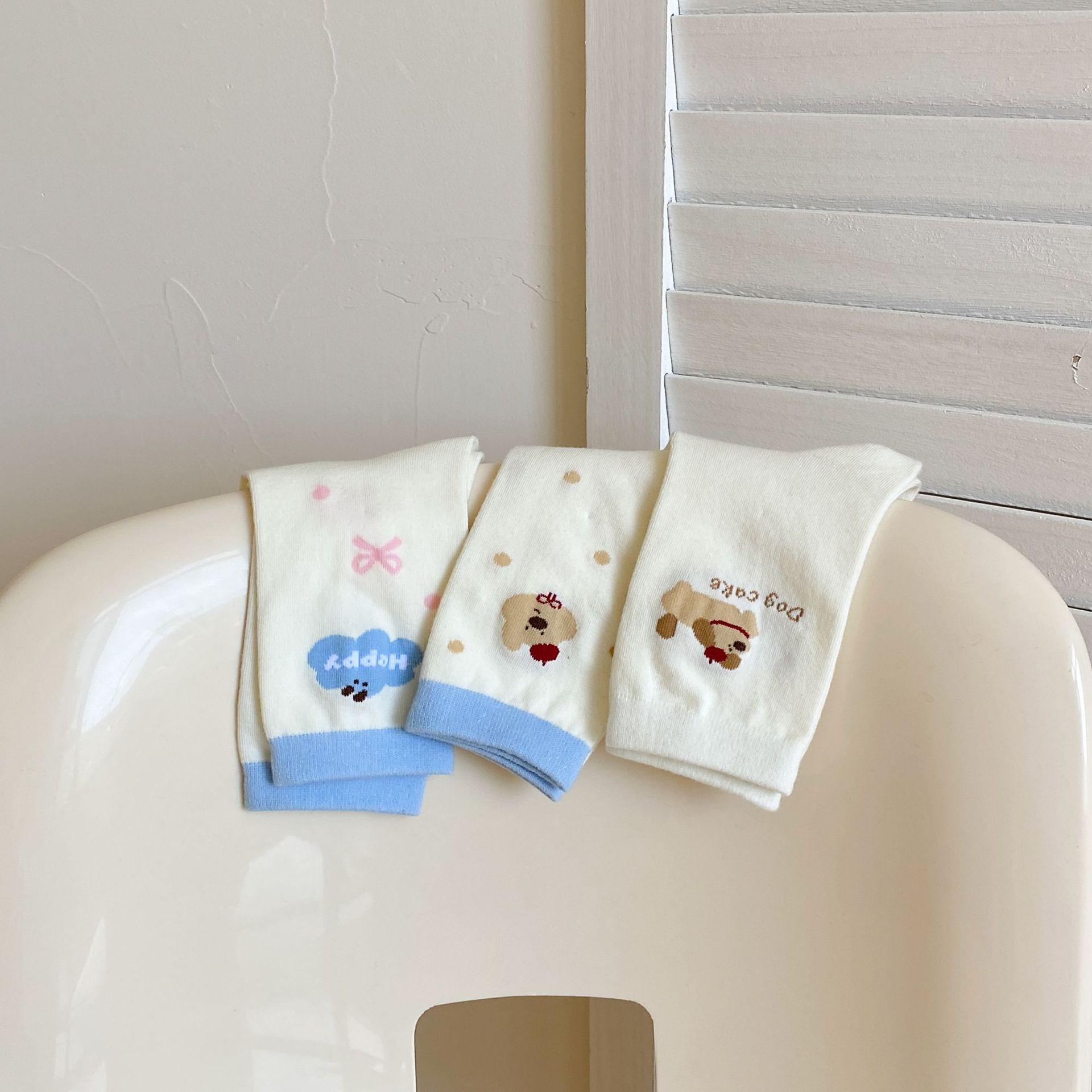 Calcetines de Dibujos Animados Calcetines Medianos para Niños Ins Trendy Primavera y Otoño Estilo Japonés Lindo Estilo Universitario Lazo Lunares Cachorro Rayas