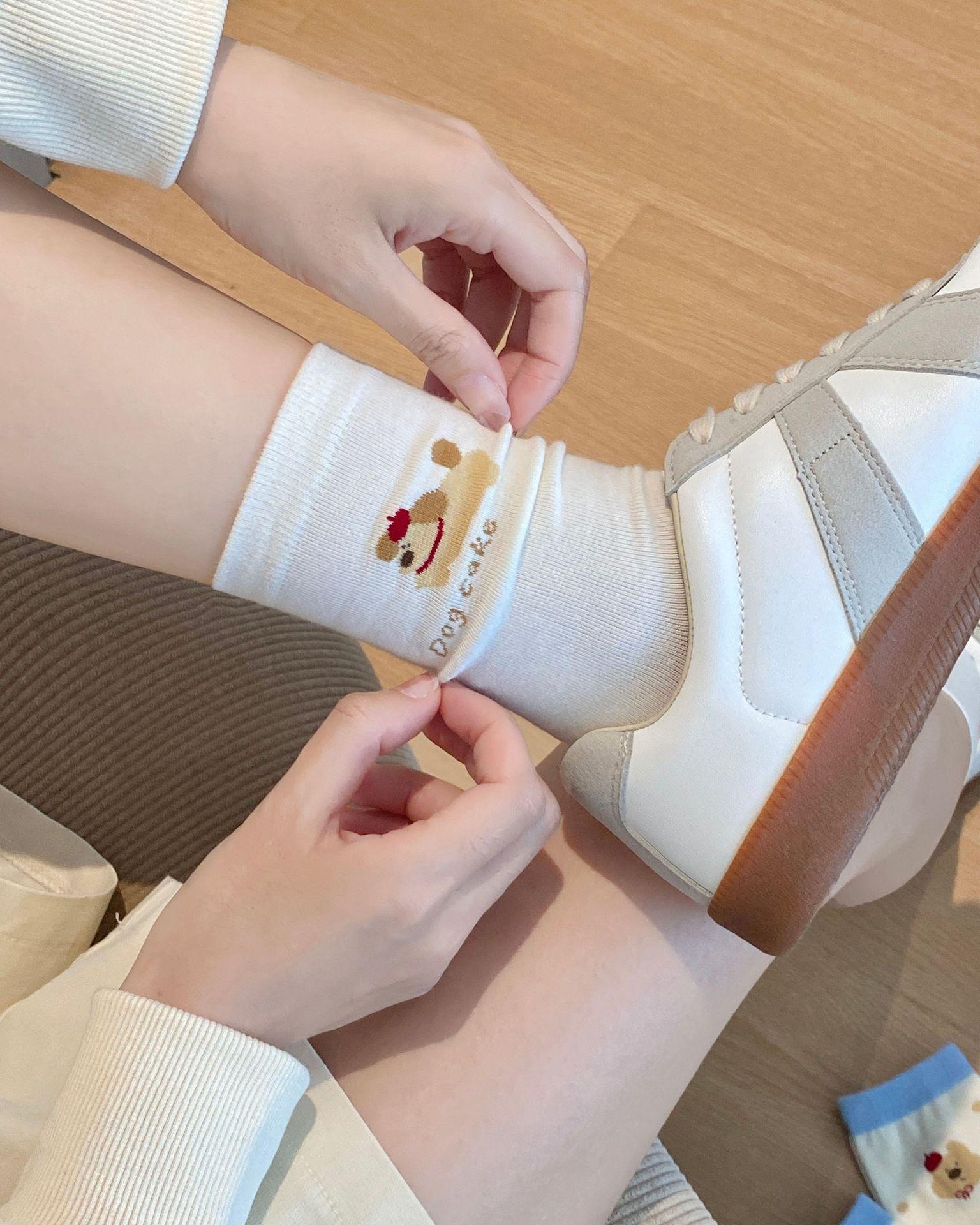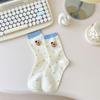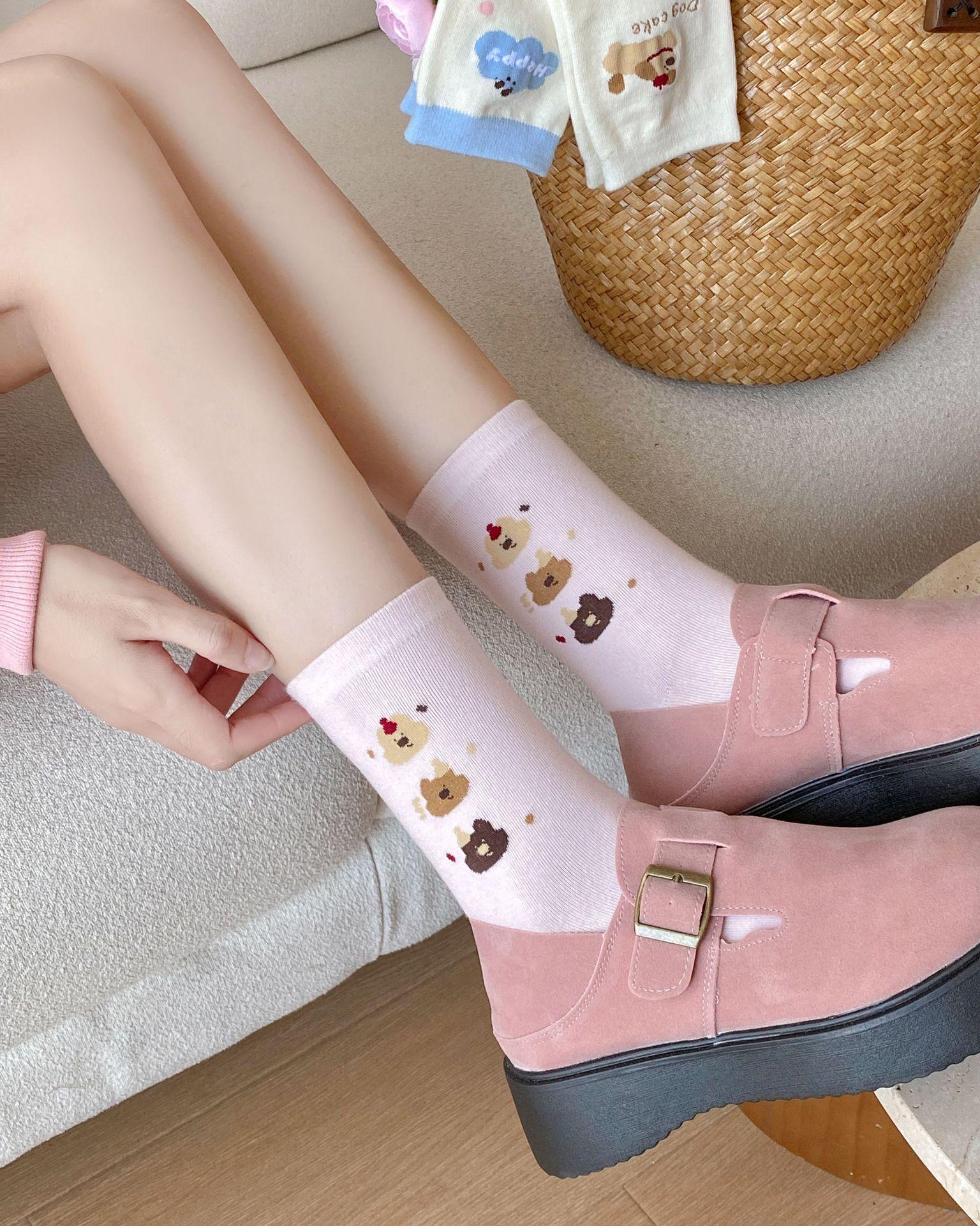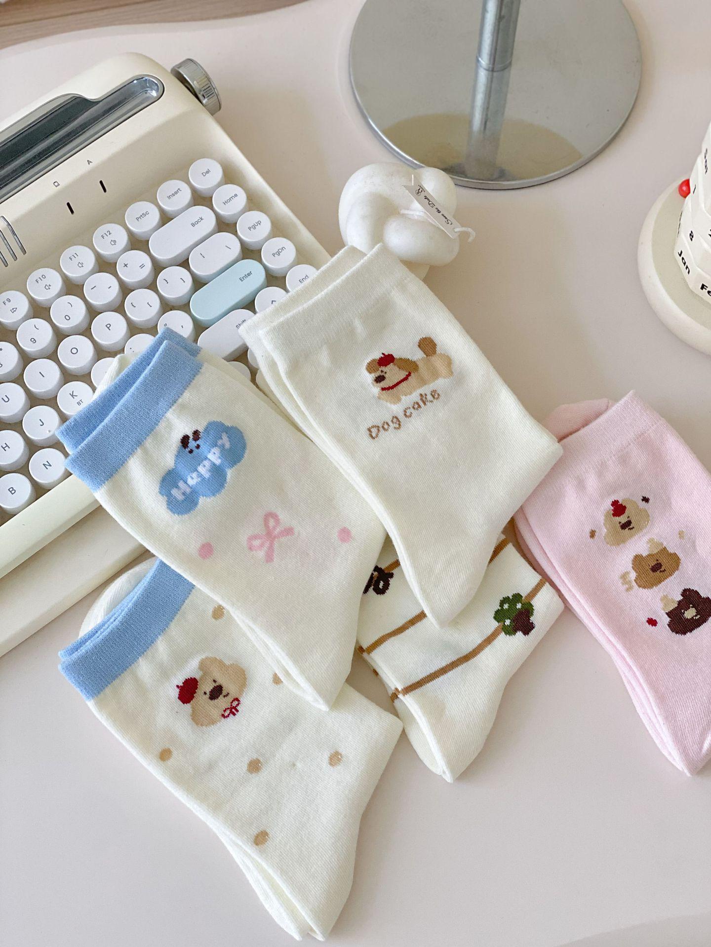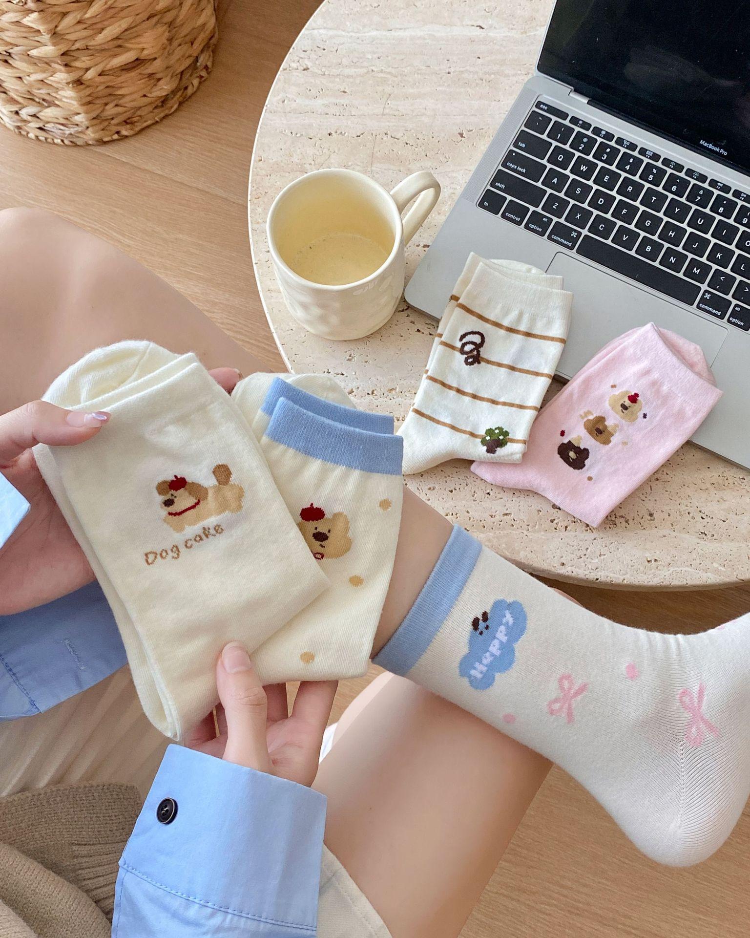 Calcetines de Dibujos Animados Calcetines Medianos para Niños Ins Trendy Primavera y Otoño Estilo Japonés Lindo Estilo Universitario Lazo Lunares Cachorro Rayas