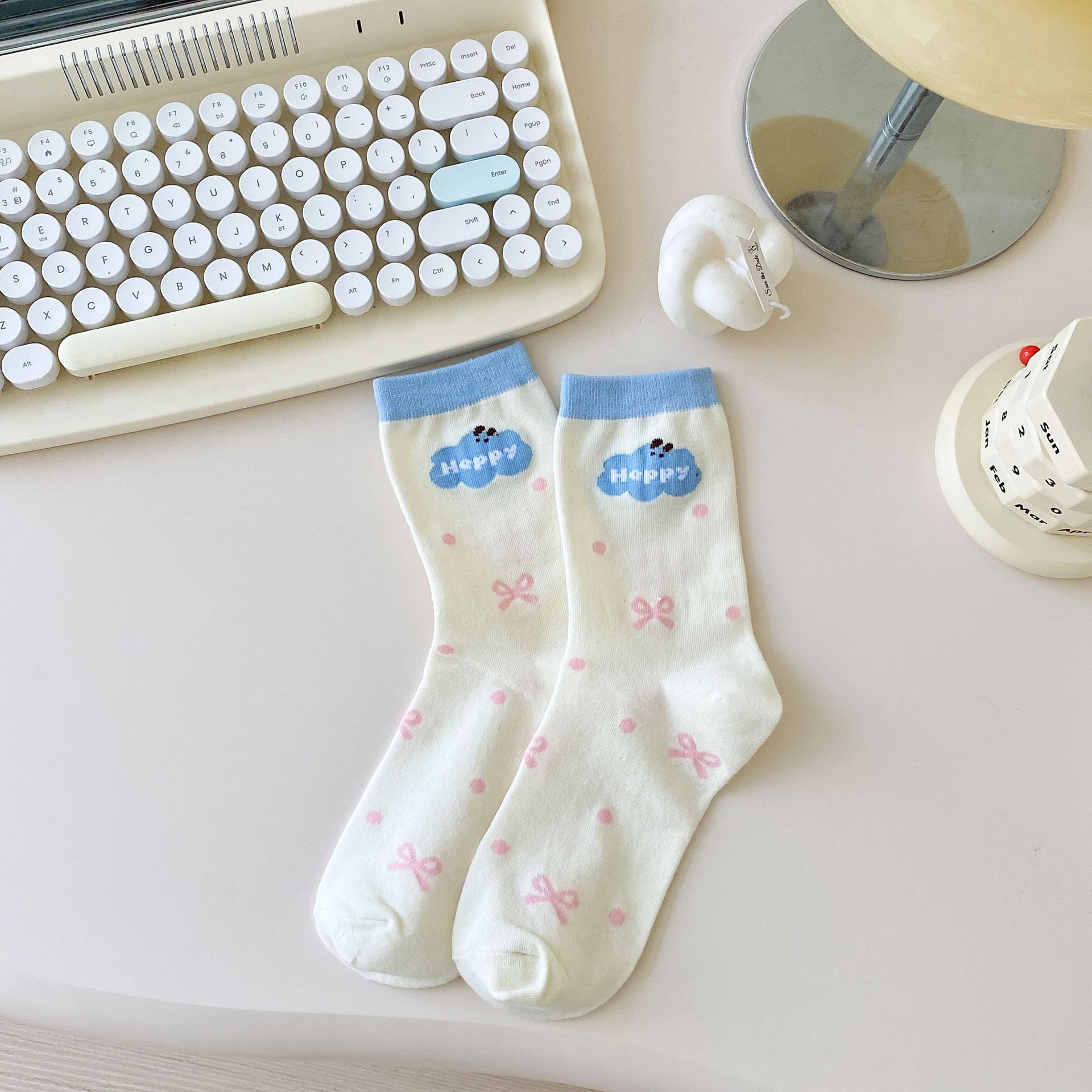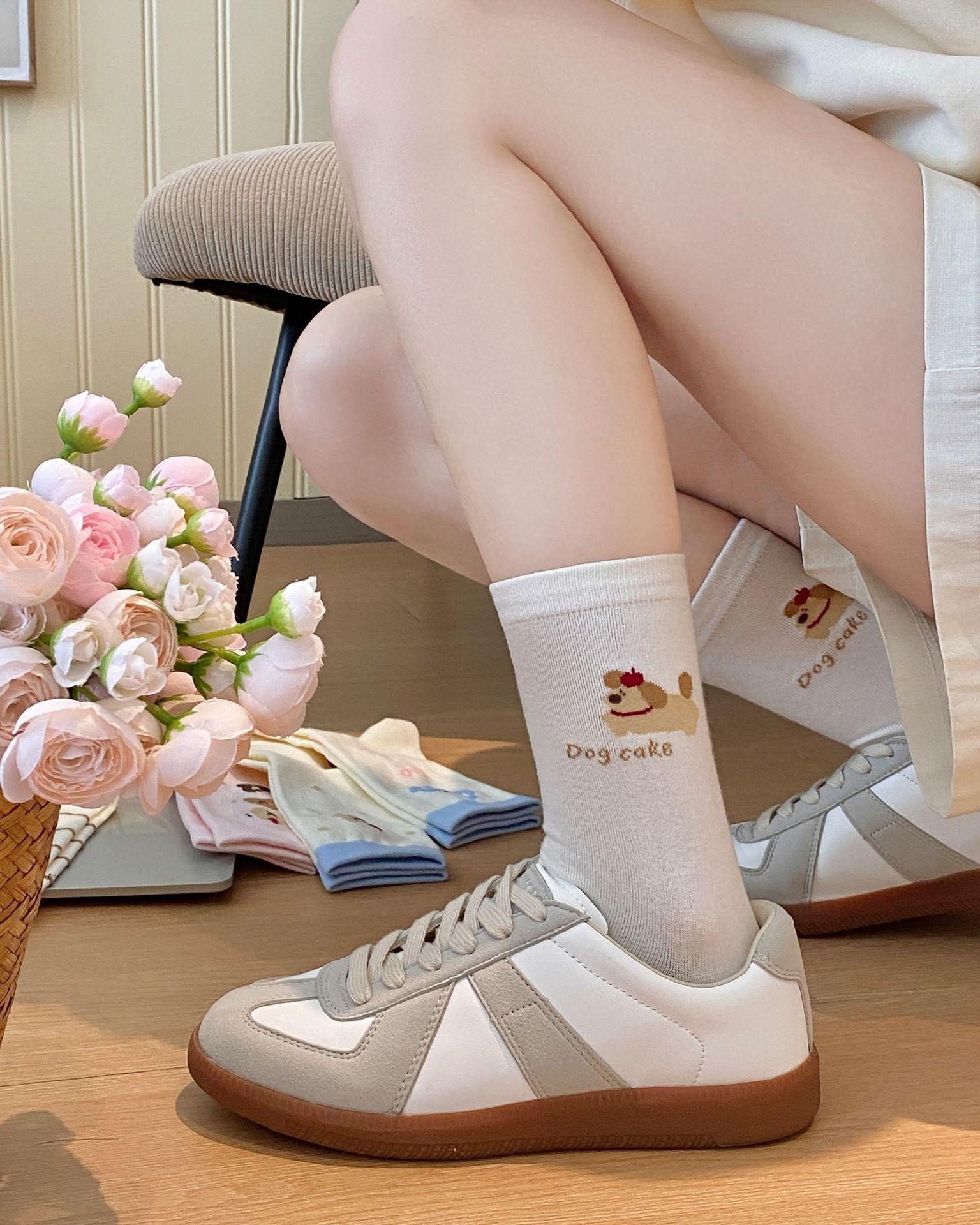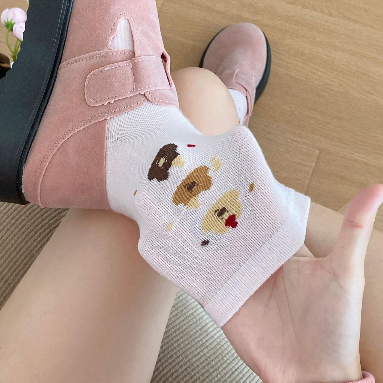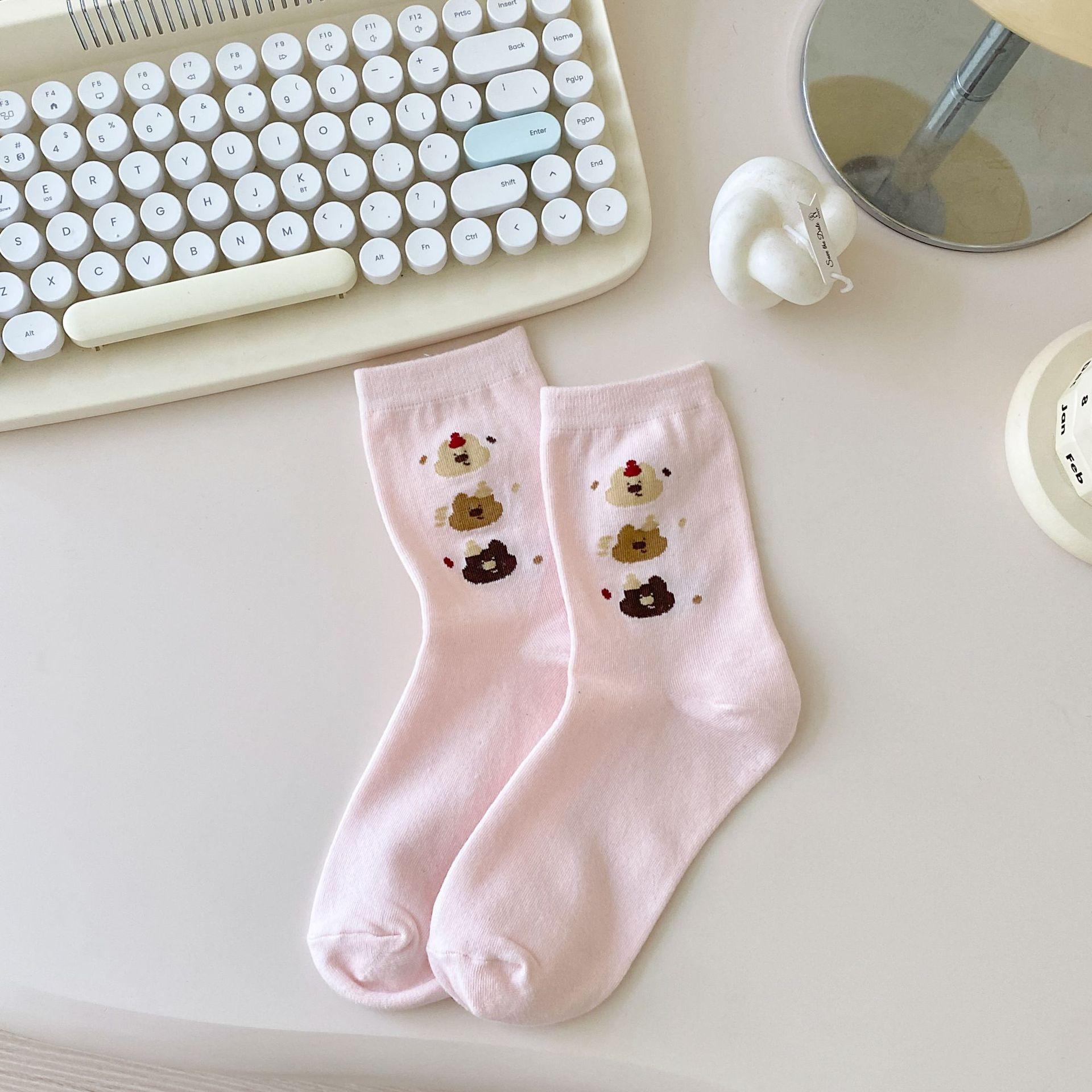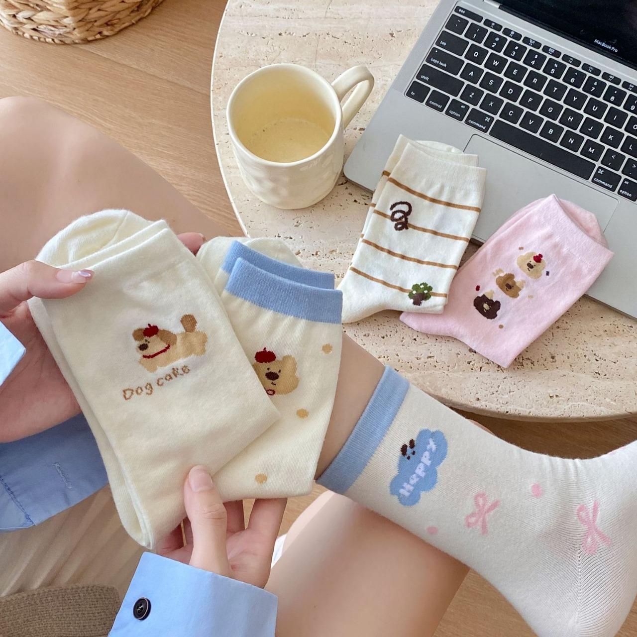 Calcetines de Dibujos Animados Calcetines Medianos para Niños Ins Trendy Primavera y Otoño Estilo Japonés Lindo Estilo Universitario Lazo Lunares Cachorro Rayas