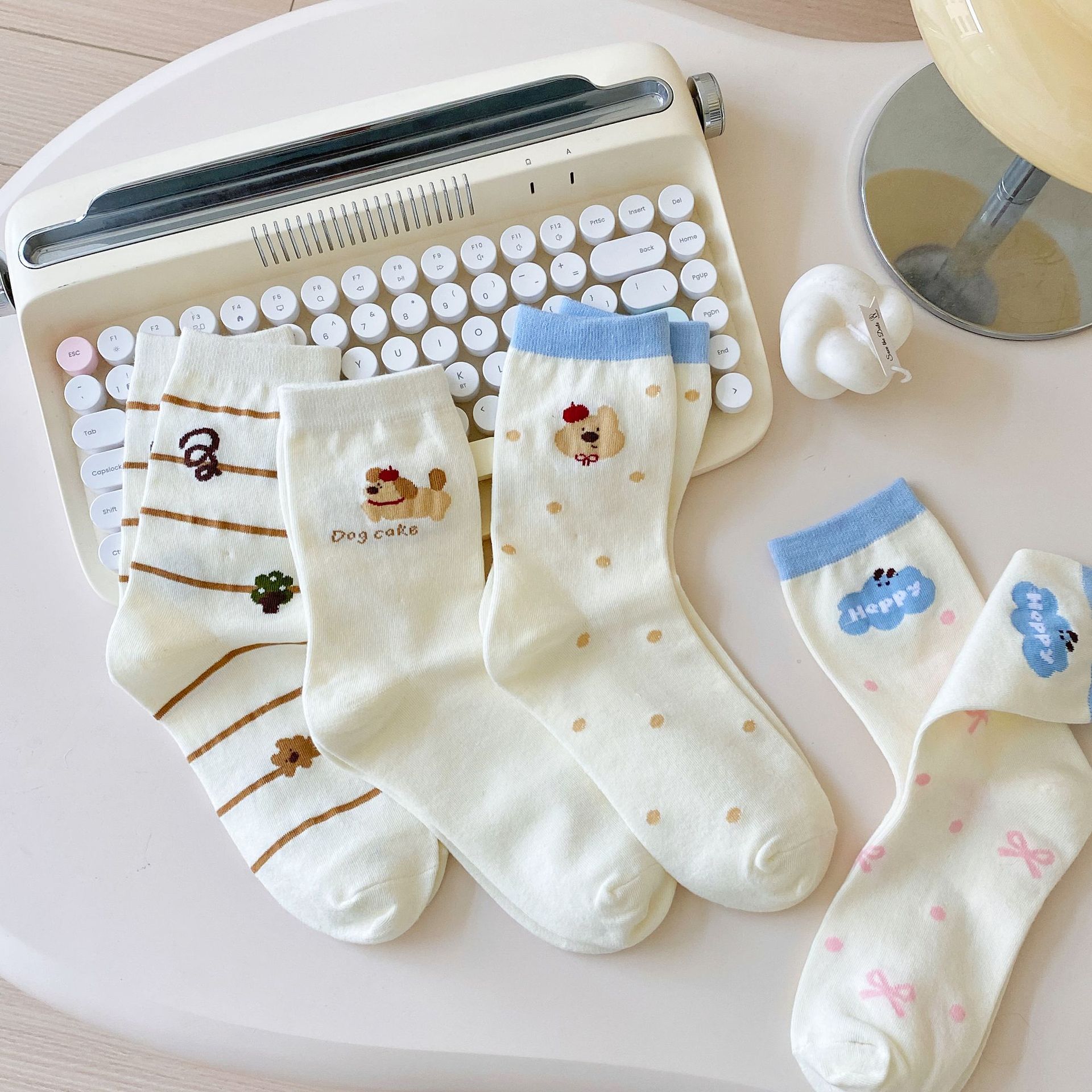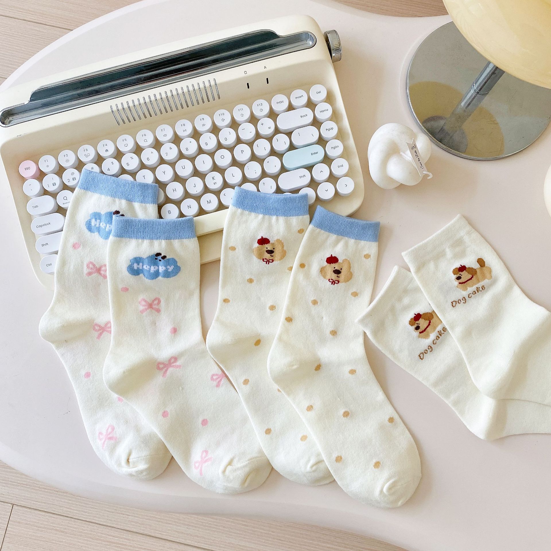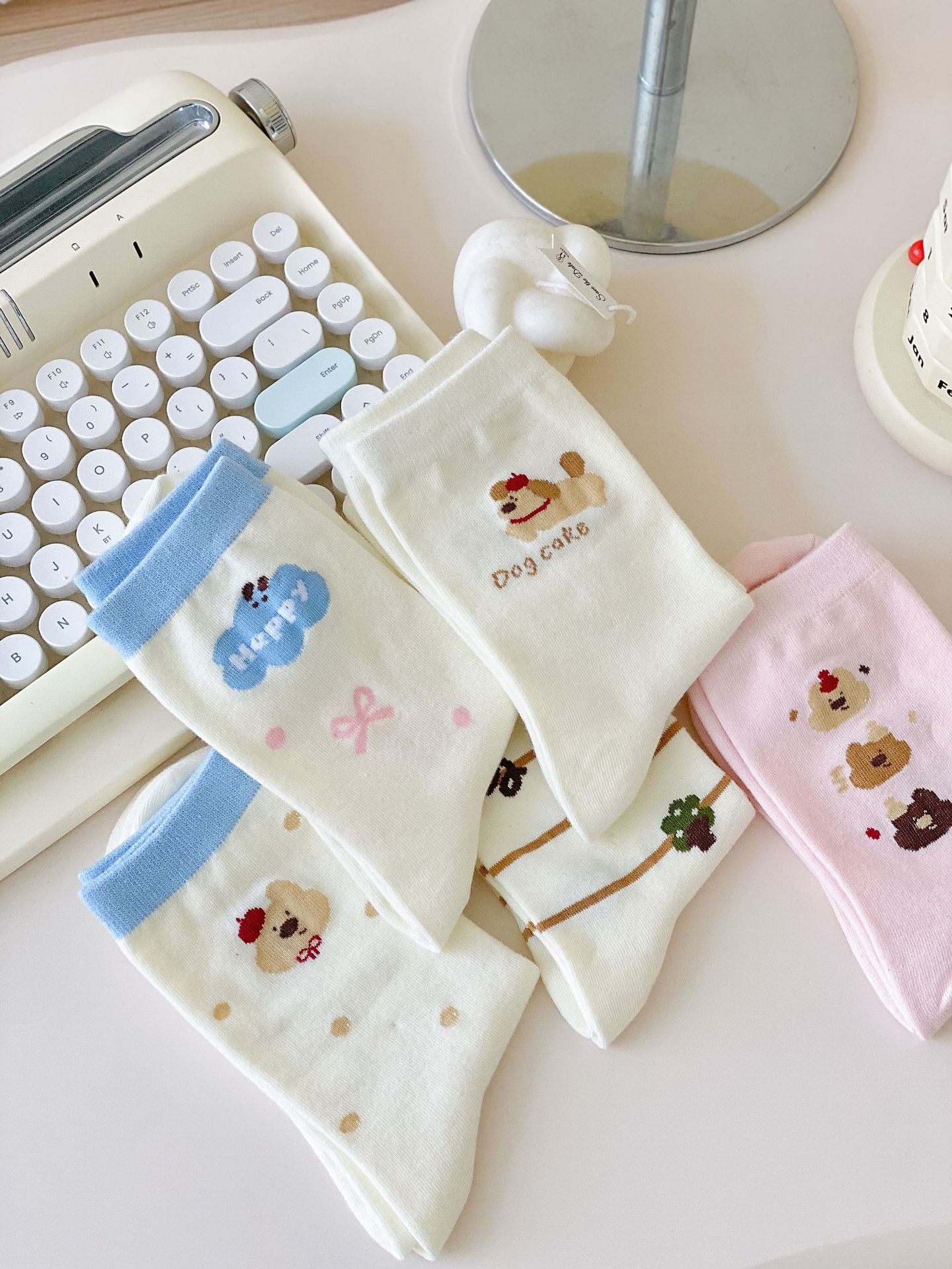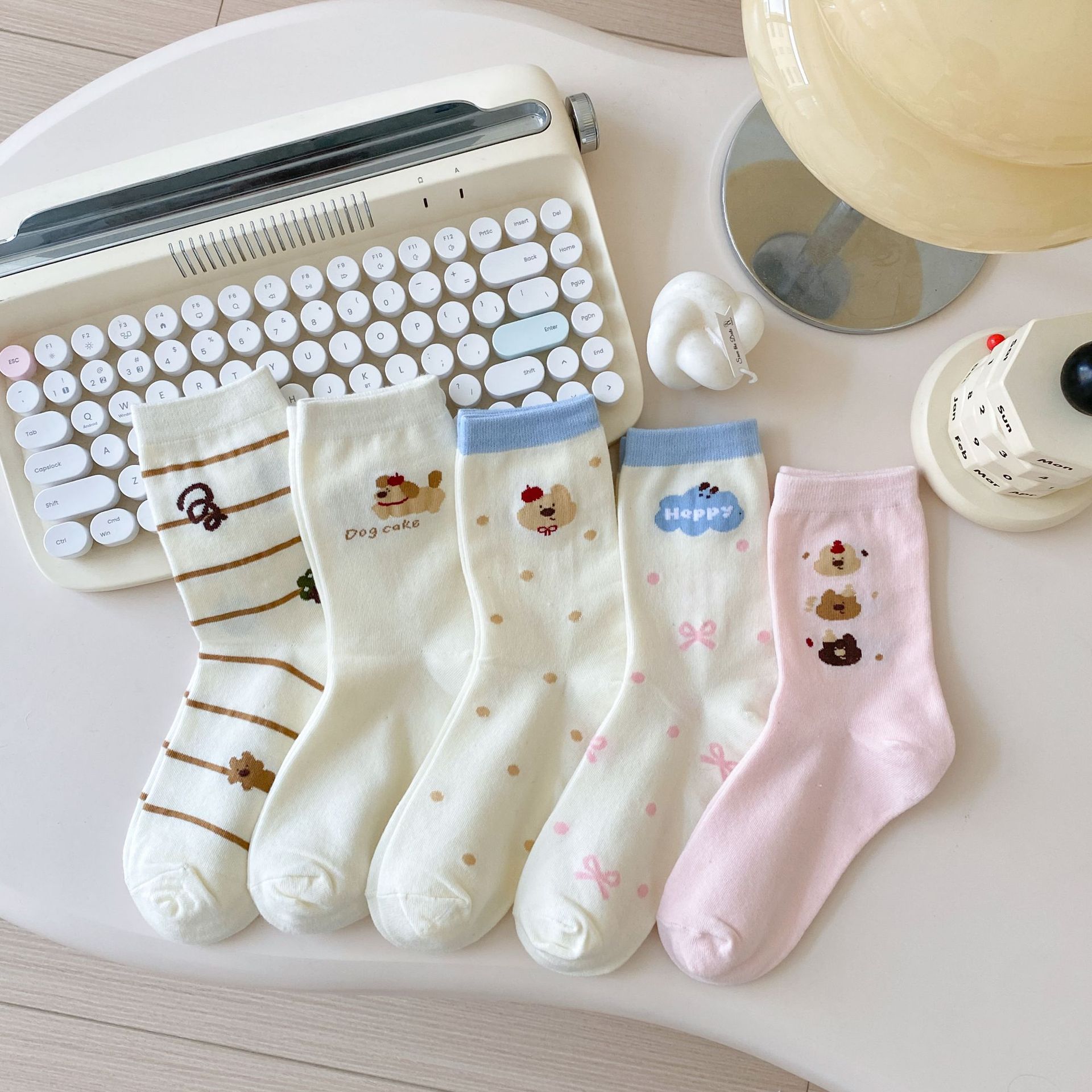 Calcetines de Dibujos Animados Calcetines Medianos para Niños Ins Trendy Primavera y Otoño Estilo Japonés Lindo Estilo Universitario Lazo Lunares Cachorro Rayas