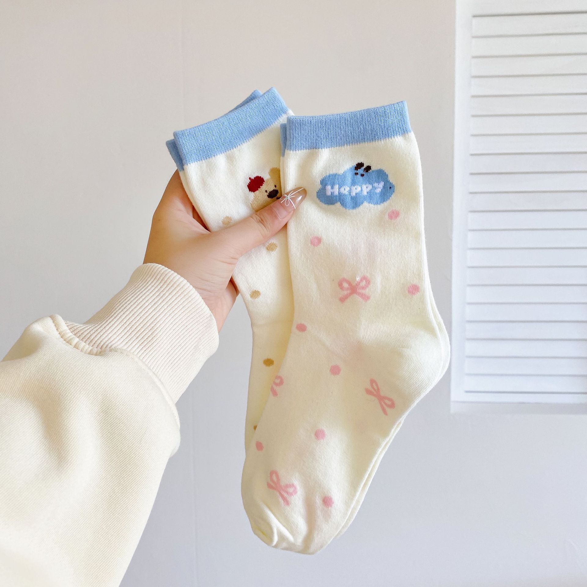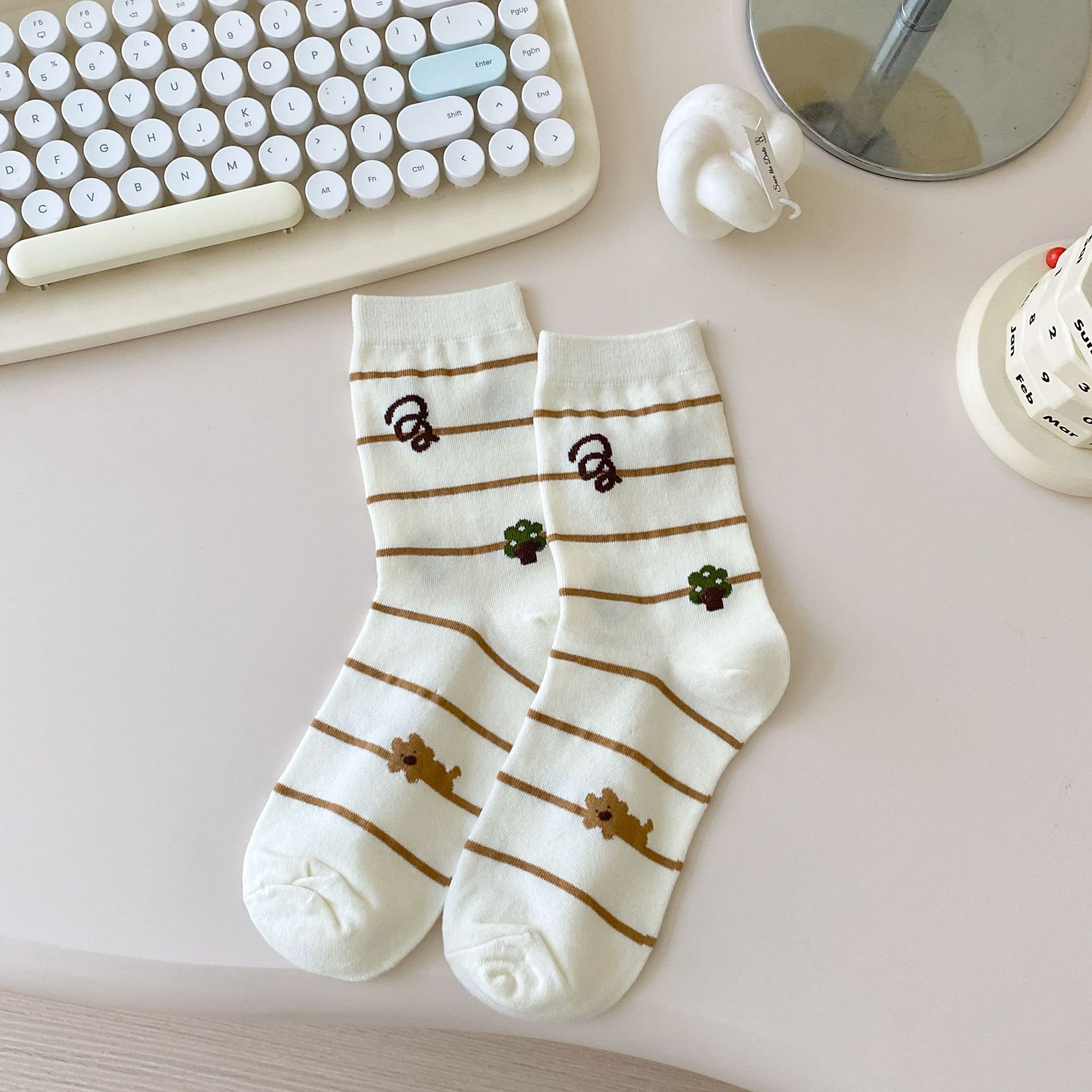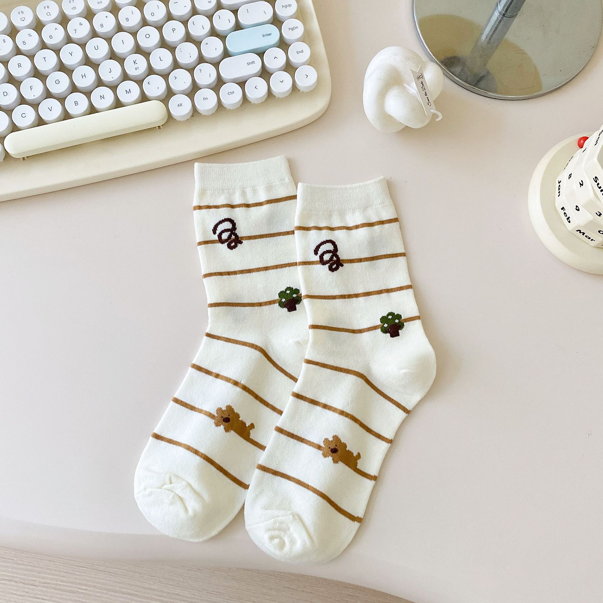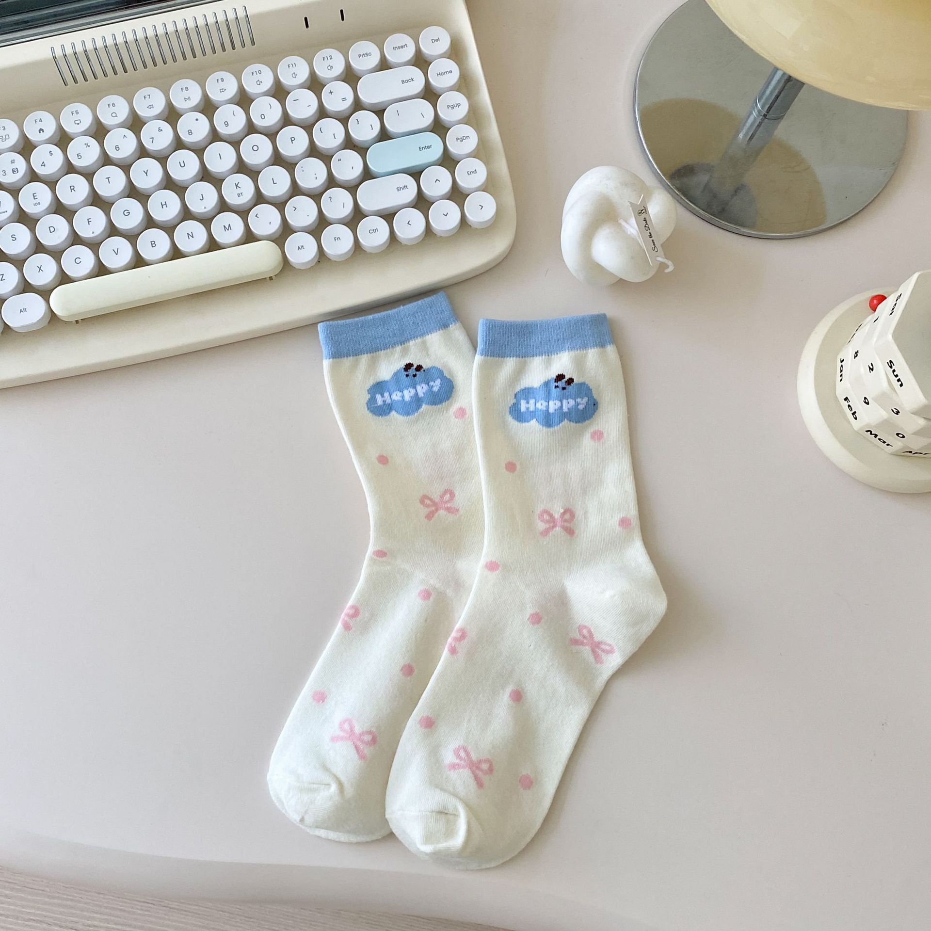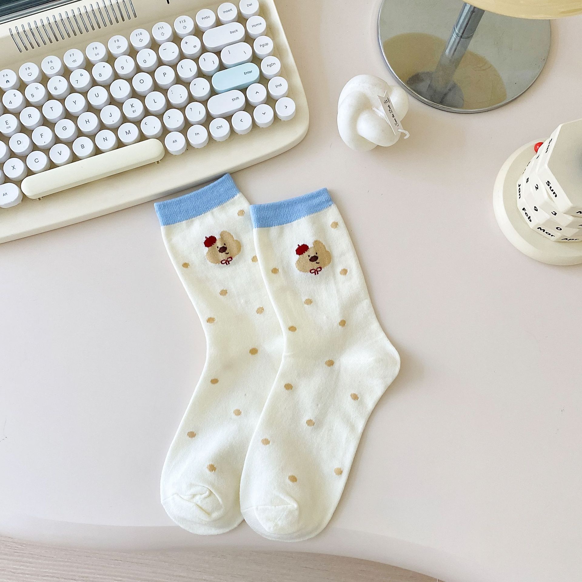 Calcetines de Dibujos Animados Calcetines Medianos para Niños Ins Trendy Primavera y Otoño Estilo Japonés Lindo Estilo Universitario Lazo Lunares Cachorro Rayas