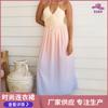 Vestido de noche sexy con abertura y escote en V sin mangas, color liso, estilo europeo y americano, para verano de 2024, para mujer