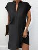 Ropa Nueva de Primavera y Verano 2024 para Mujer Europea y Americana Amazon Vestido de Manga Corta a la Moda con Falda Midi de Color Sólido Ligero y Maduro con Cuello en V