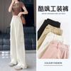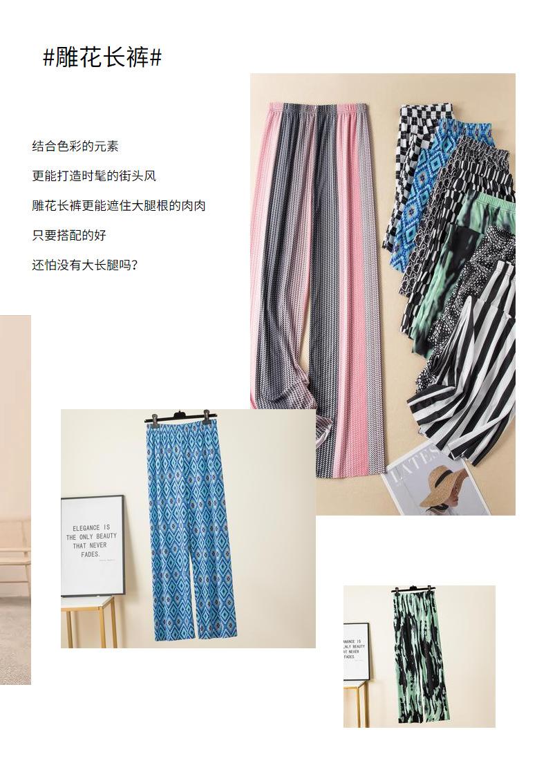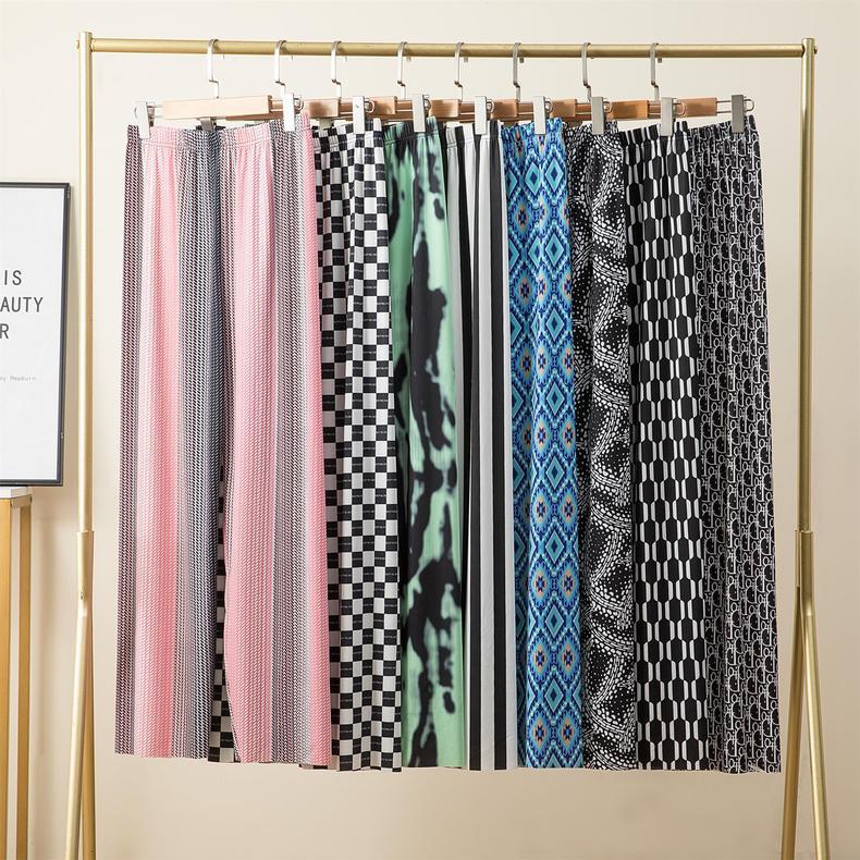 Pantalones anchos de seda de hielo para mujer, primavera y verano, nuevos pantalones holgados, ajustados, estampados, de pierna recta, pantalones casuales para estudiantes
