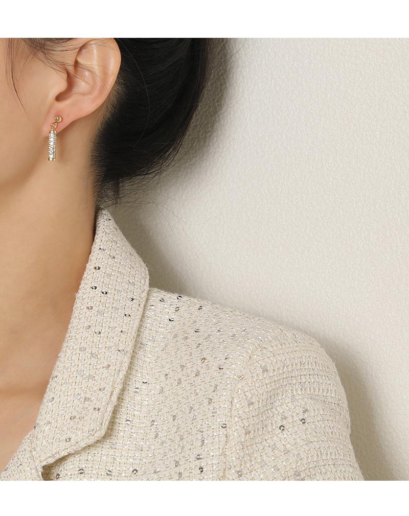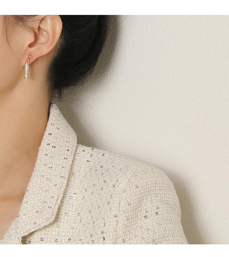 Pendientes de plata 925 con diseño de nicho de alta calidad, con exquisitas cuentas redondas incrustadas con diamantes de lujo de Dongdaemun, estilo coreano.