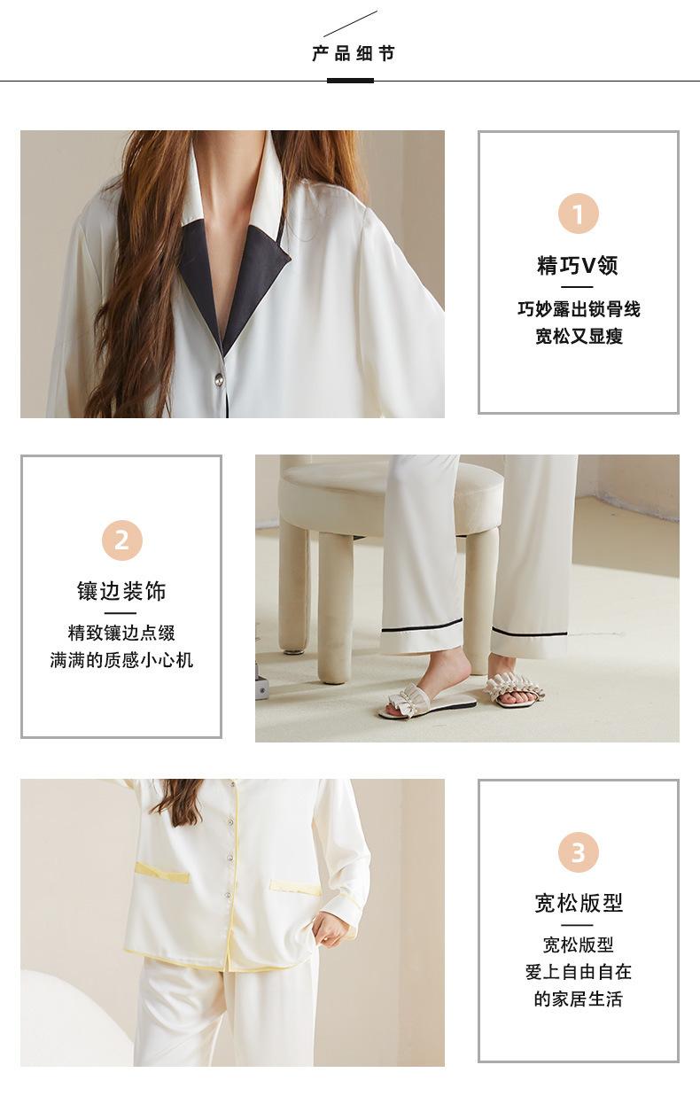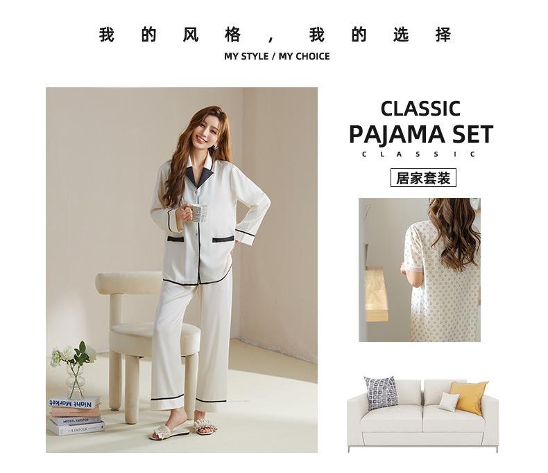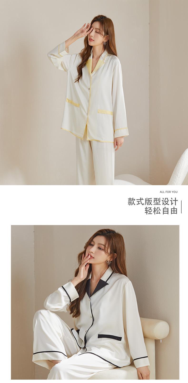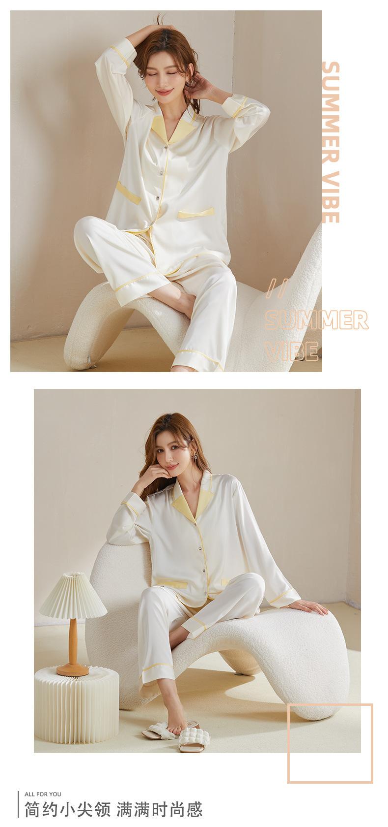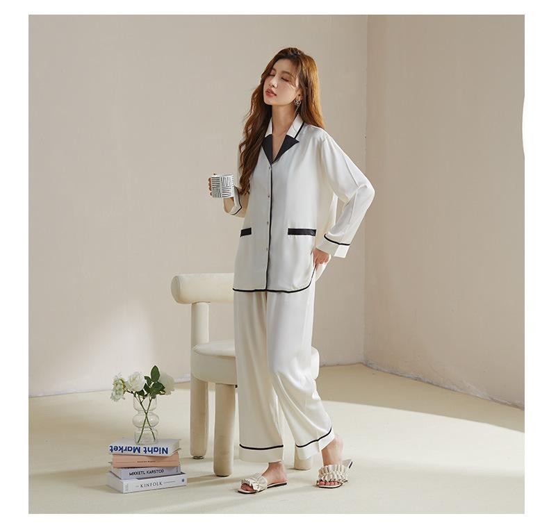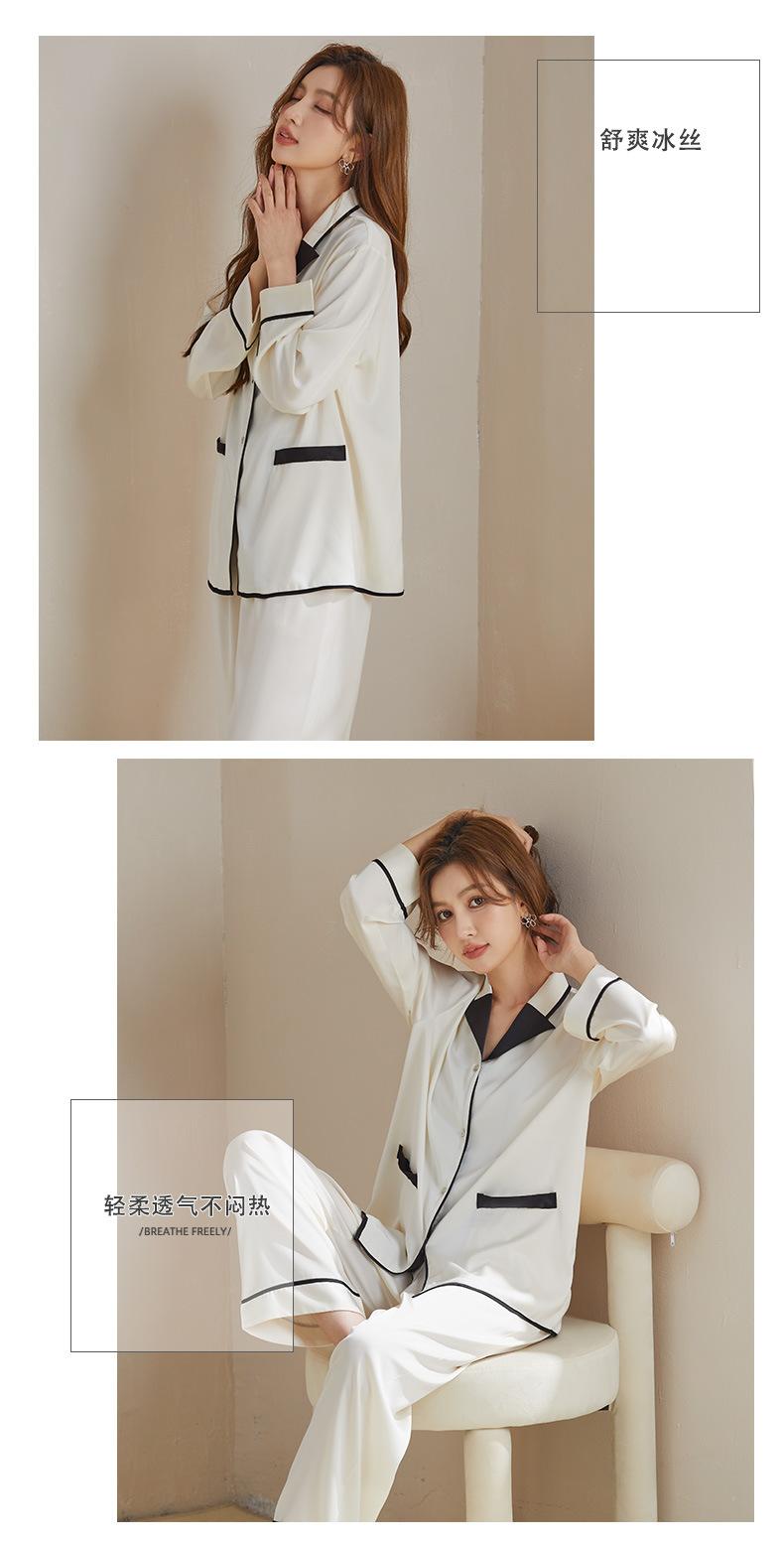 Pijamas de seda helada para mujer, primavera y otoño de 2024, una generación de cabello fino, temperamento, color sólido, dos piezas, manga larga, ropa de hogar