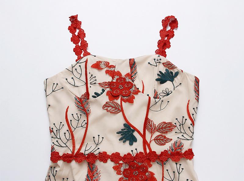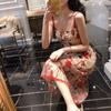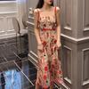 Vestido de tirantes, estilo francés, estilo coreano, floral, con encaje, largo, para el té, verano 9176