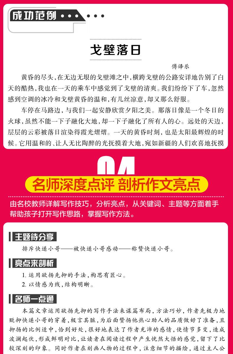 Libro de composición de partituras completas, galardonado y sobresaliente, sobre habilidades de escritura china para el examen de ingreso a la universidad en los grados 3, 4, 5 y 6.