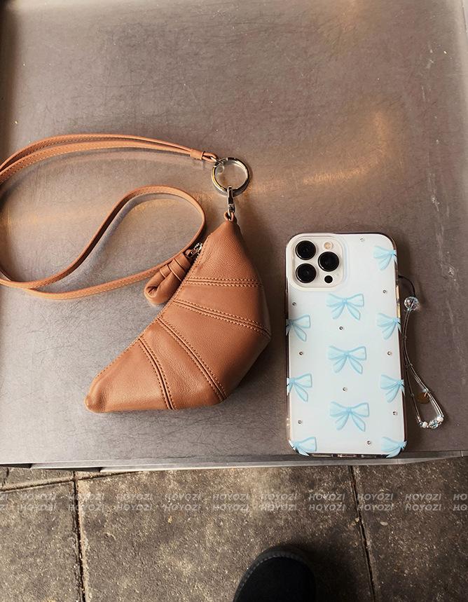 Venta al por mayor 2024 nueva colocación compartir ~ bolsa de cuerno de cuero suave monedero tarjetero bolsa de cuello bolsa para llaves de mujer