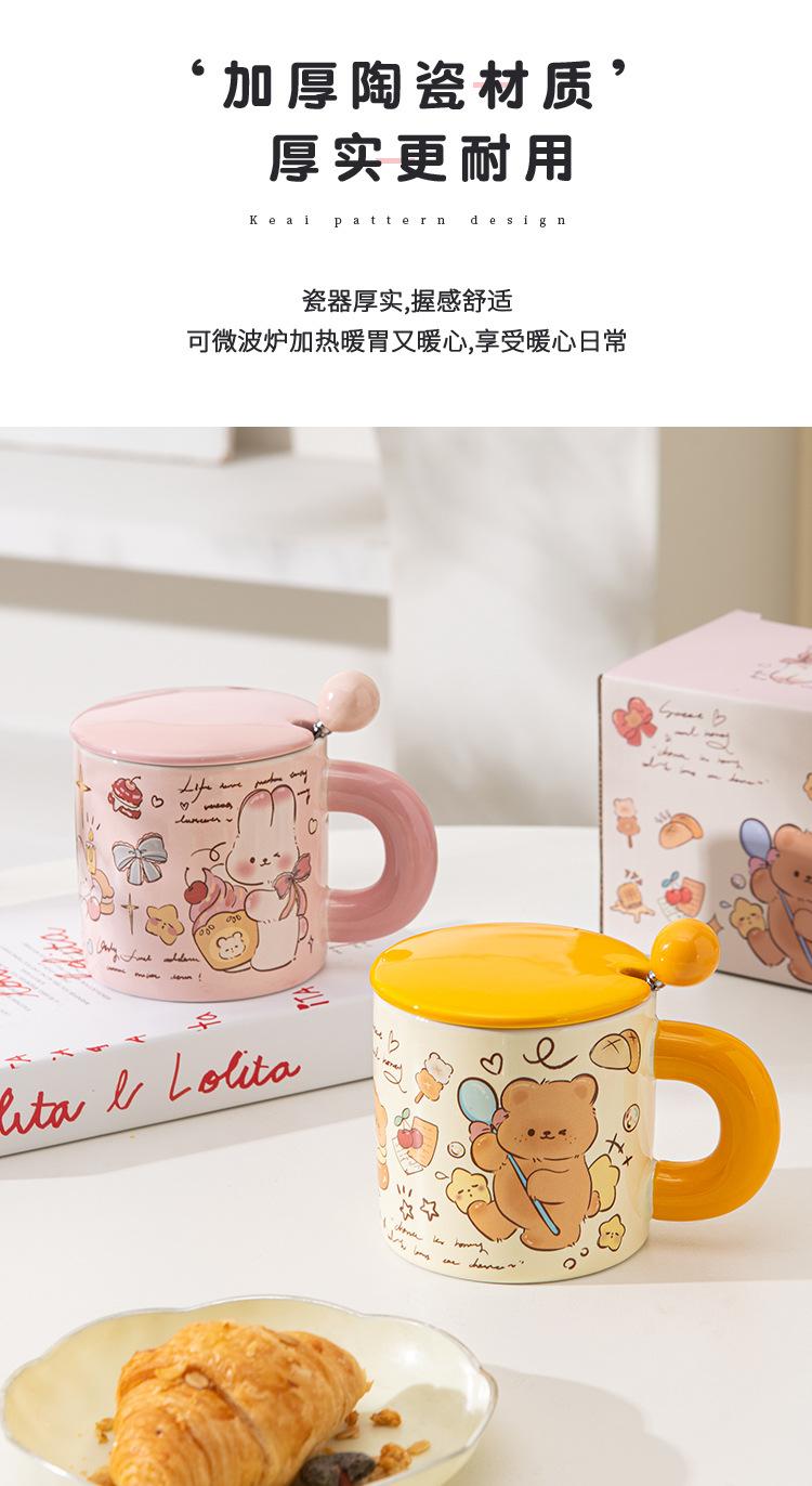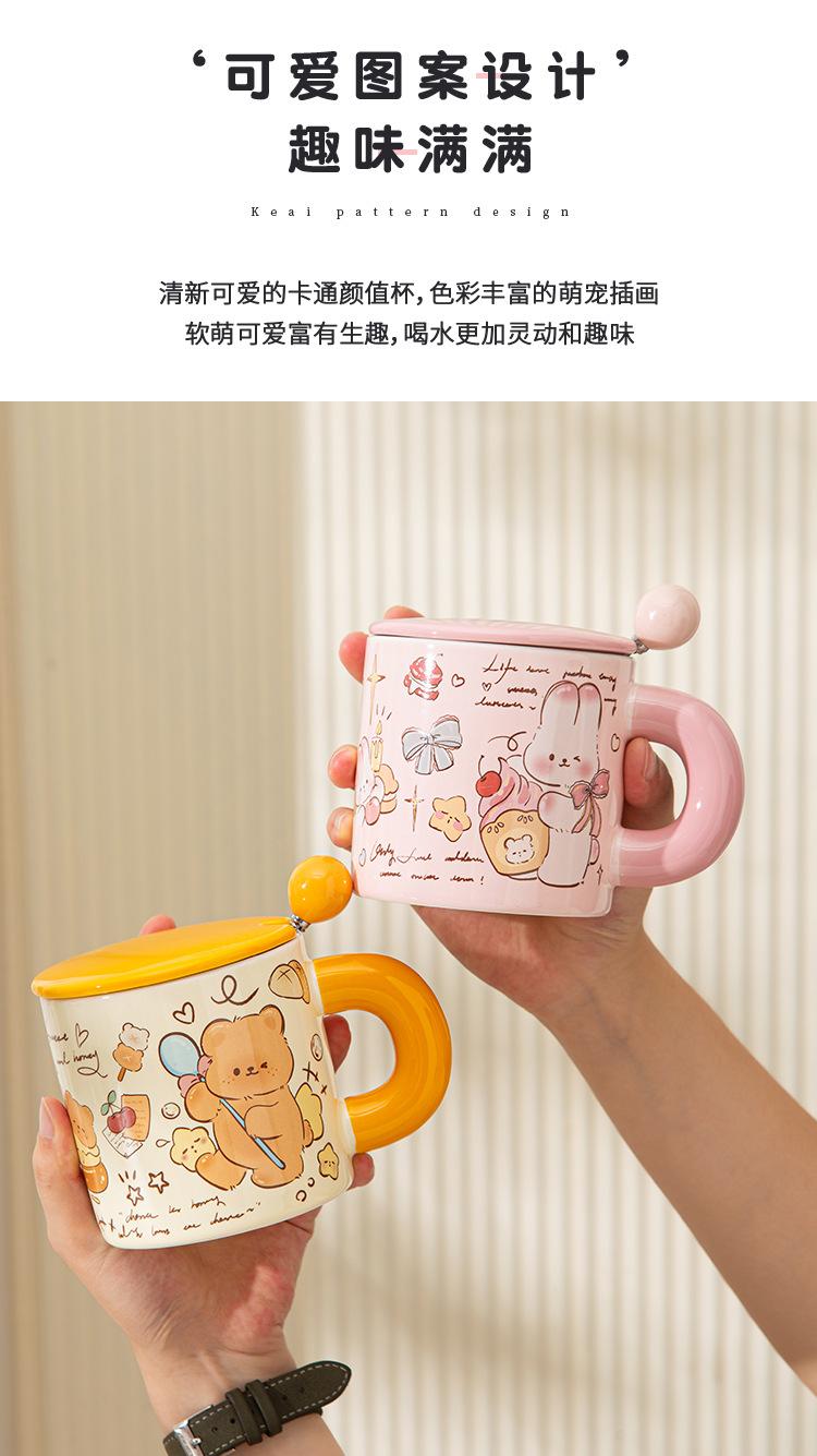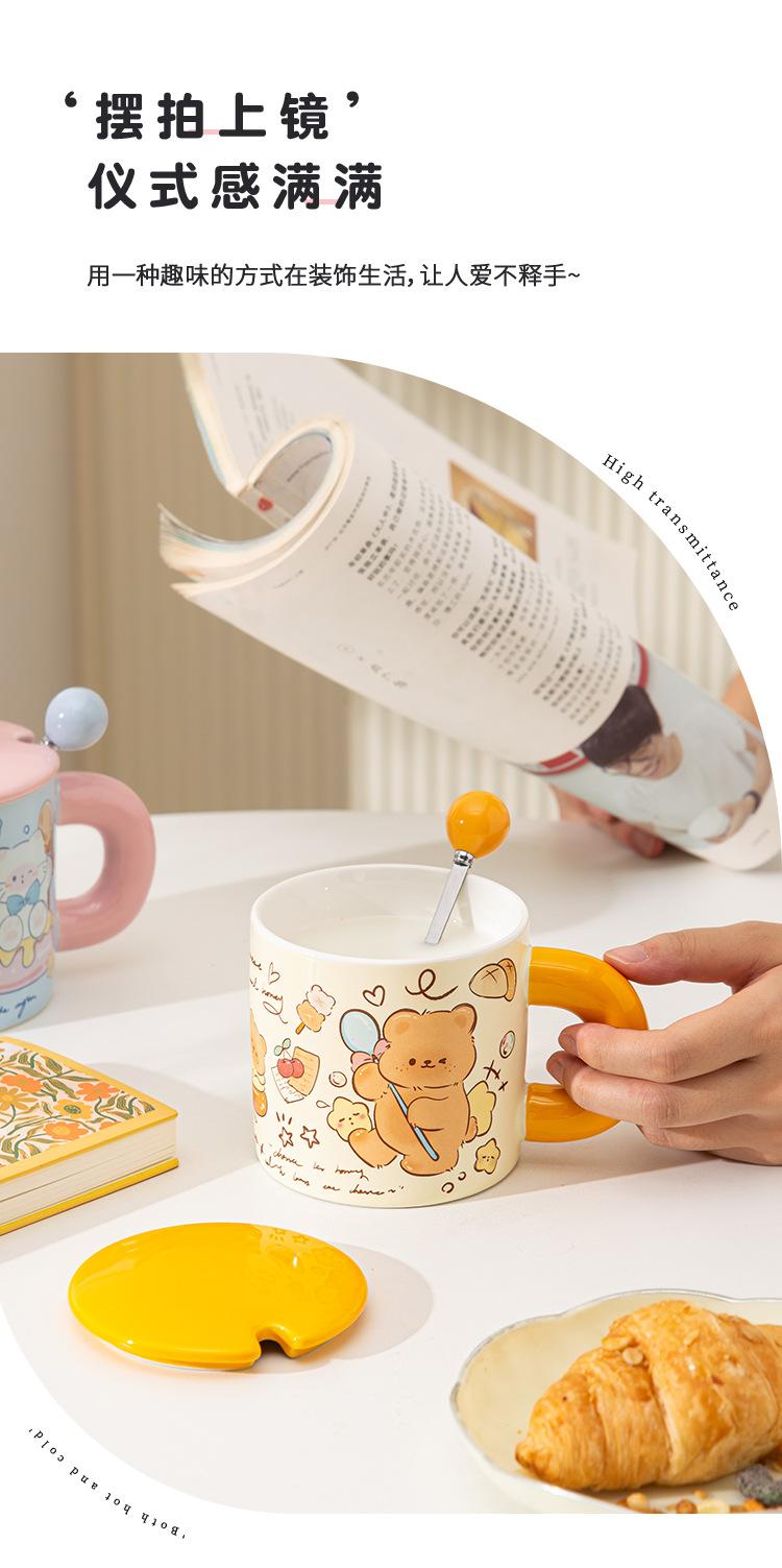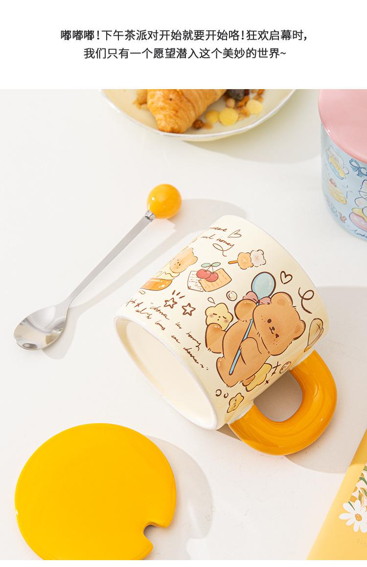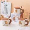 Taza de Cerámica Butter Bear con Tapa Taza para Pareja de Oficina Regalo de Cumpleaños Taza de Agua Linda para Niña para el Hogar