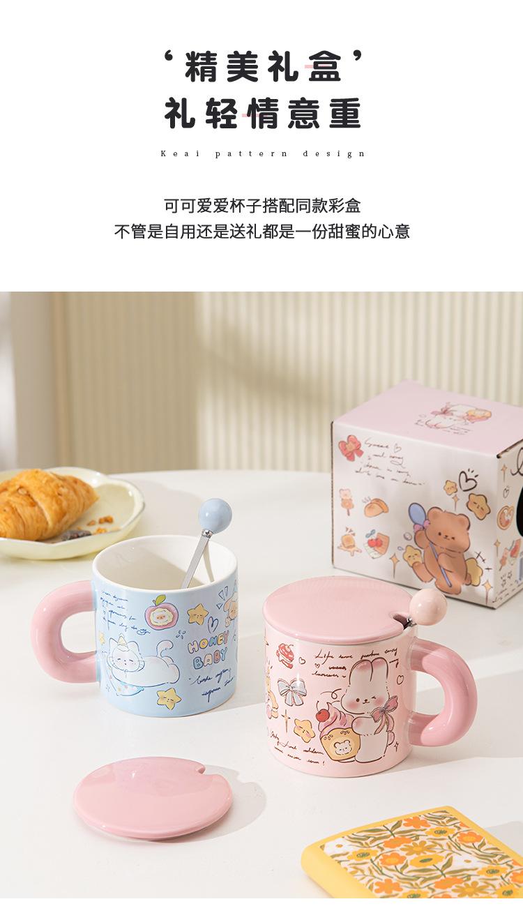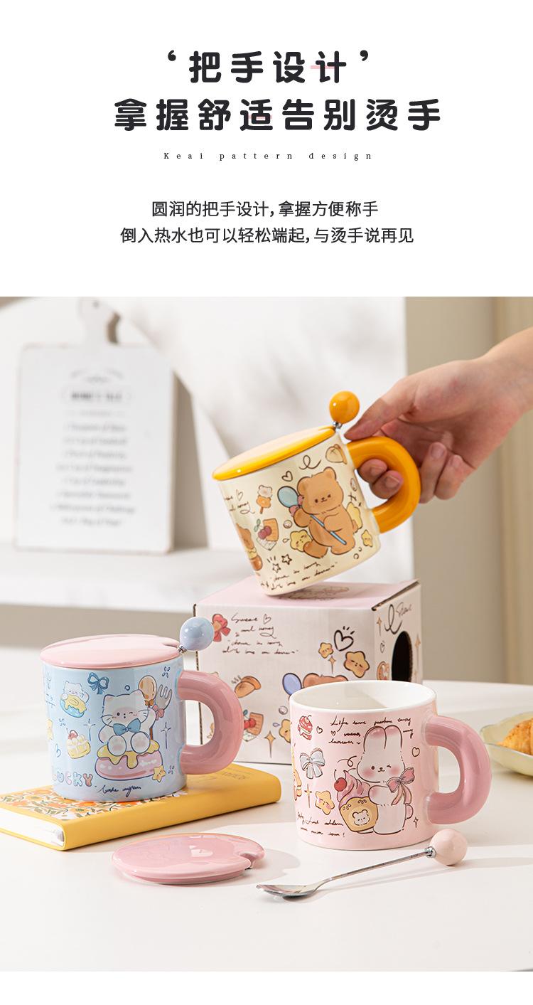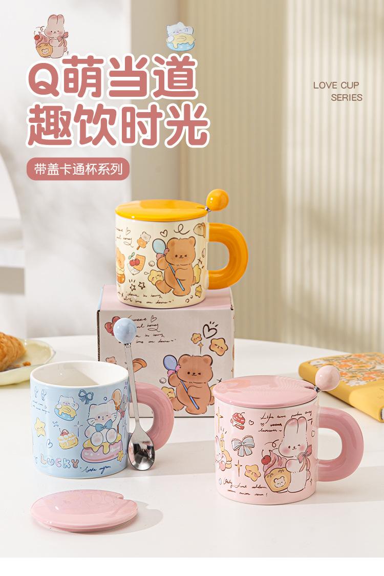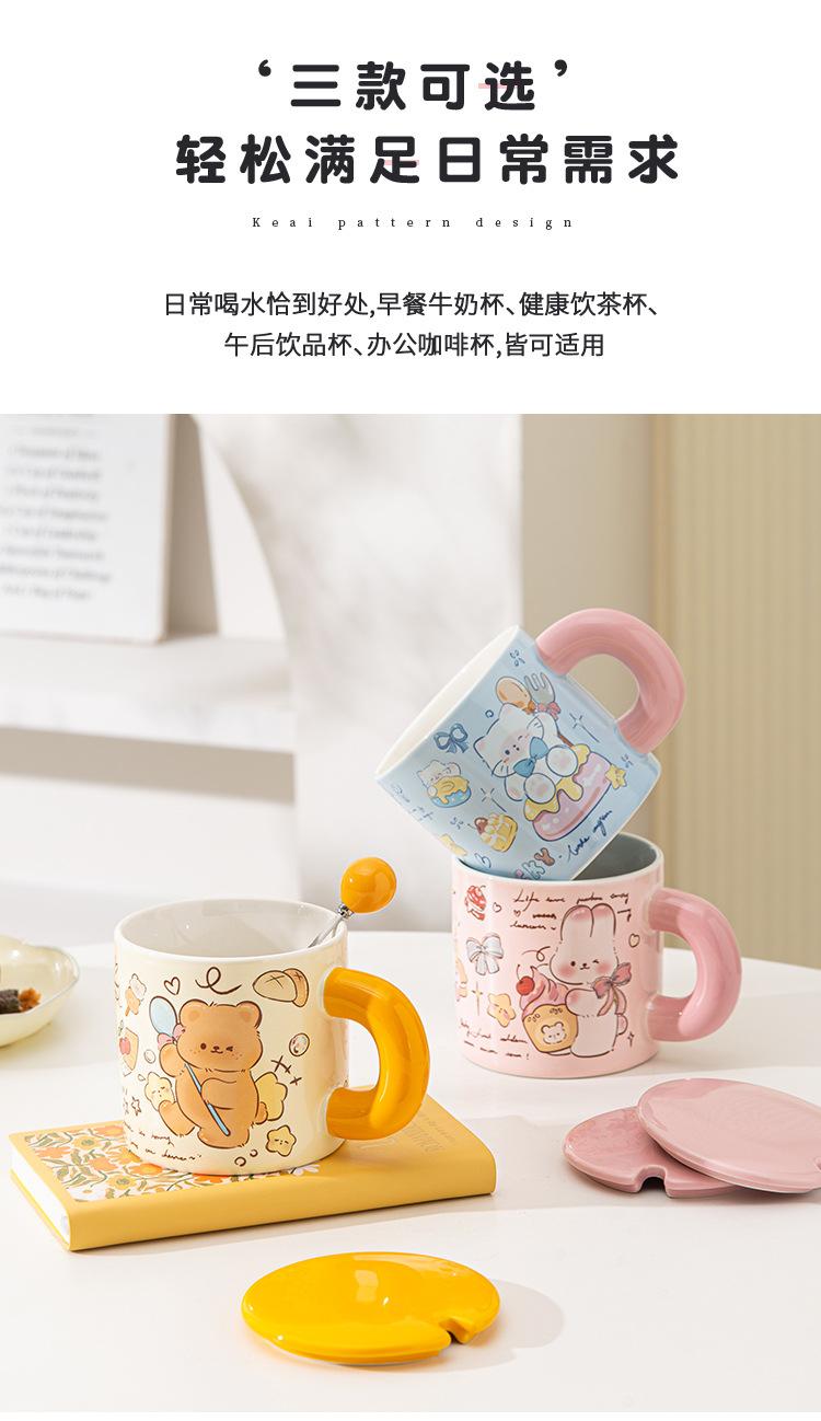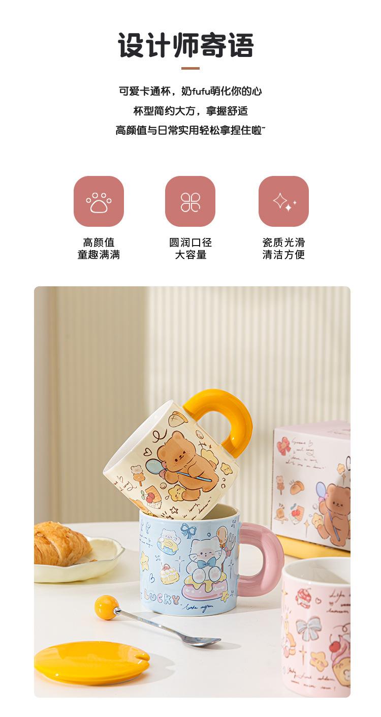 Taza de Cerámica Butter Bear con Tapa Taza para Pareja de Oficina Regalo de Cumpleaños Taza de Agua Linda para Niña para el Hogar