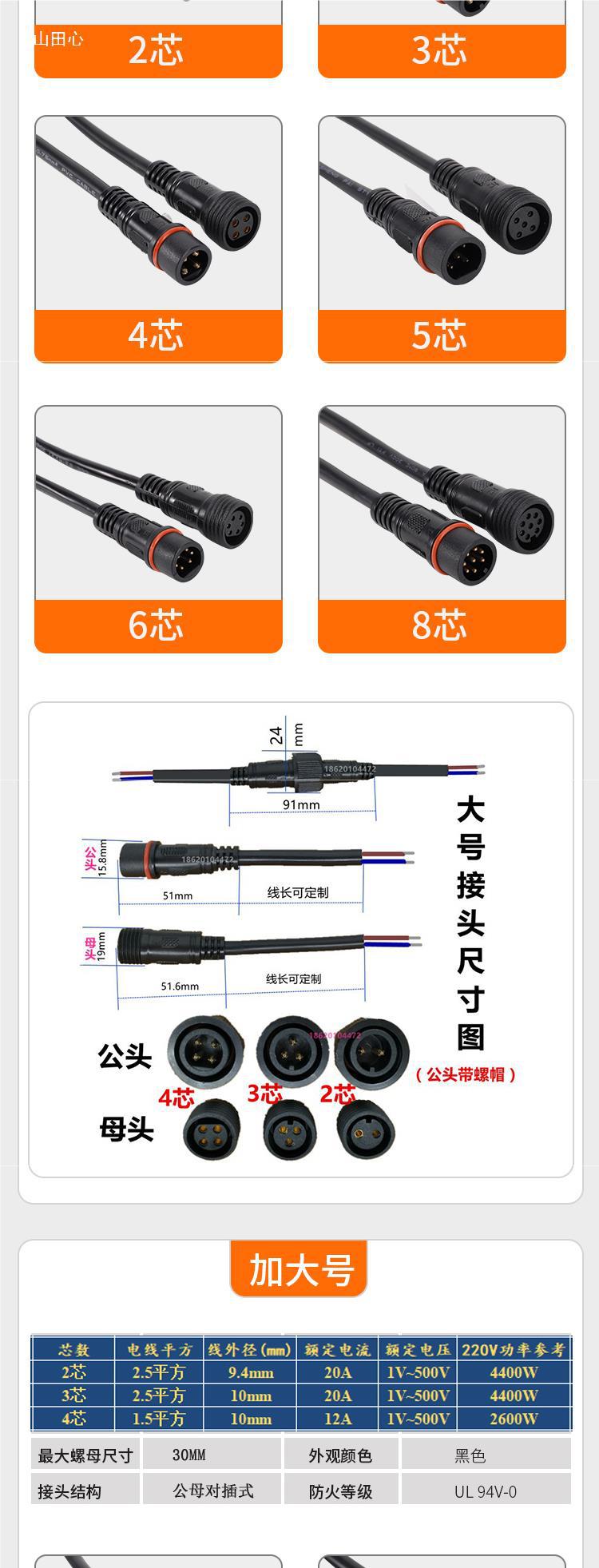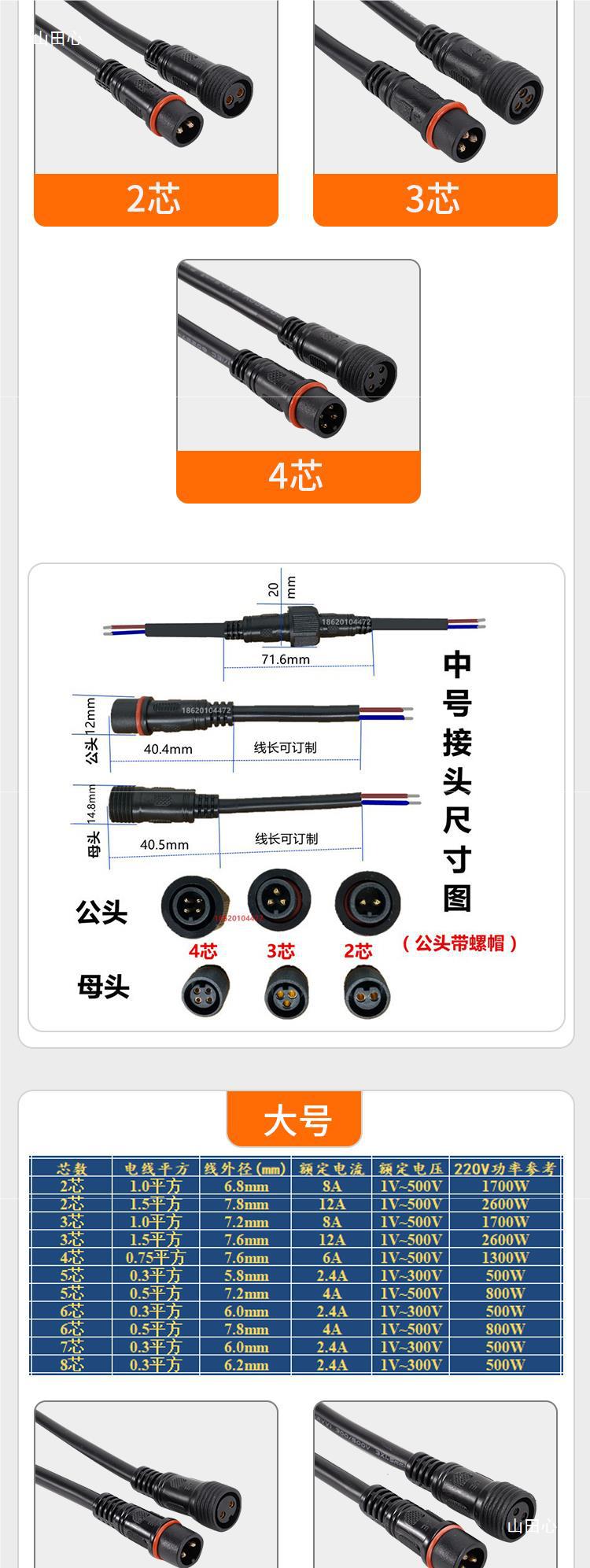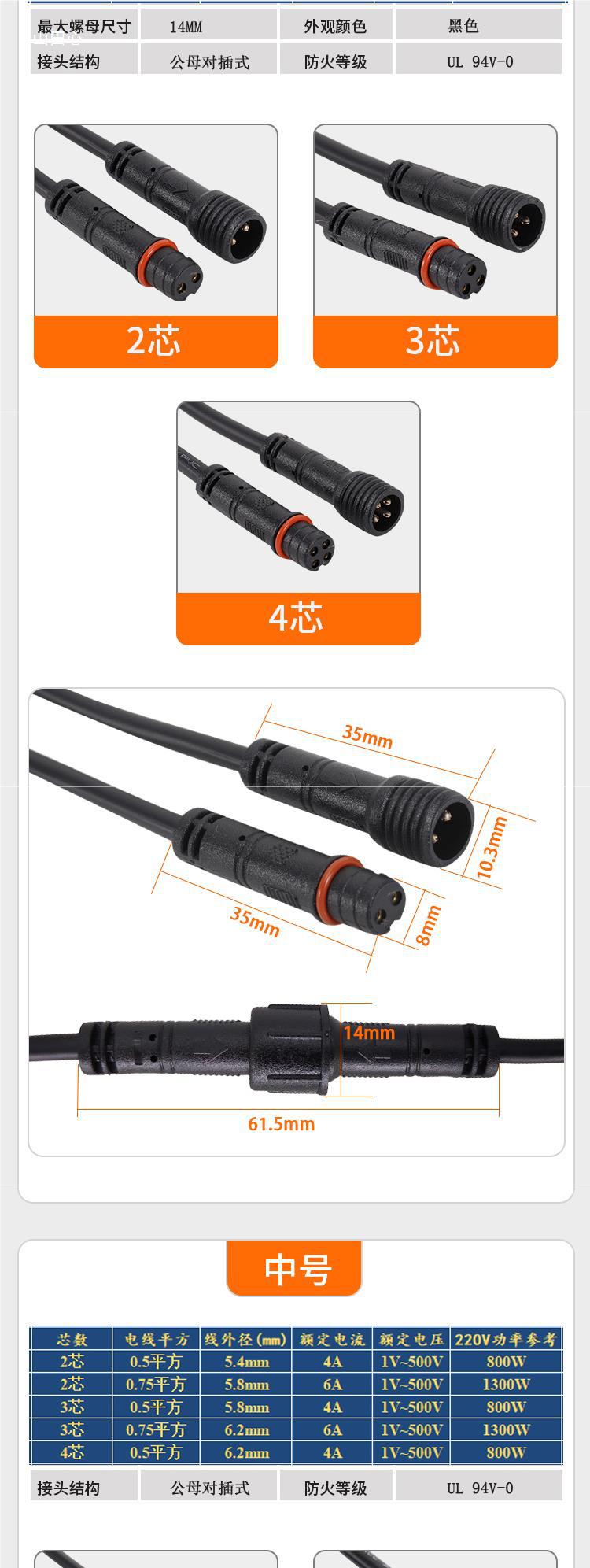 Cable conector macho y hembra línea de conexión industria de la aviación macho y hembra conector de cable de fuente de alimentación LED monitoreo escritorio agua
