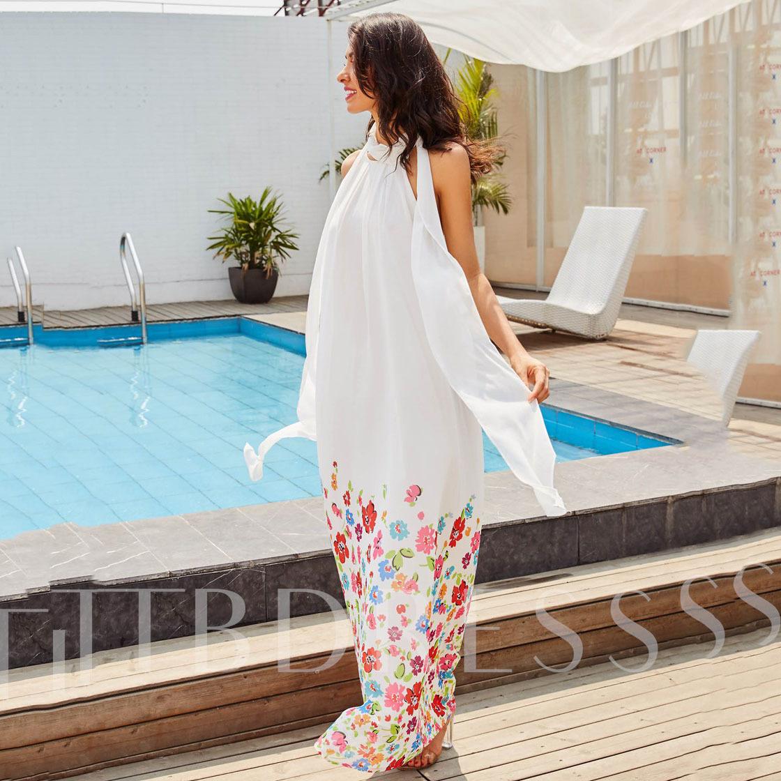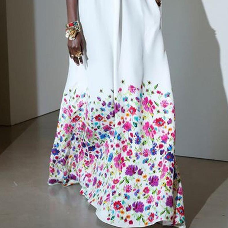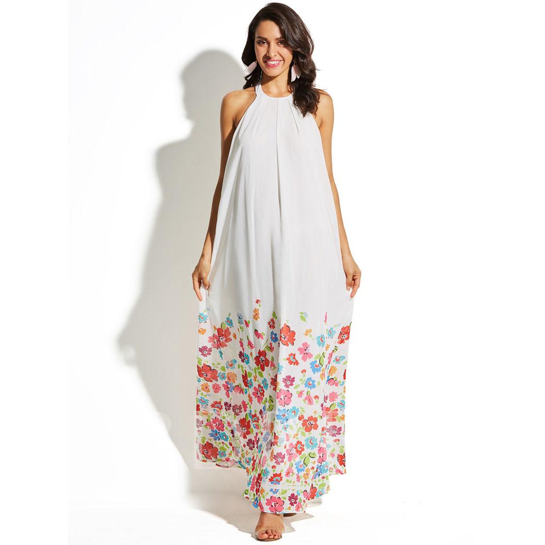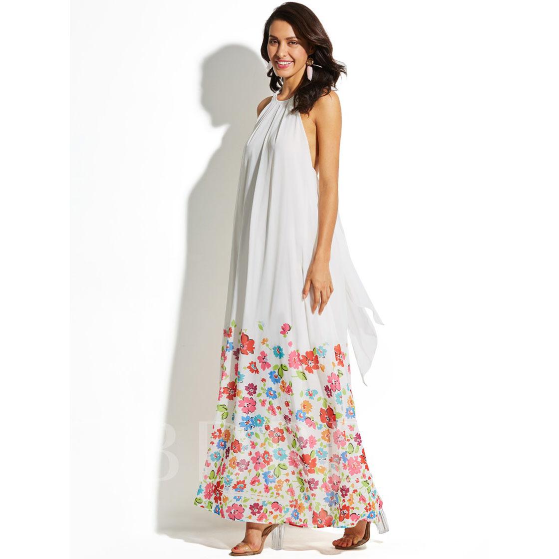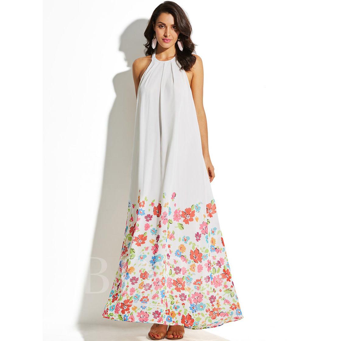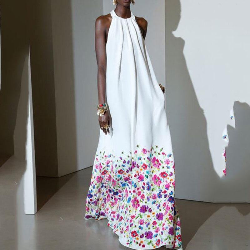 2025 Nuevo Ebay Amazon Europeo y Americano Estampado Sin Mangas Halter Sexy Swing Plisado Vestido Vestido de Noche