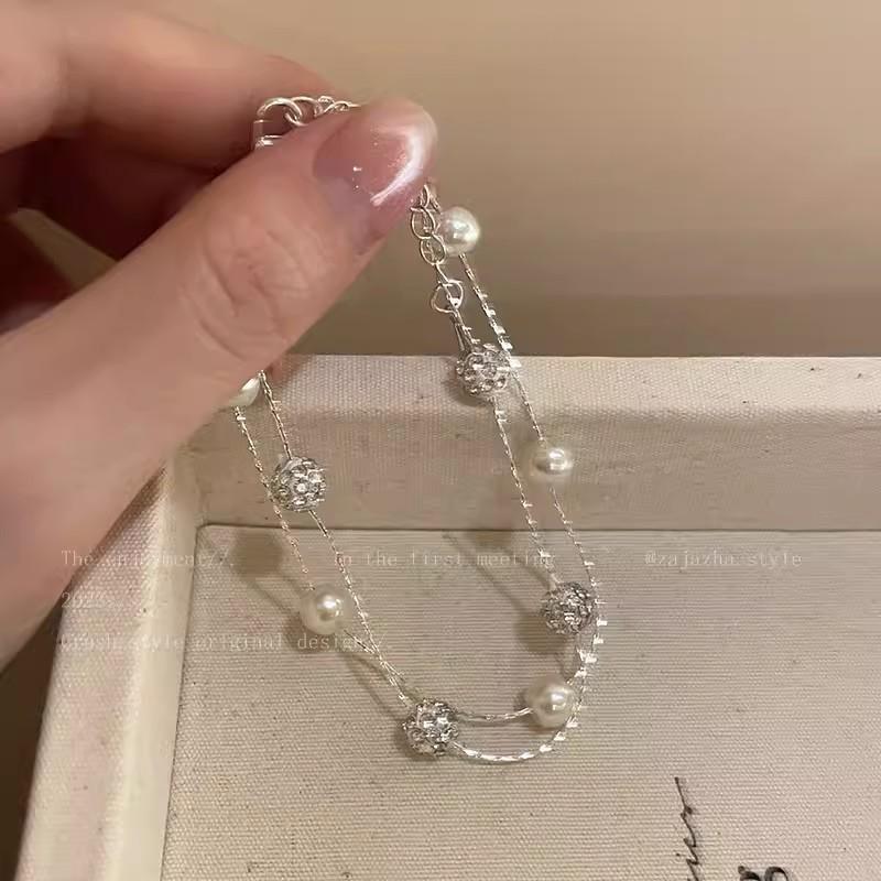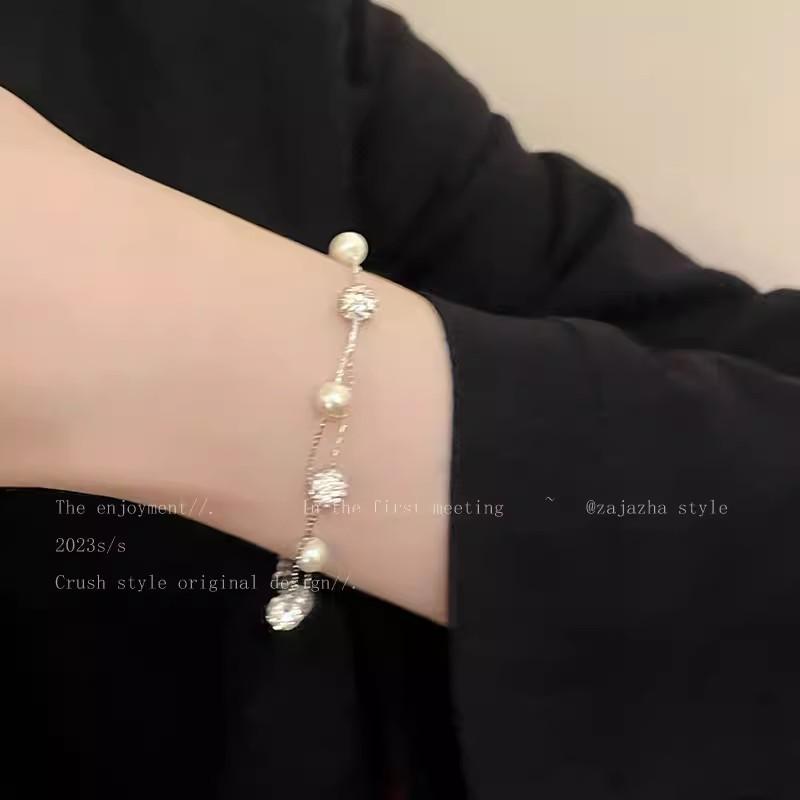 Pulsera de perlas de doble capa de gypsophila para niñas diseño de nicho de lujo ligero pulsera de alta gama otoño e invierno temperamento celebridad de internet joyería de mano