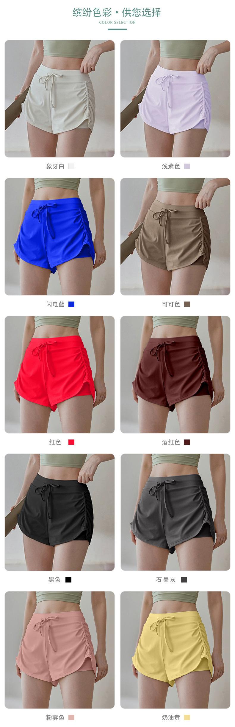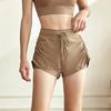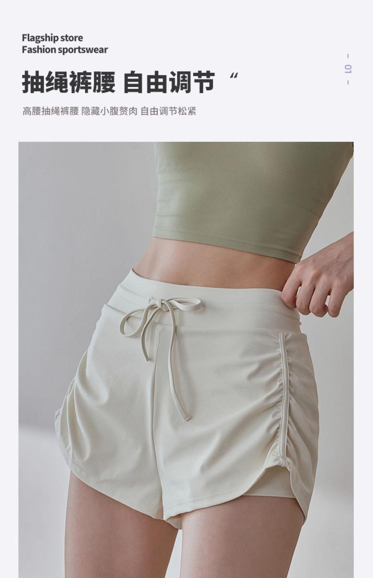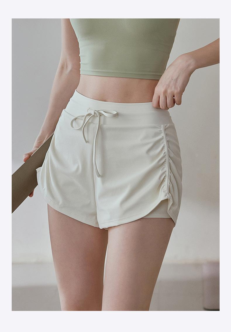 Shorts de Yoga Antiexposición para Mujer Verano Secado Rápido Cordón Lateral Plisado Pantalones Tres Puntos Running Deportes Fitness Pantalones de Yoga
