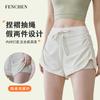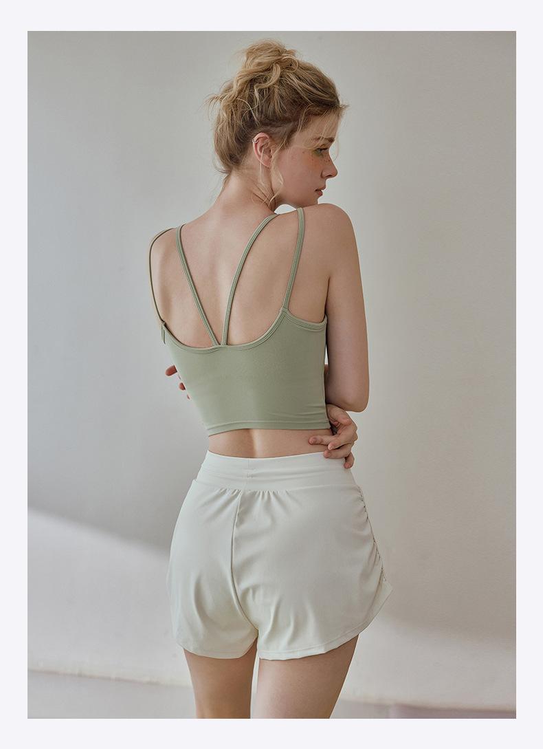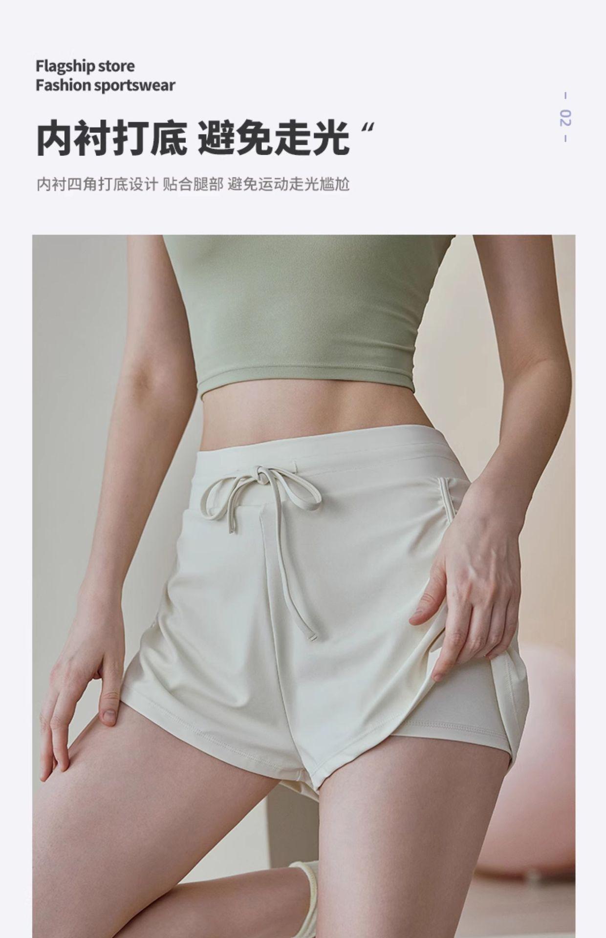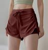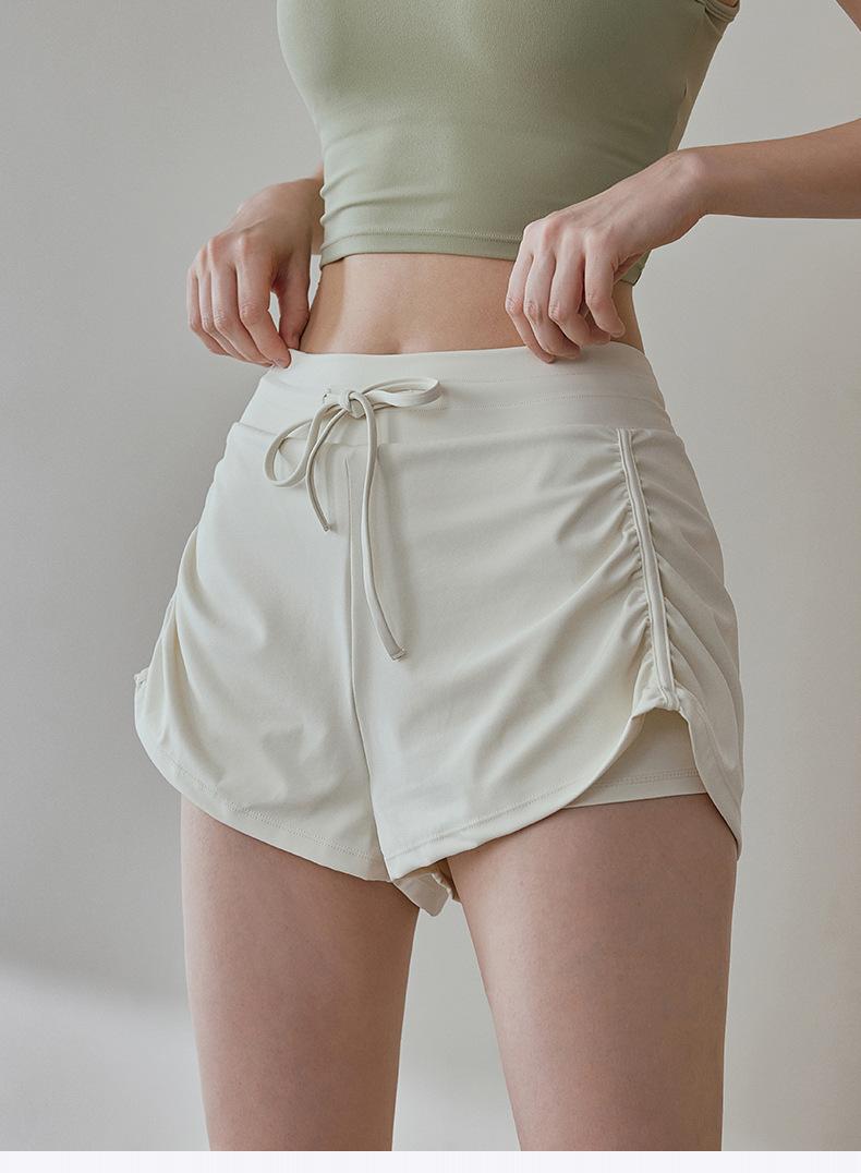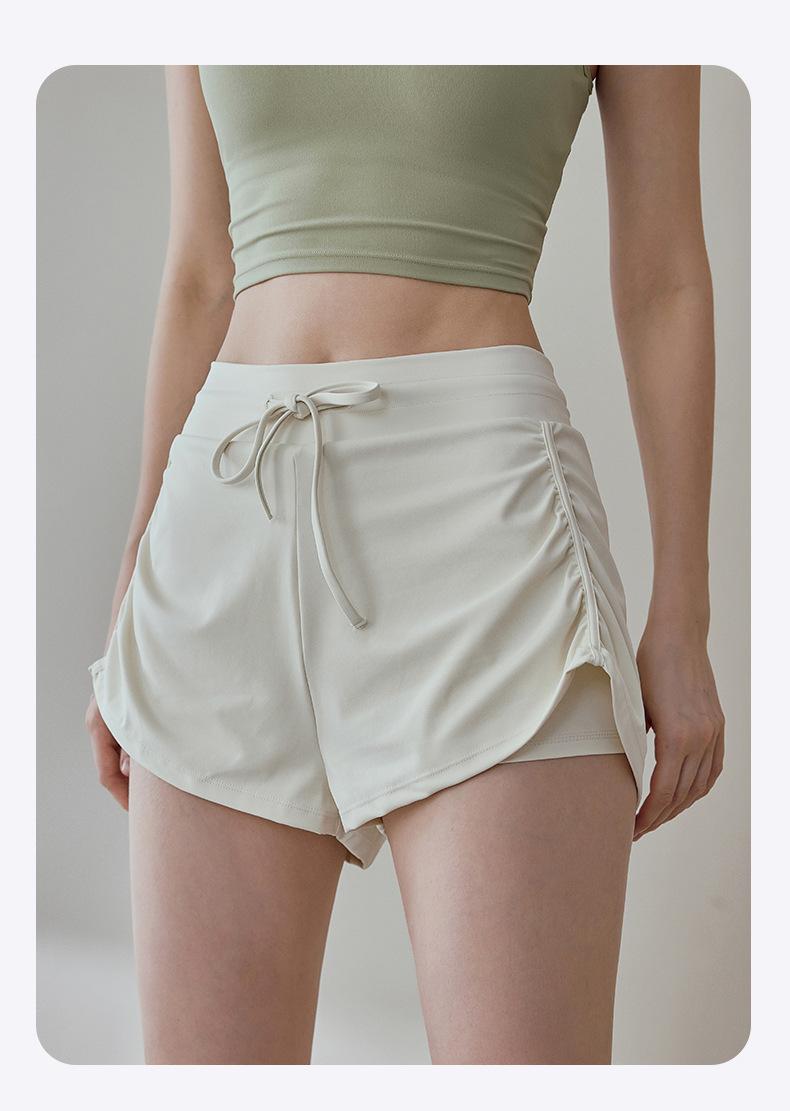 Shorts de Yoga Antiexposición para Mujer Verano Secado Rápido Cordón Lateral Plisado Pantalones Tres Puntos Running Deportes Fitness Pantalones de Yoga