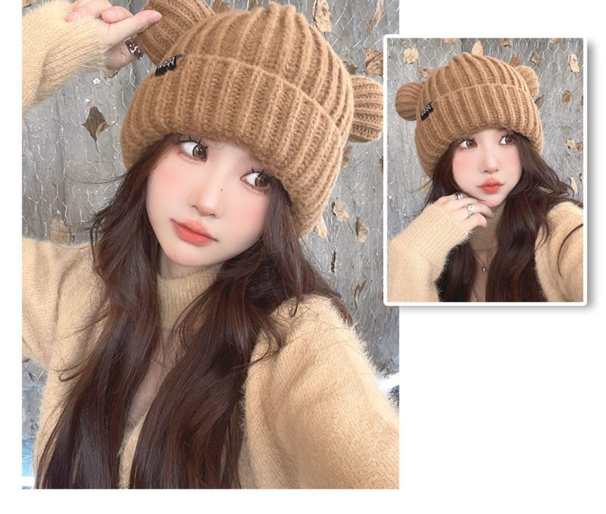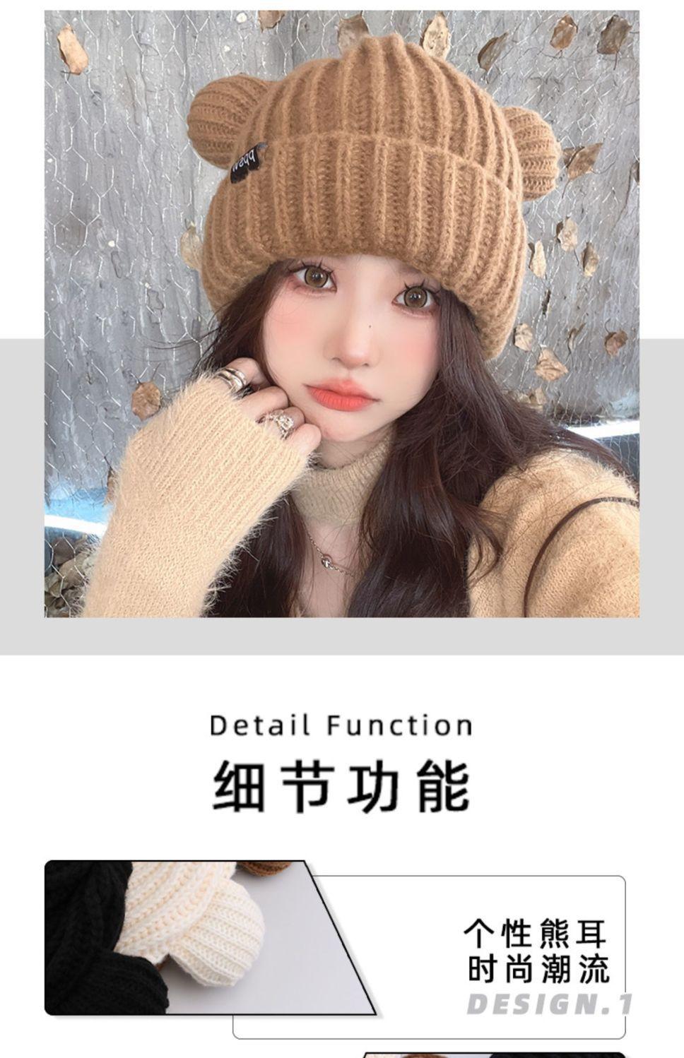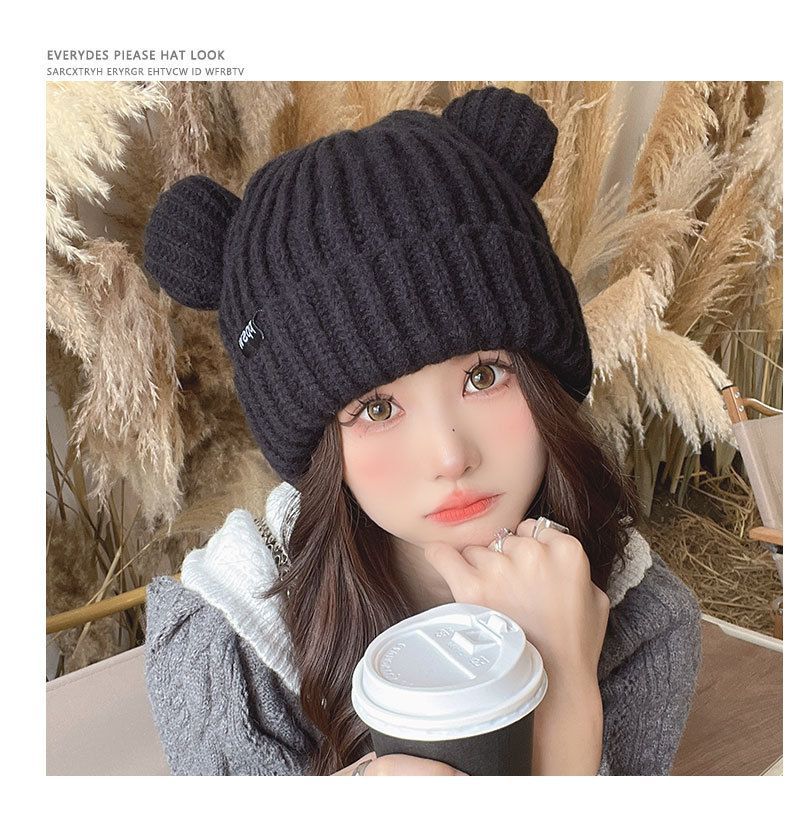 Nuevo Gorro de Punto para Mujer en Otoño e Invierno, Gorro Cálido y Grueso con Protección para las Orejas, Lindo Gorro de Lana Versátil Pequeño que Muestra el Rostro Estilo Coreano