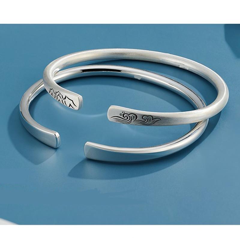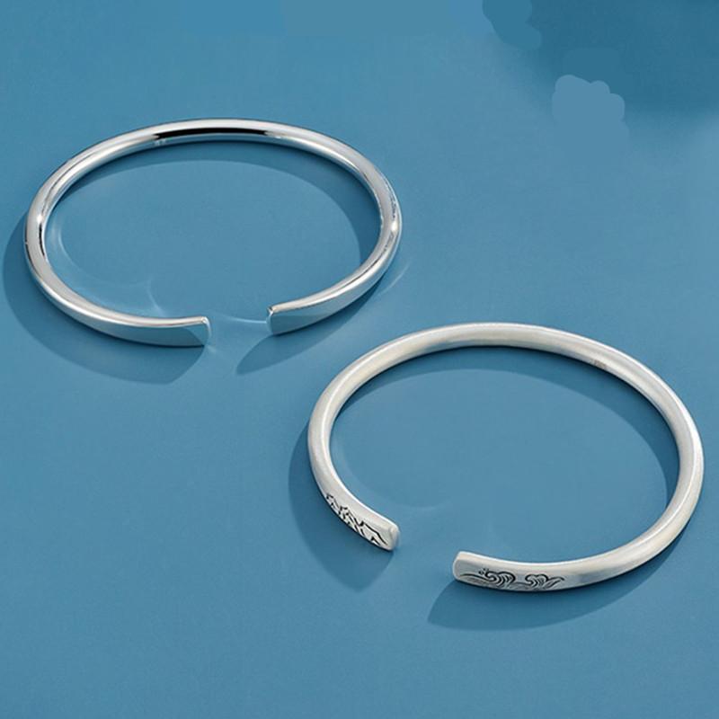 Pulsera Shanhai Mate Retro para Mujer Pulsera Plateada Brillante Pareja Joven Pulsera Simple Marea Nacional Regalo Fábrica Mayorista