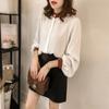 Camisa de manga larga estilo coreano, nueva versión coreana, holgada, de talla grande, con empalme de colores, para mujer, cuello elegante y a la moda.