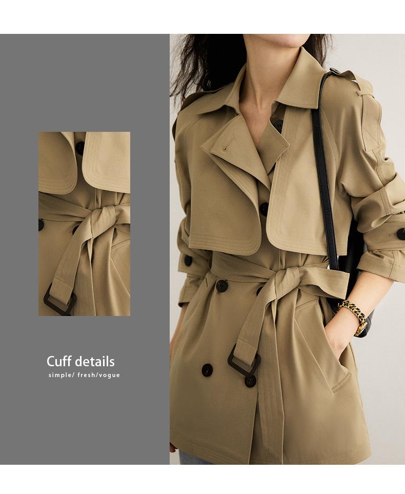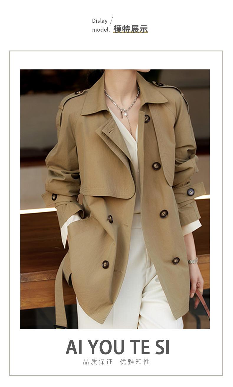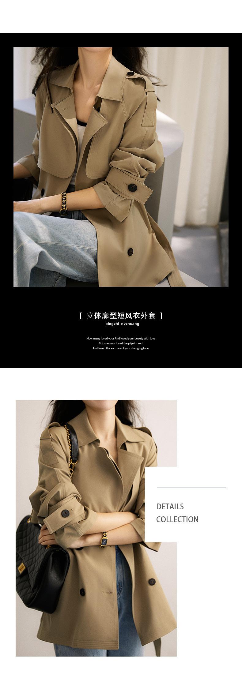 Abrigo Trench Corto Ligero Texturizado Silueta Tridimensional Chaqueta Delgada Caqui Primavera y Otoño para Mujer Estilo Británico Ropa de Otoño para Mujer