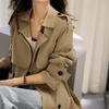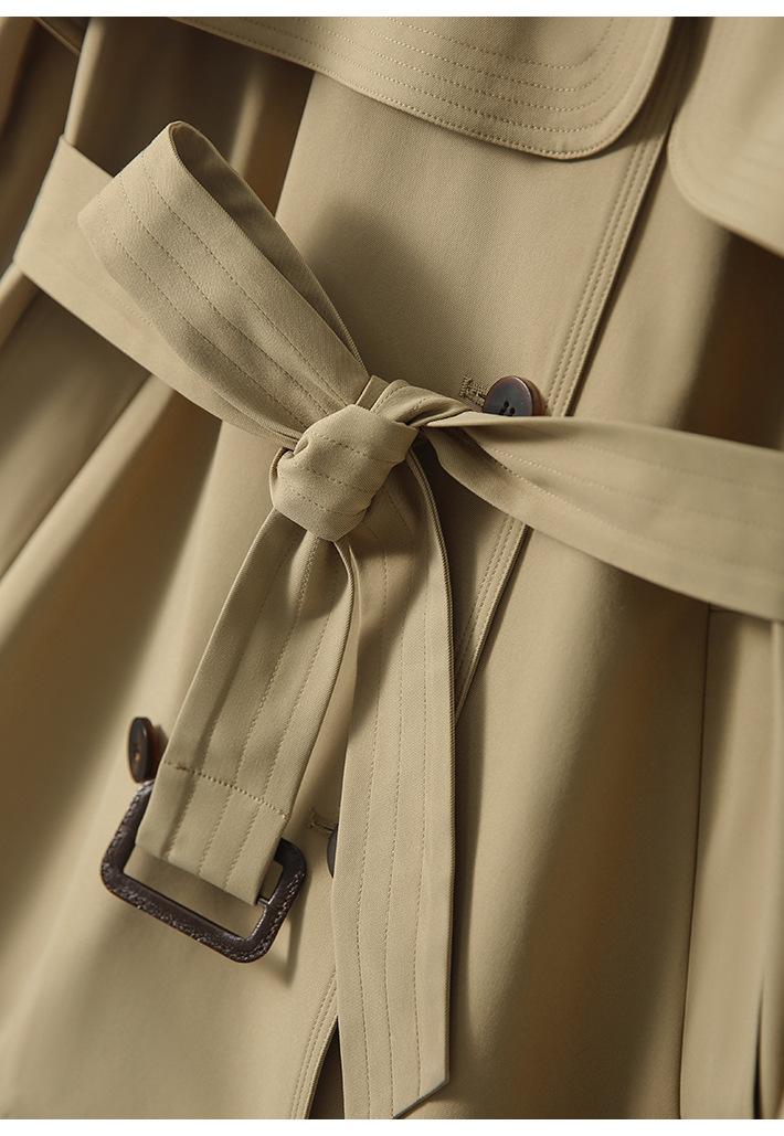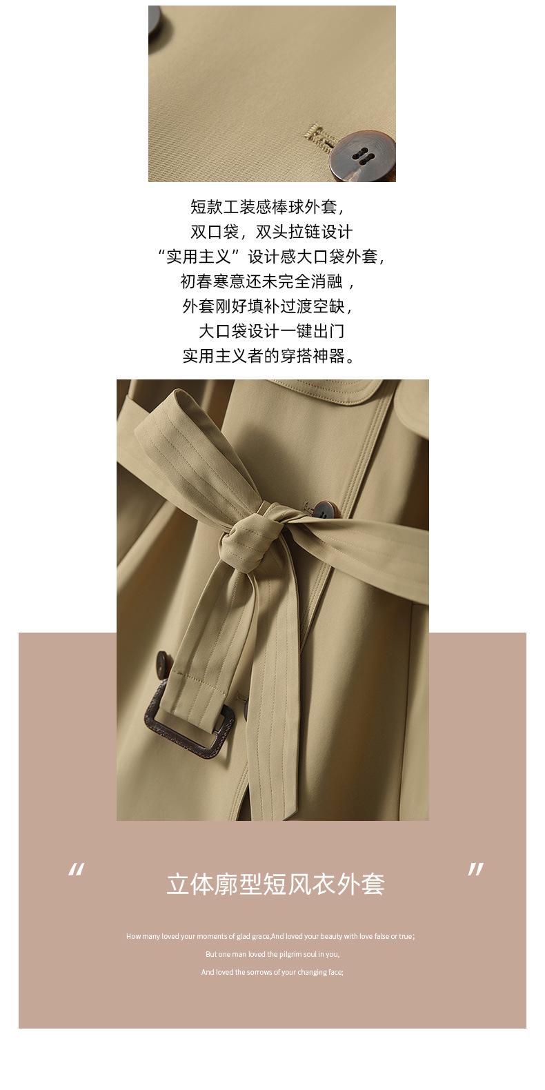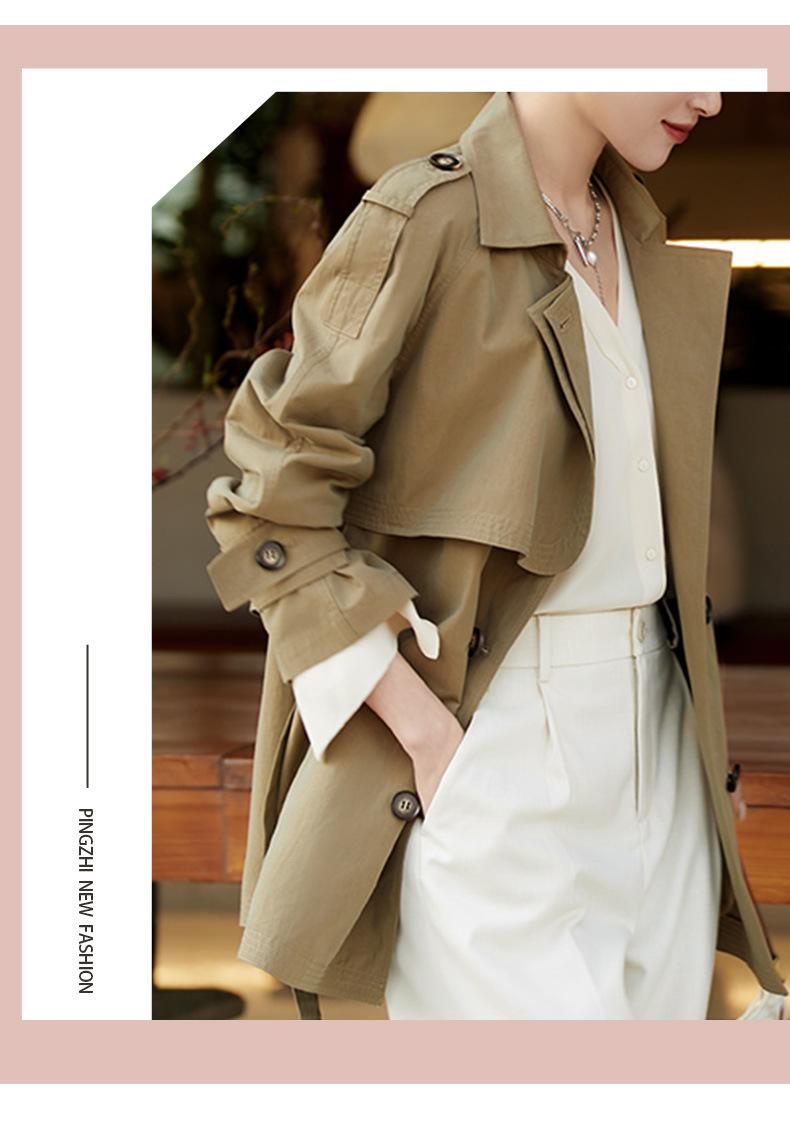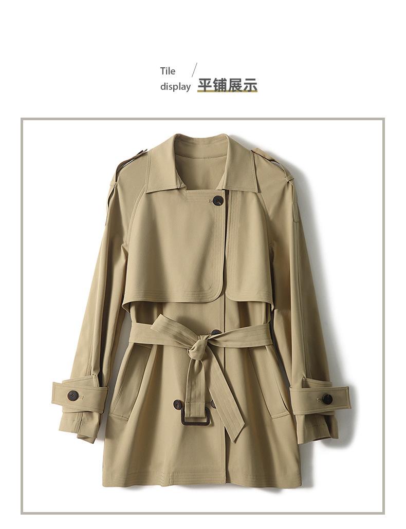 Abrigo Trench Corto Ligero Texturizado Silueta Tridimensional Chaqueta Delgada Caqui Primavera y Otoño para Mujer Estilo Británico Ropa de Otoño para Mujer