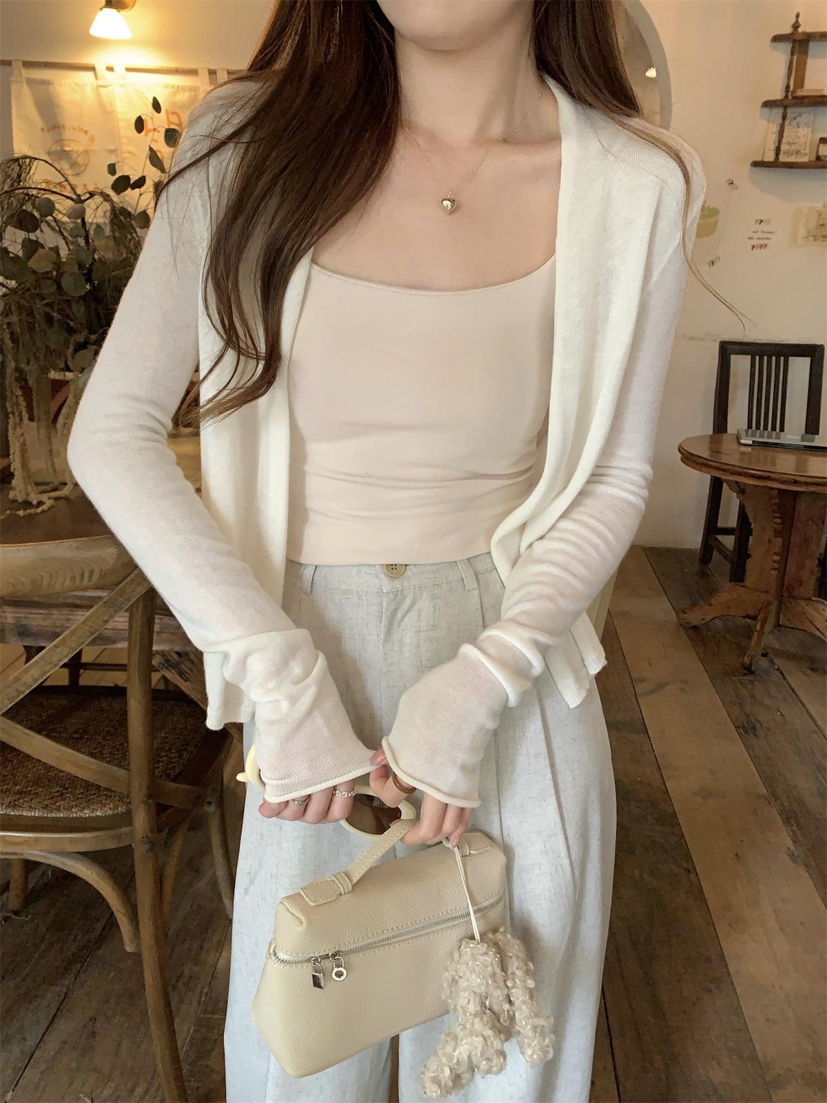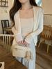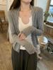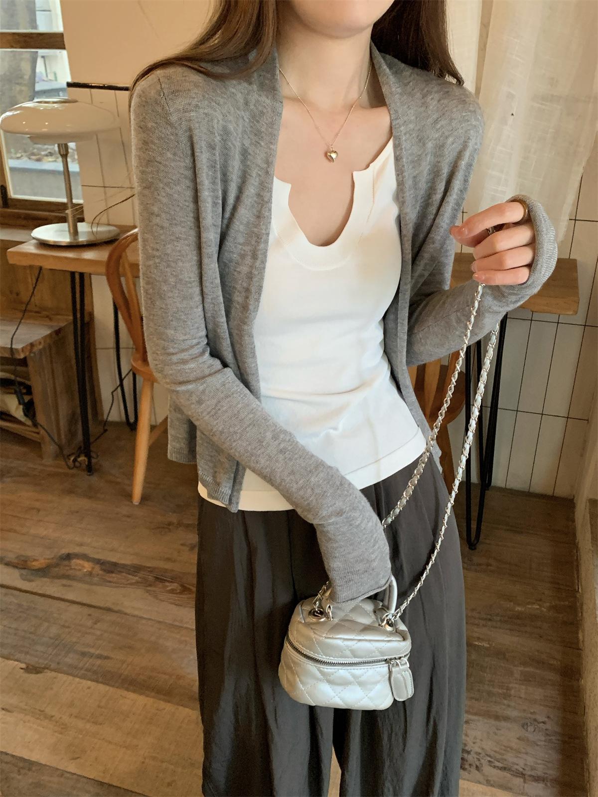 Cárdigan de Punto Ligero Americano 2025 Otoño Temprano Nuevo Estilo Coreano Color Puro 6 Lana con Top Chal para Mujer