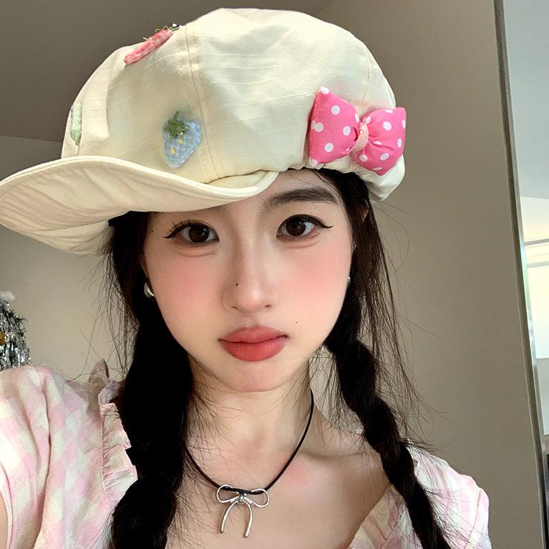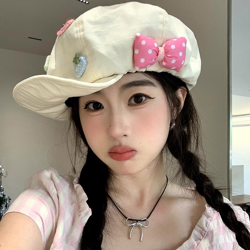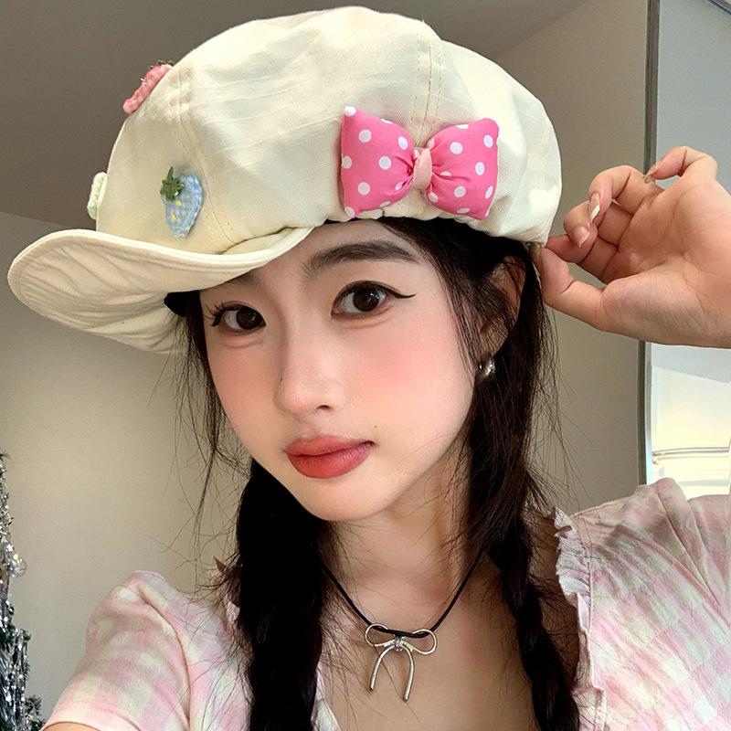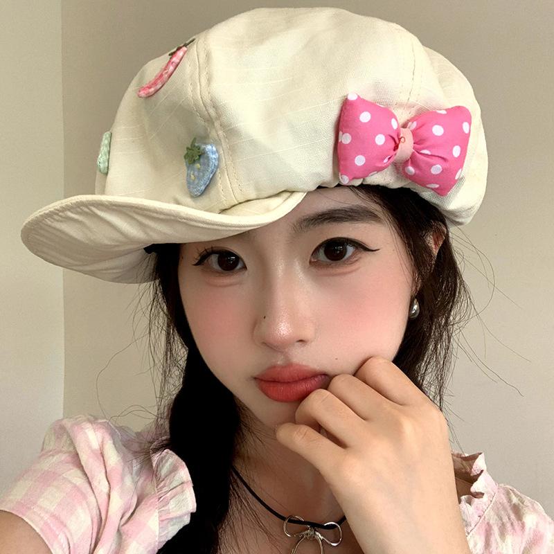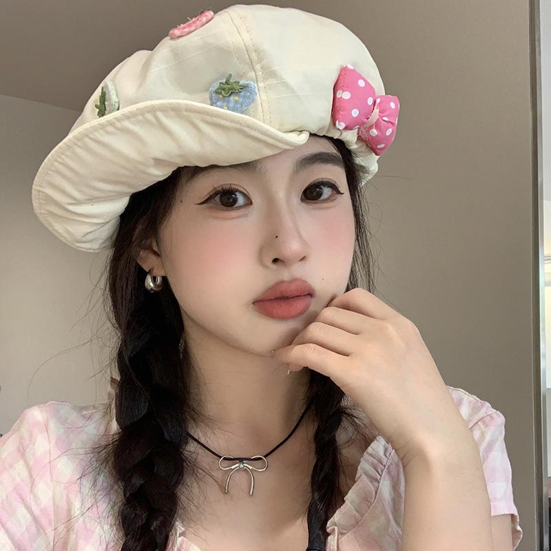 E-655 beige button cloud hat, E-655 Black Button Cloud Hat, E-658 Strawberry Forward Beret, E-661 Black Flower...