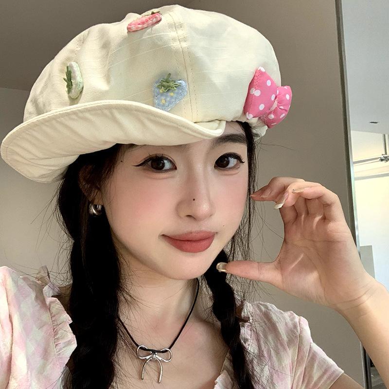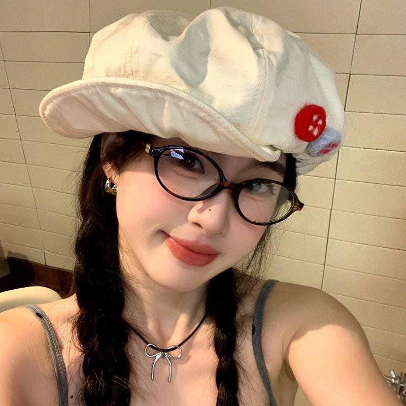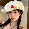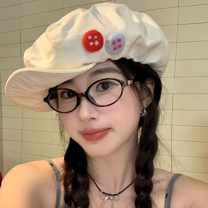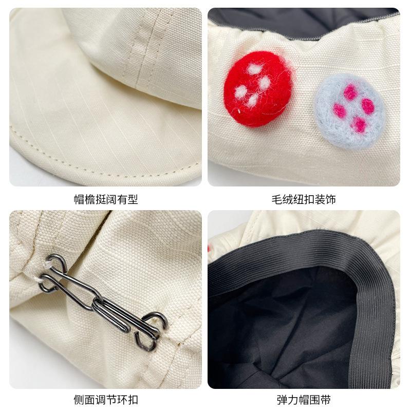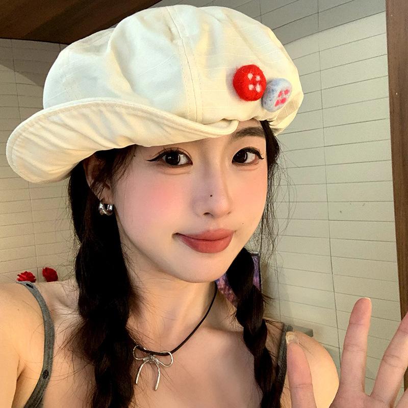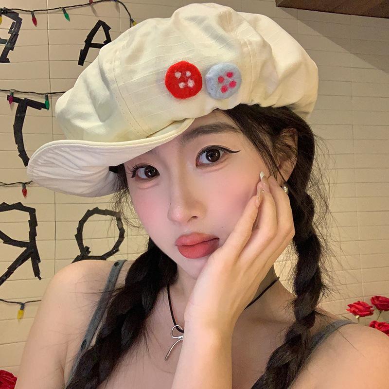Un sombrero de cinco piezas, estilo retro japonés de algodón y lino, con forma de nube octogonal y botones de colores veraniegos hacia adelante, boina pequeña