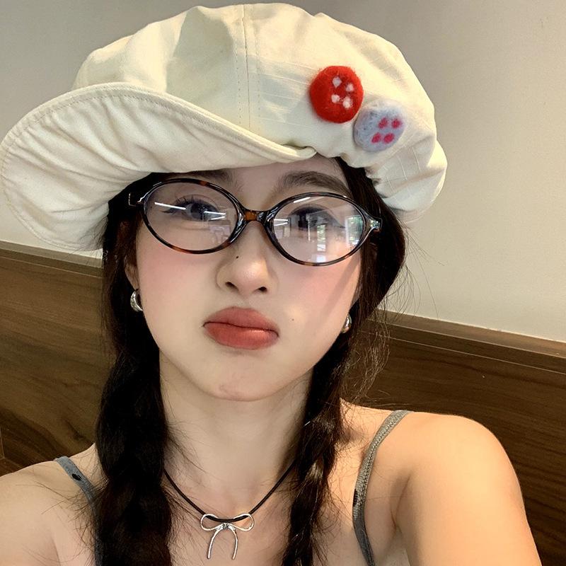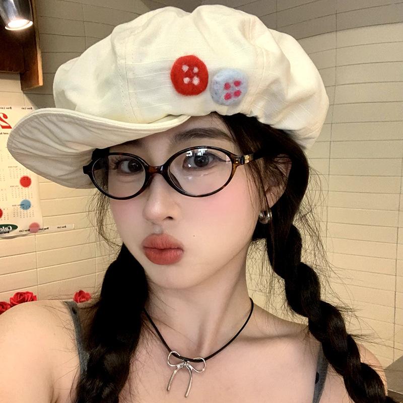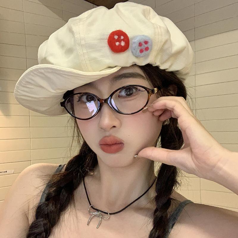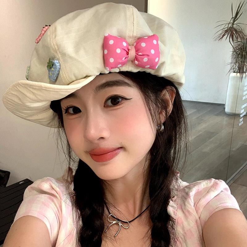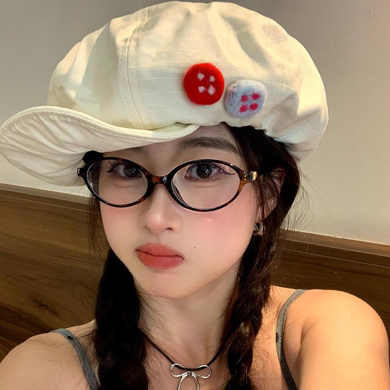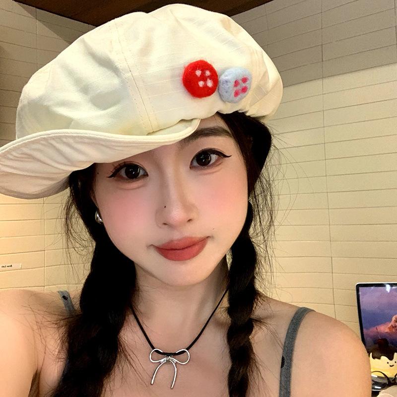Un sombrero de cinco piezas, estilo retro japonés de algodón y lino, con forma de nube octogonal y botones de colores veraniegos hacia adelante, boina pequeña