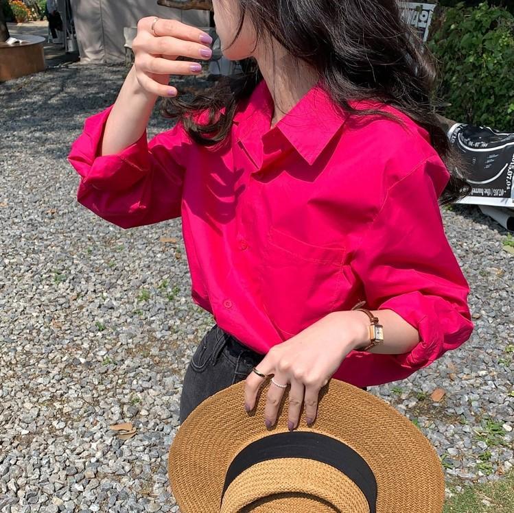 Camisa roja rosa para mujer, primavera 2024, nueva, madura, hermana real, camisa de protección solar, abrigo fino