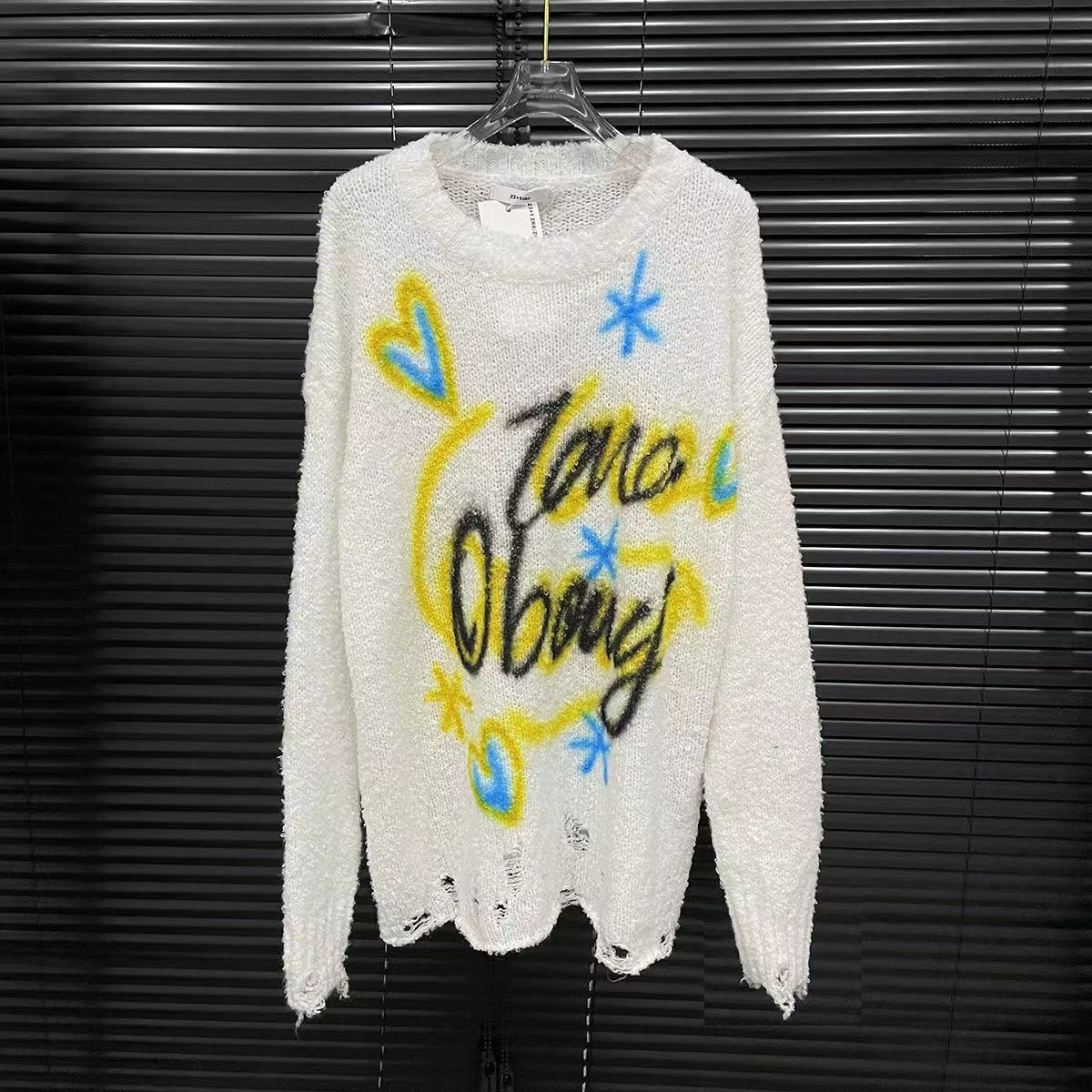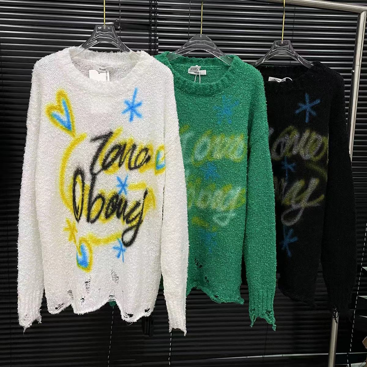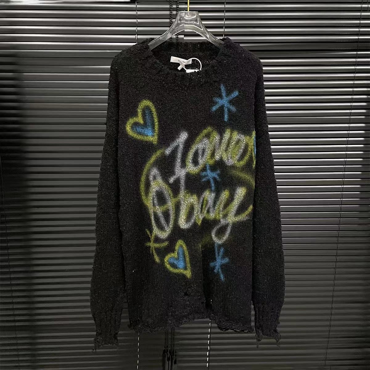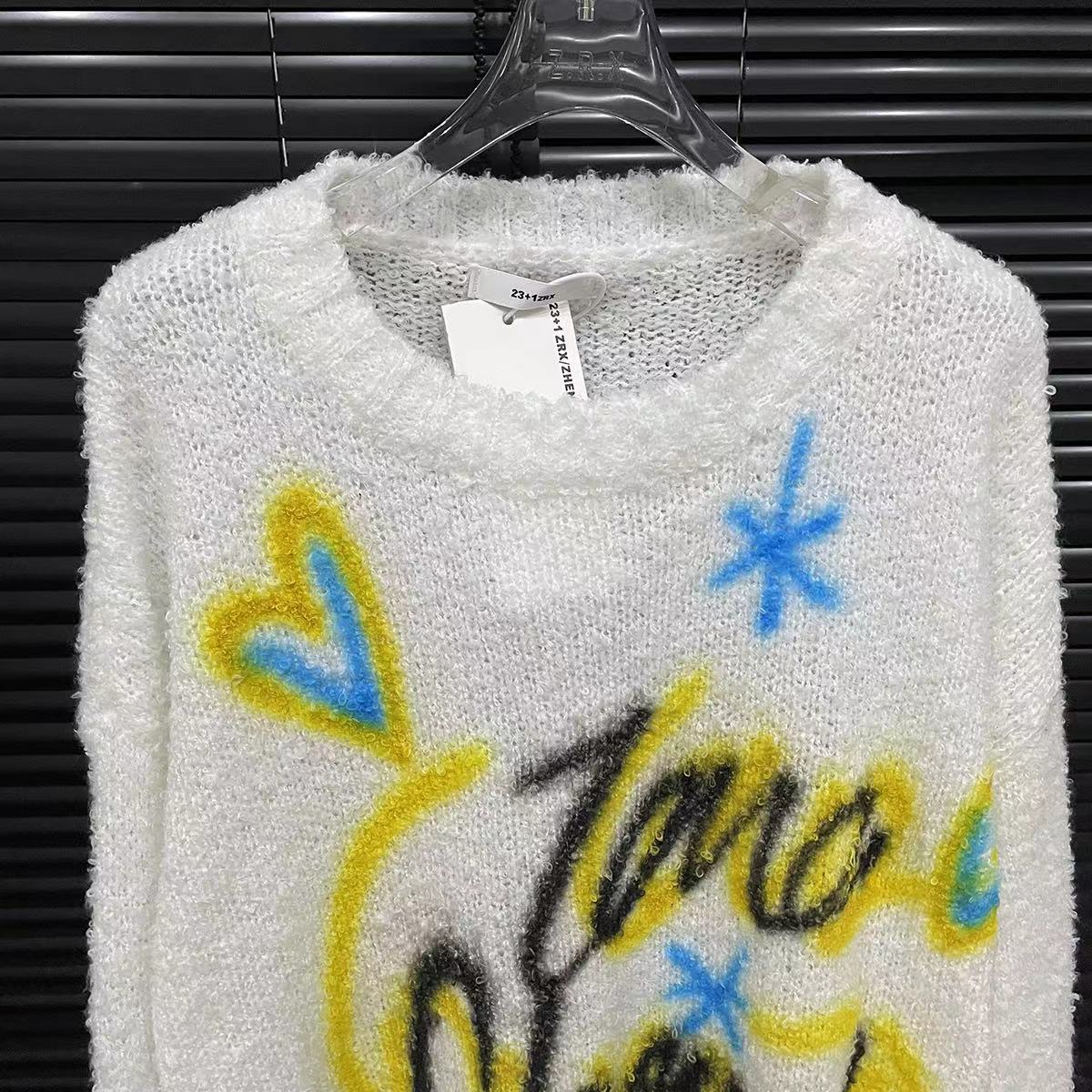 Suéter con estampado de letras de colores para mujer, estilo americano, retro, holgado, con cuello redondo, otoño 2024