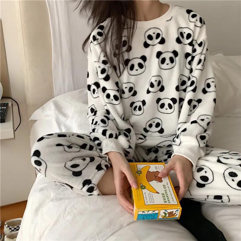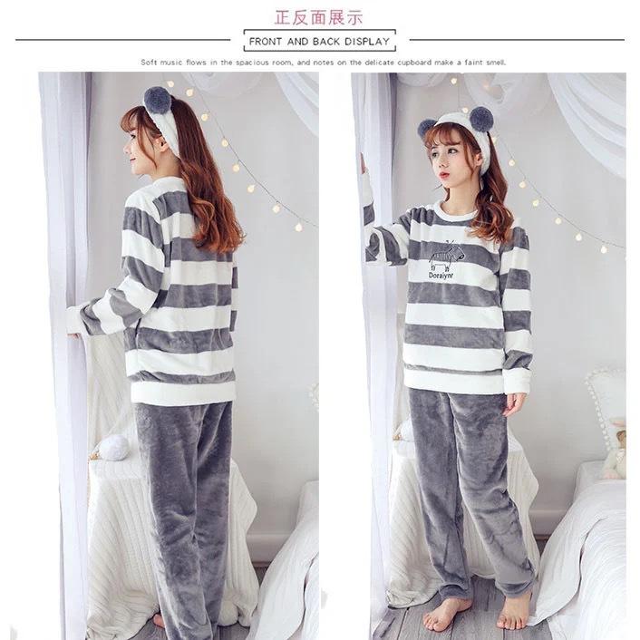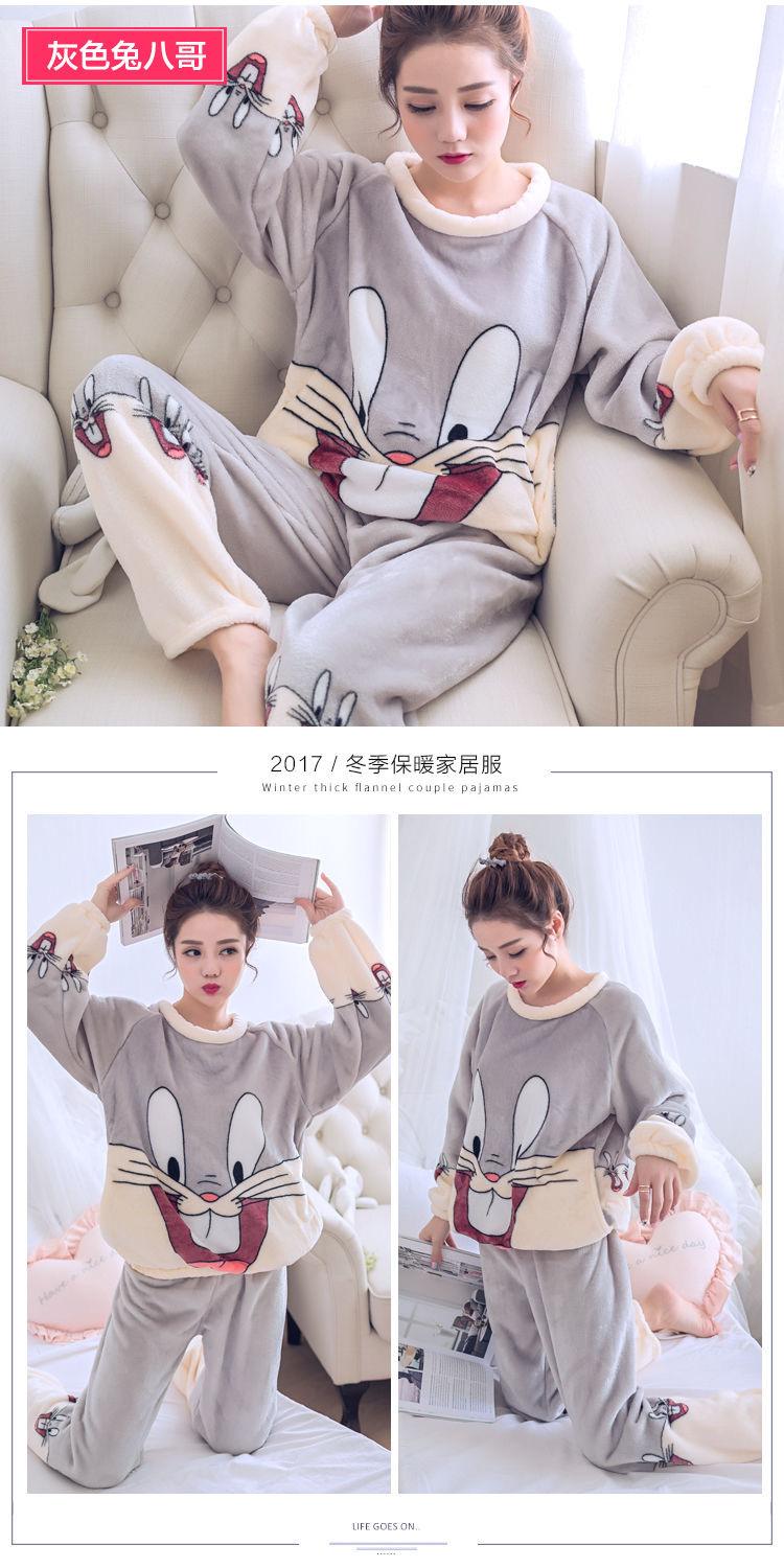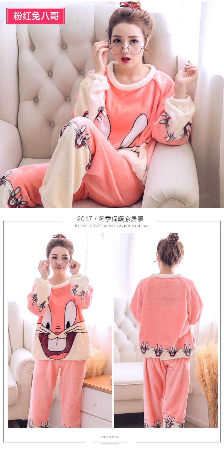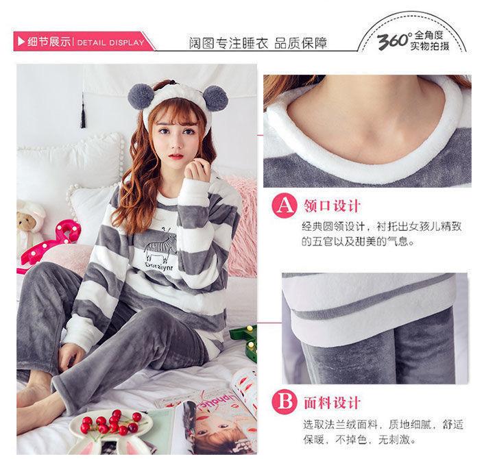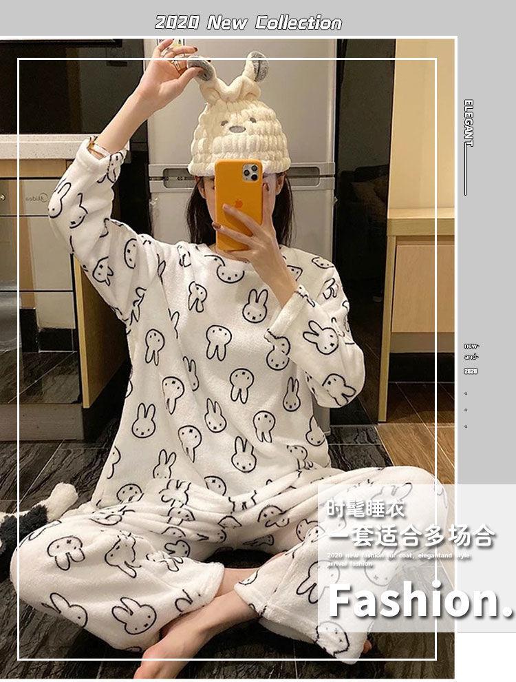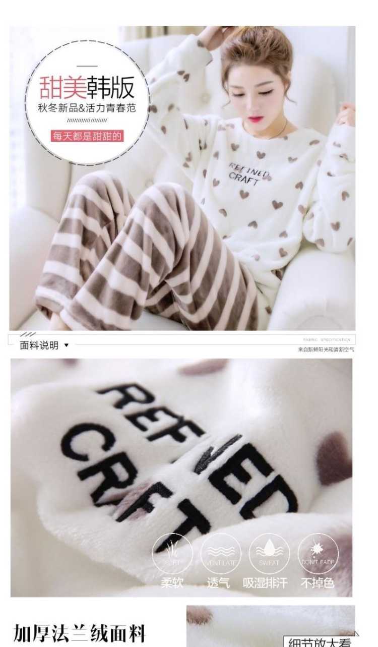 Pijama de Vellón Coral para Mujer Invierno Cálido Grueso con Forro Polar Lindo Franela Otoño e Invierno Manga Larga Ropa para el Hogar Traje de Mujer