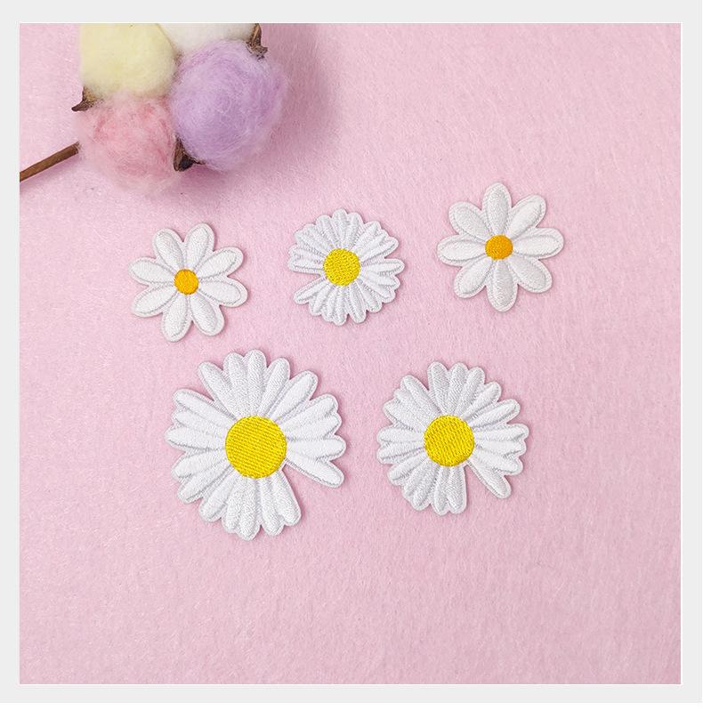 Parche Bordado de Margarita Blanca Decoración de Bolsa de Camiseta DIY Parche de Tela Autoadhesivo Flor Parche para Ropa Bordado