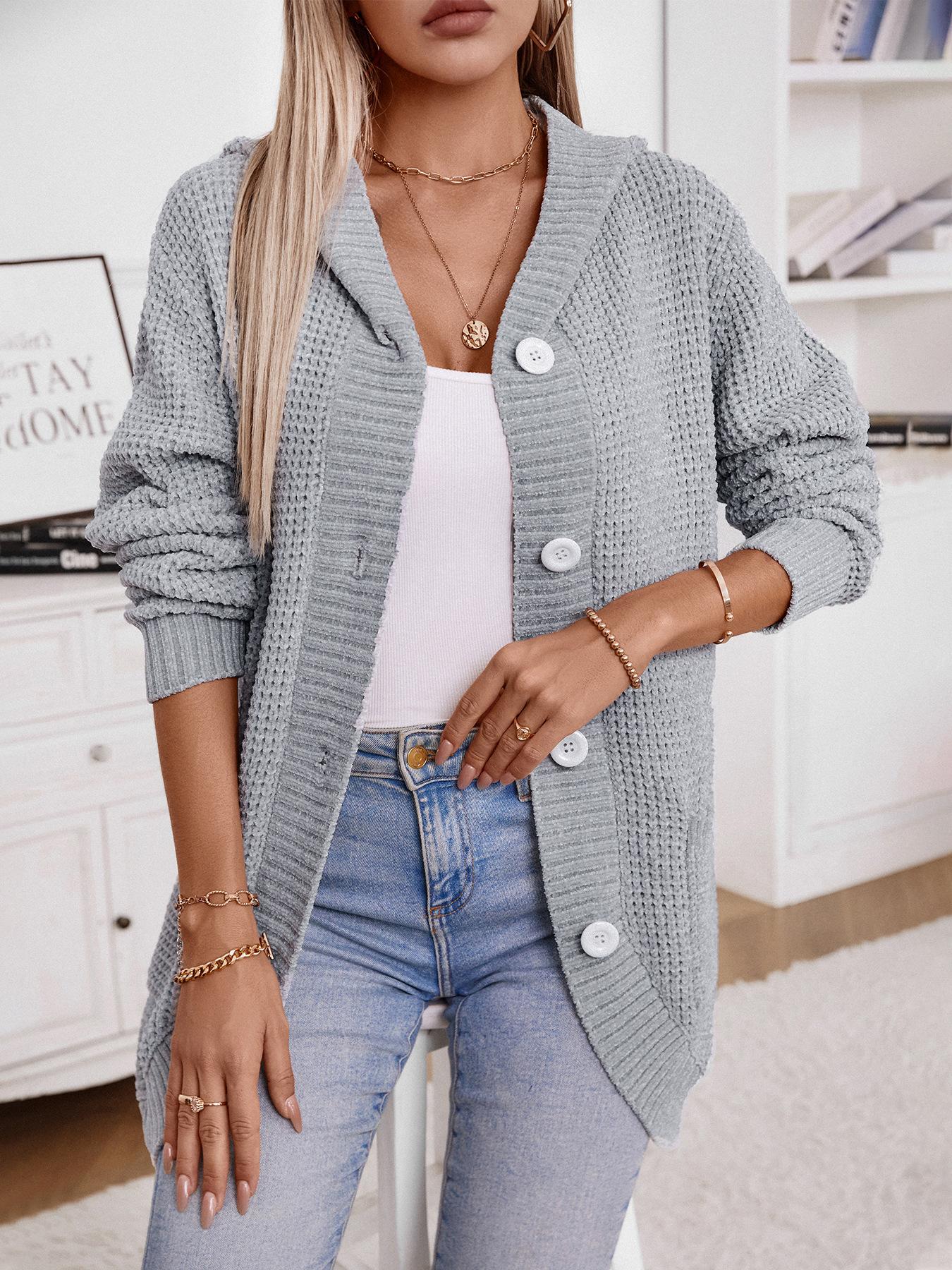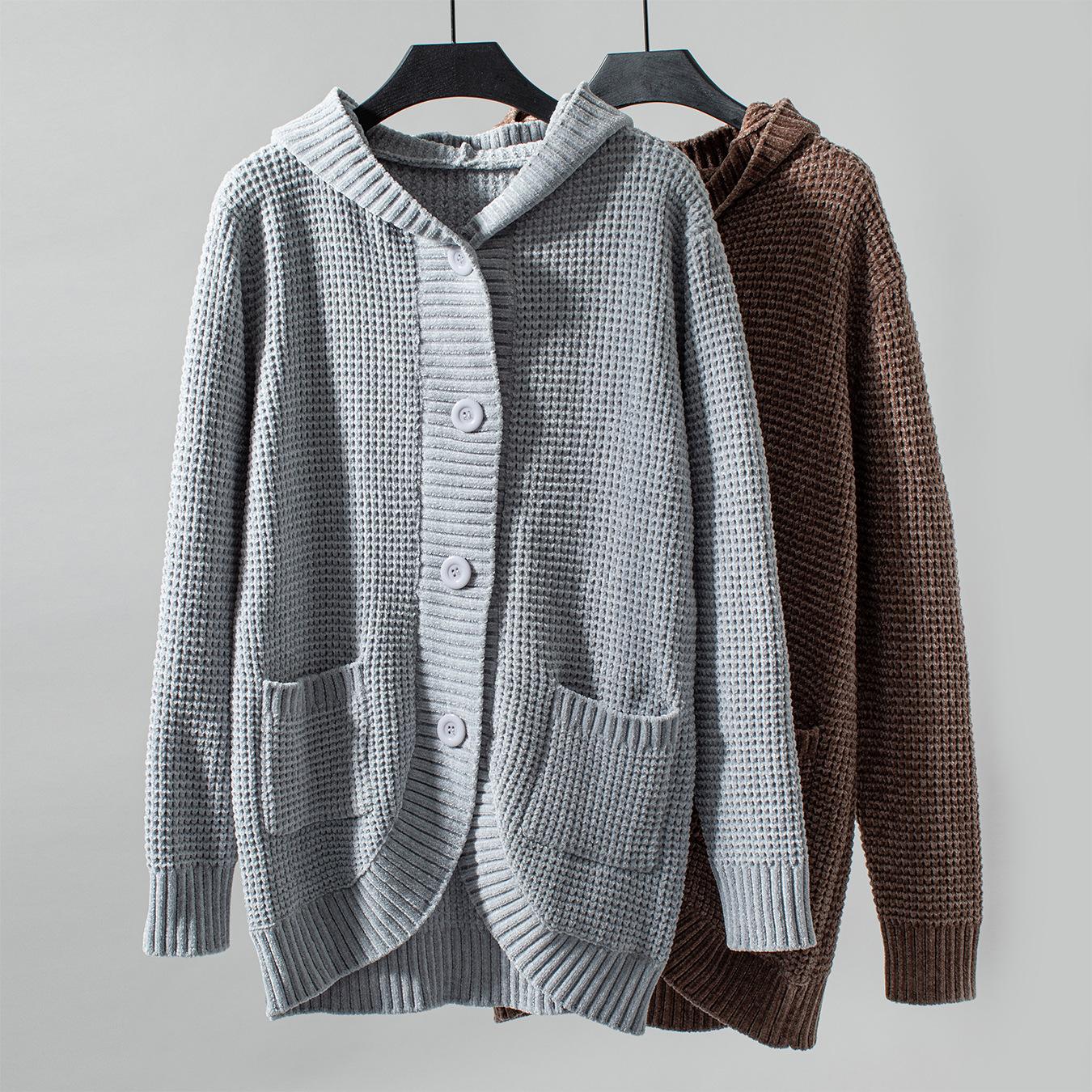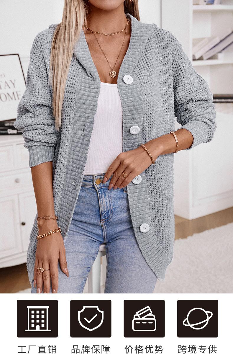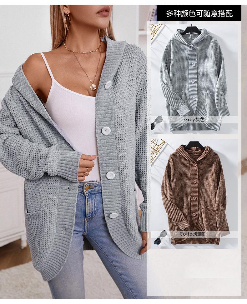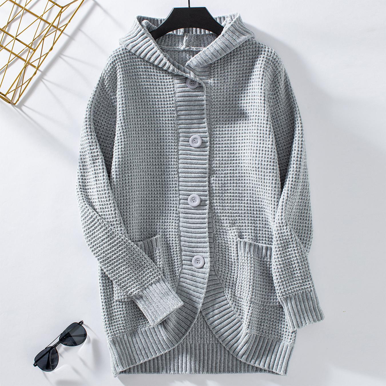 Cárdigan de punto para mujer de otoño e invierno con capucha de comercio exterior transfronterizo, retro suelto con botones, suéter europeo y americano para mujer