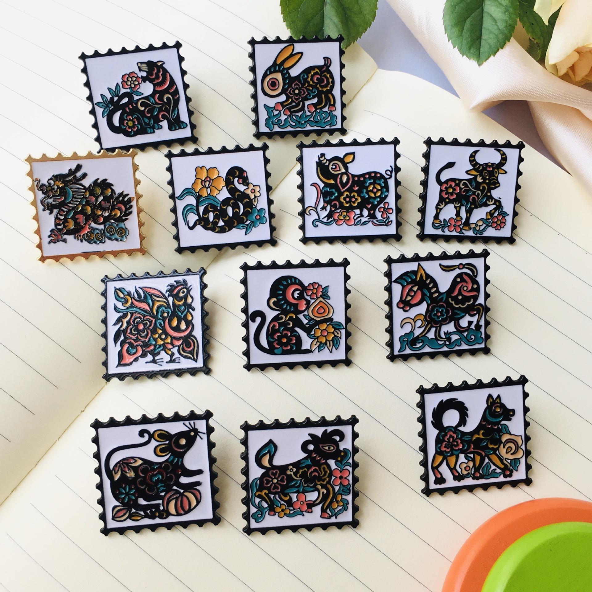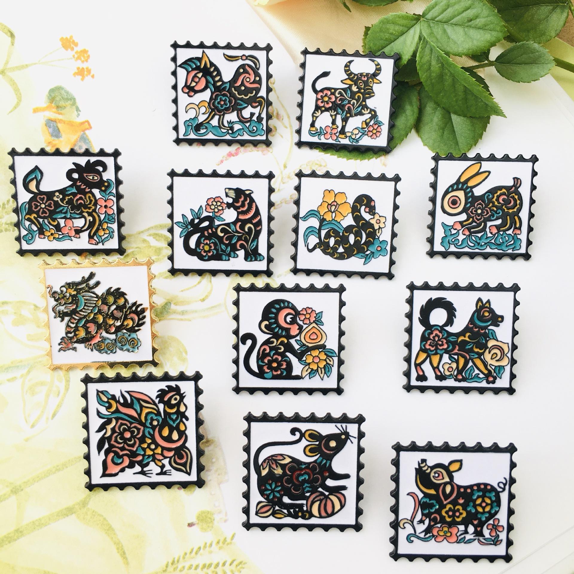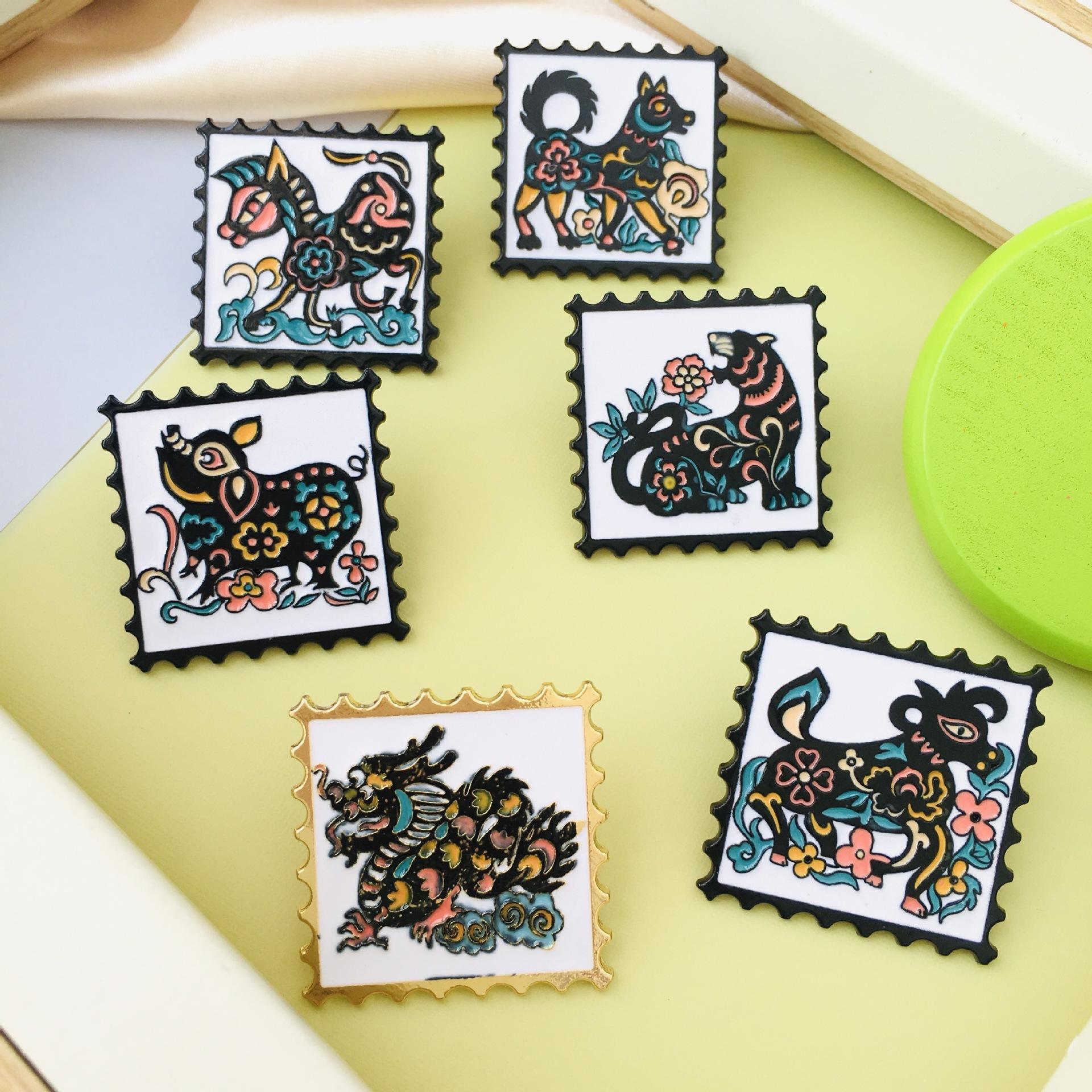Broche de dibujos animados del zodiaco de estilo chino retro, insignia de metal de moda nacional, insignia para abrigo, mochila escolar