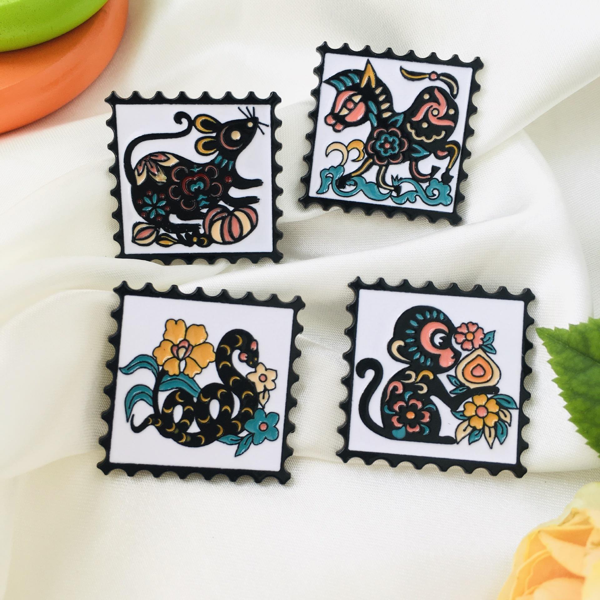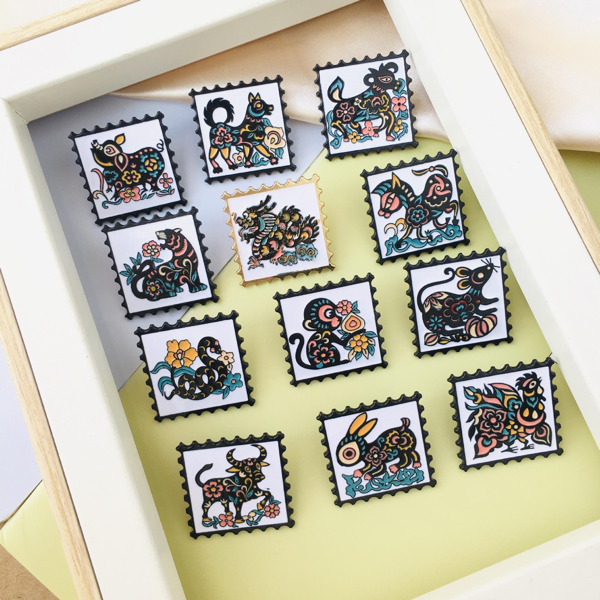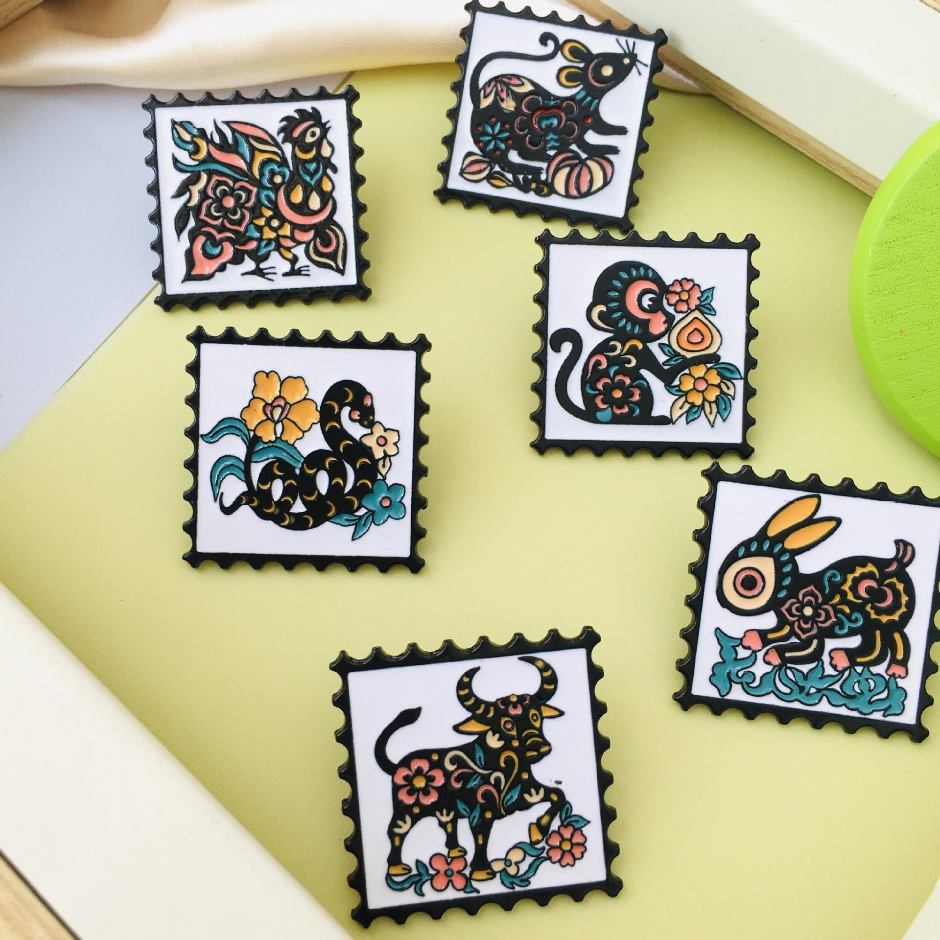 Broche de dibujos animados del zodiaco de estilo chino retro, insignia de metal de moda nacional, insignia para abrigo, mochila escolar