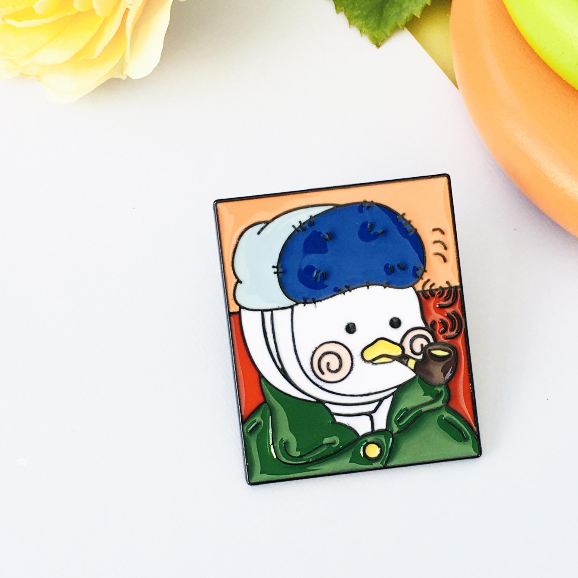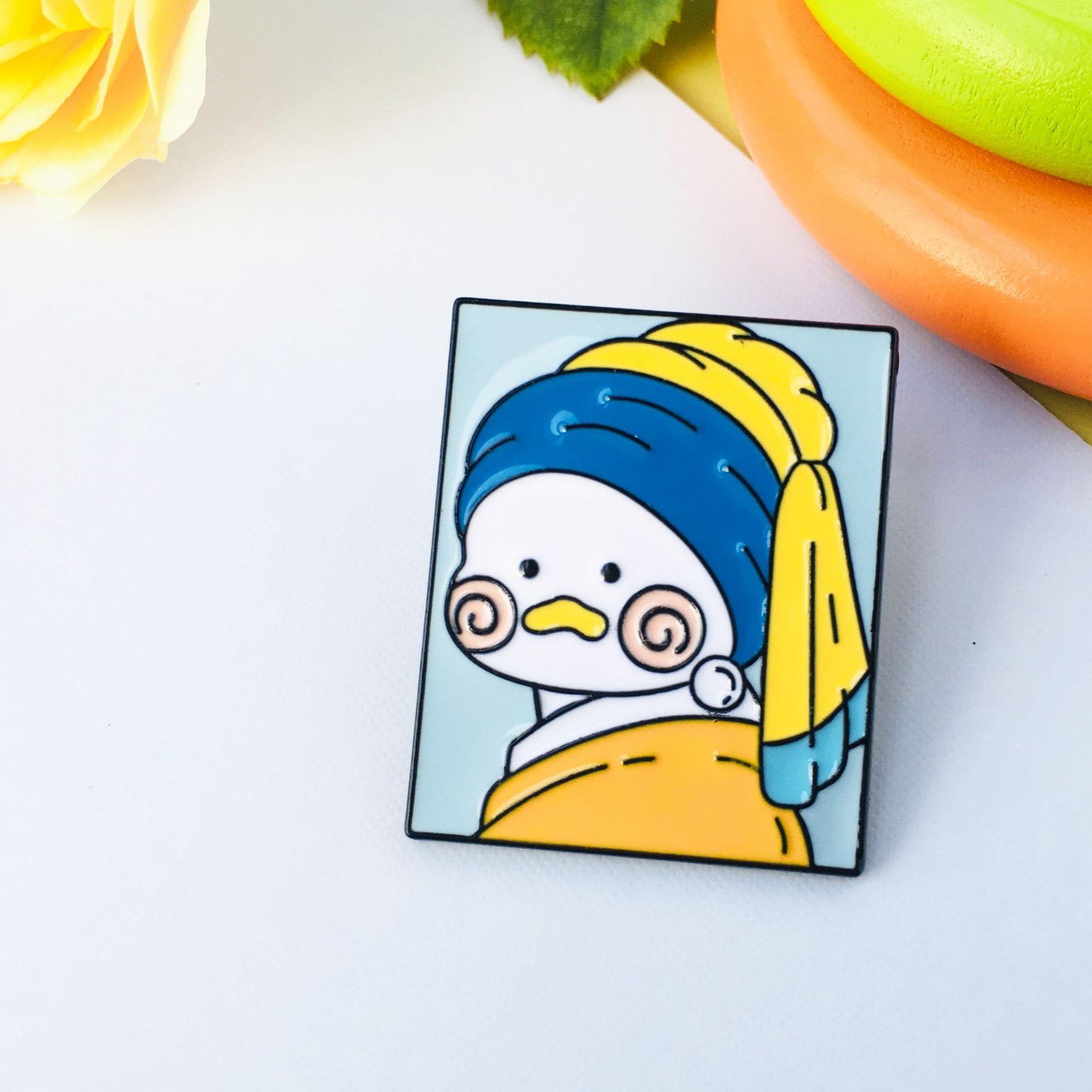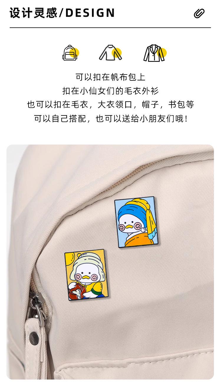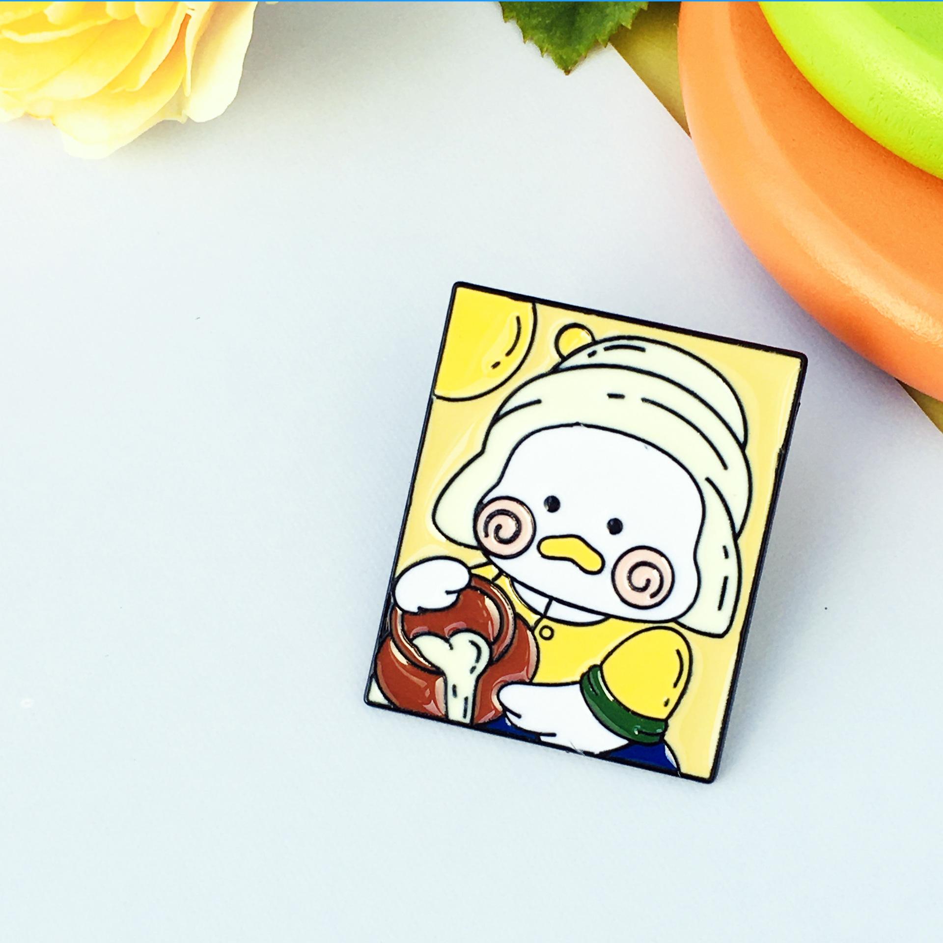 Broche insignia de pato lindo de dibujos animados retro artístico, insignia de marco de fotos de metal encantador, accesorios de insignia de pin para mochila escolar femenina