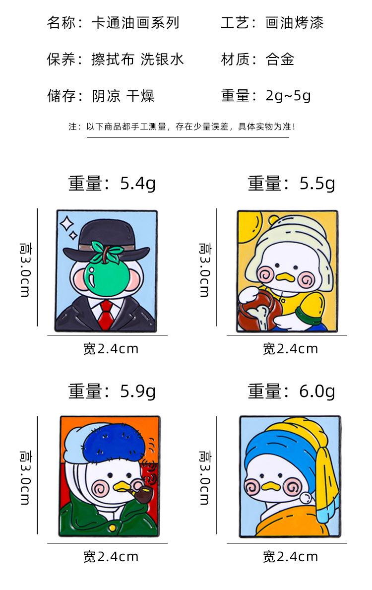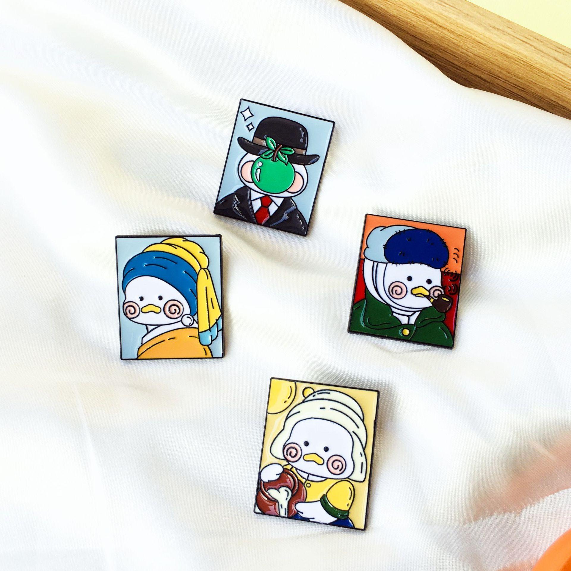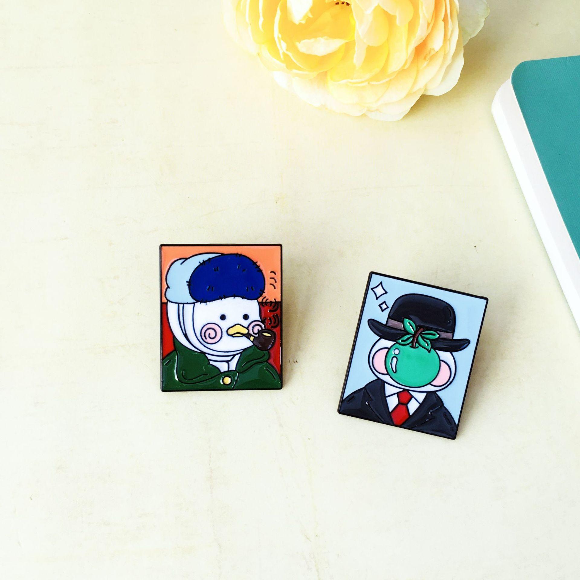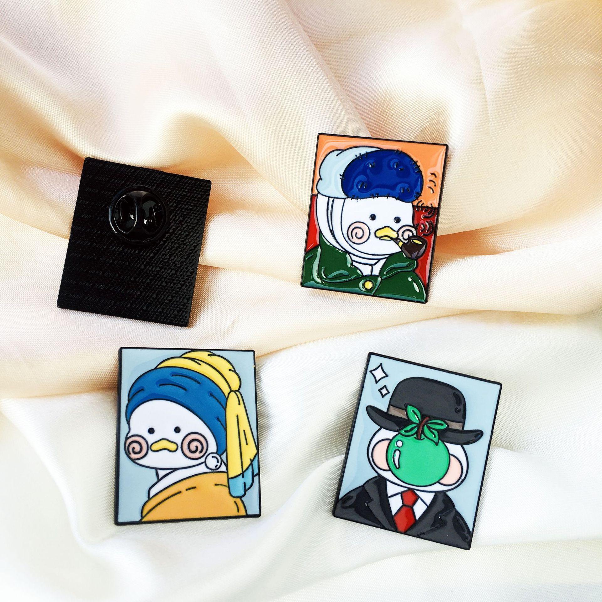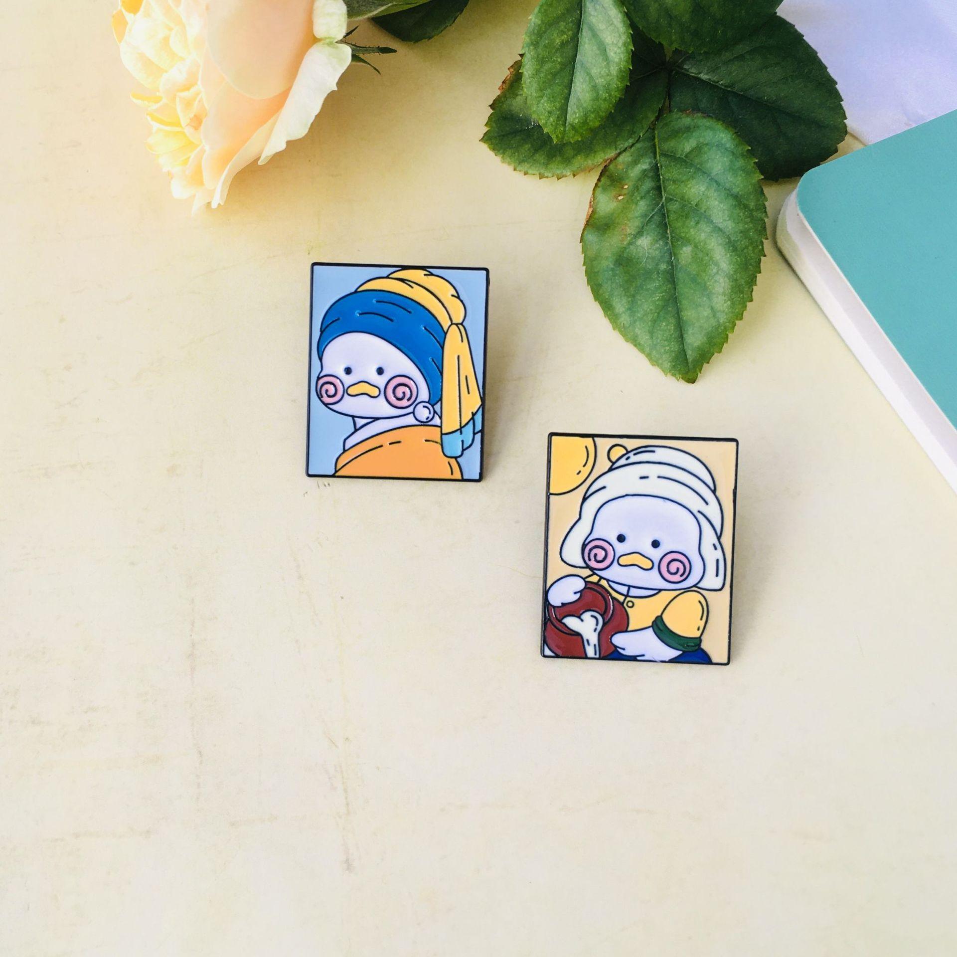 Broche insignia de pato lindo de dibujos animados retro artístico, insignia de marco de fotos de metal encantador, accesorios de insignia de pin para mochila escolar femenina